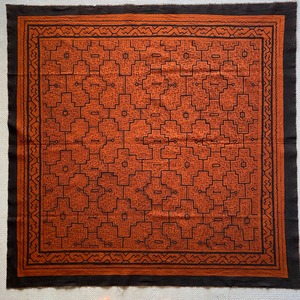 14中型茶95x92cm-02十字架 AAA スカーフ シピボ族の泥染め