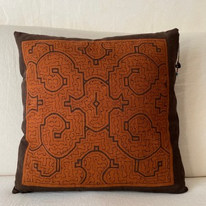 アマゾンの泥染めクッション 40茶-8 草木染め●リバーシブル●レア●いってんもの●マホガニー染め 泥染めに刺繍を入れてパッチワークで両側と裏に同系の茶を合わせ、両面草木染めになっています。茶色は現地アマゾンの集落で染めたもので、マホガニー樹皮を煮出した染料を繰り返し染めて濃い茶色です。 ⭐️中身(ヌード)込みをご希望の場合はお問い合わせください。 中身と送料を追加(40cm以下なら1000円より)して頂けば可能です。