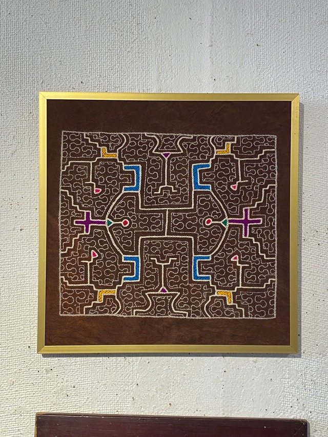 テーブルに窓際にお部屋の壁に、何かを包んで、何かと使いやすい中型のサイズです。布を畳んで折り目をつけずに身近に置いていつでも使えるようにしたいときに、またはぶら下げやすいように、ひとつの手段としてリングを開けてみました。 模様は部分的に白抜きになっている「途中図」で、貴重な良品のしっかりした布です。このアイデアがどうなのか、需要はないのか知るために、破格でのお試し商品になります。 【アマゾンの泥染め】とは アマゾンの泥染めは、ペルーアマゾンの先住民族による伝統工芸で、今も細々と受け継がれている希少価値の高い染め物です。 茶色と白地の二種類あり、どちらも「タンニン」を含む樹皮を煮出した染料と、森の奥地から採取する「鉄分」の強い特別な泥の化合を利用した染色方法で、フリーハンドで描かれる幾何学模様のデザインの部分だけが黒く染まることが特徴です。 茶色●樹皮から煮出す茶色の染料で布を繰り返し染めた後に、鉄分の多い特別な泥でデザインを描き、最後に泥は洗い流します。 白地●デザインを描いた上から全面に泥を付けて模様だけが染まり、最後に泥は洗い流します。 詳しくは HP「ペルーアマゾンの先住民族シピボ族の泥染め」をご覧ください。 https://amazon-dorozome.com/ 茶染めの工程 https://amazon-dorozome.com/making/brown.html 白染めの工程 https://amazon-dorozome.com/making/white.html