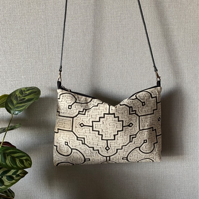 ショルダーポーチ シピボ模様白 30cm シピボ族の泥染め