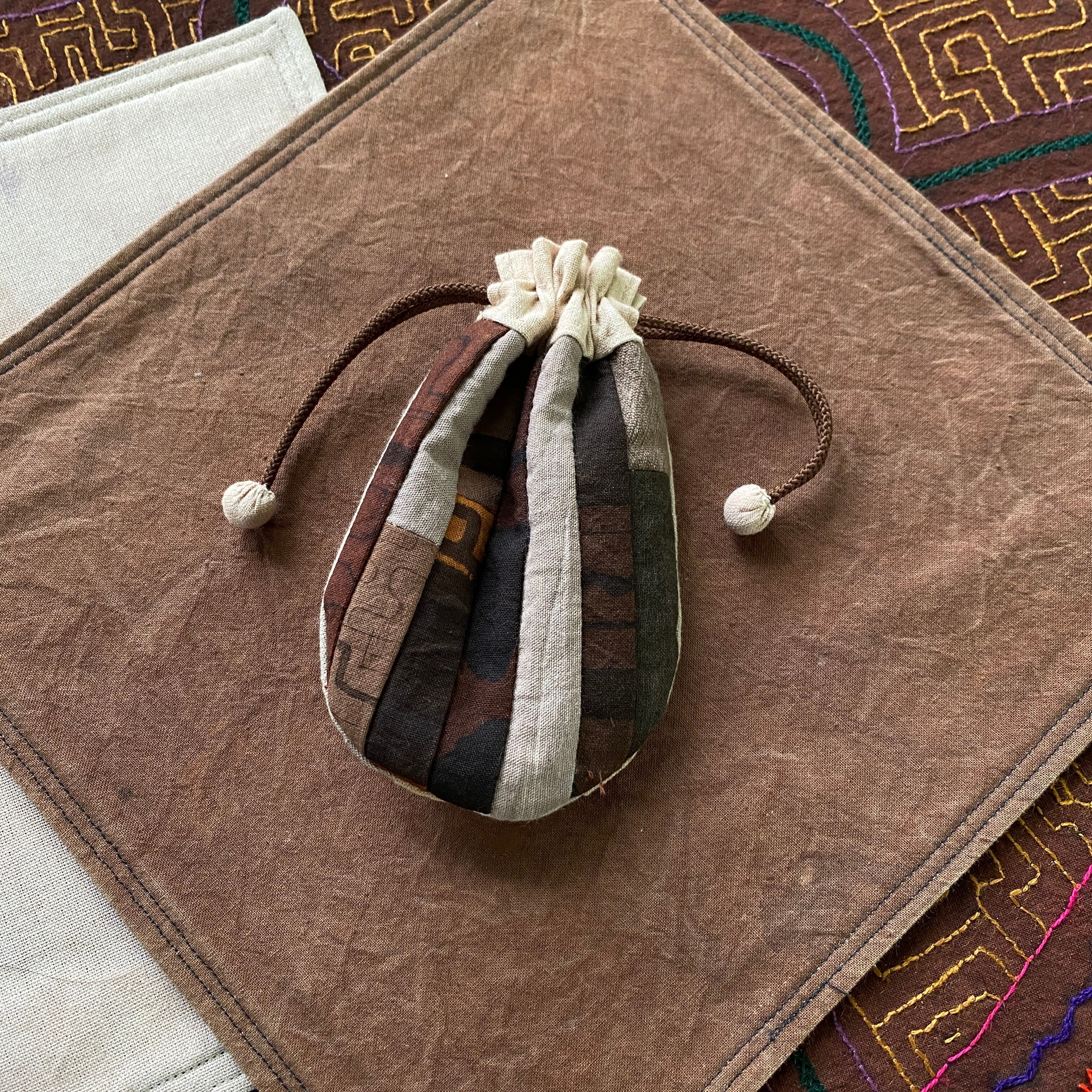 アマゾンの泥染めは、先住民族シピボ族の伝統工芸で、フリーハンドの幾何学模様を染める、希少価値の高い手工芸です。この布を使ってオーナー(AYACHI S)がバッグや布雑貨を手作りしています。 貴重な伝統工芸を少しでも長く作り続けて欲しいという想いから続けている活動です。