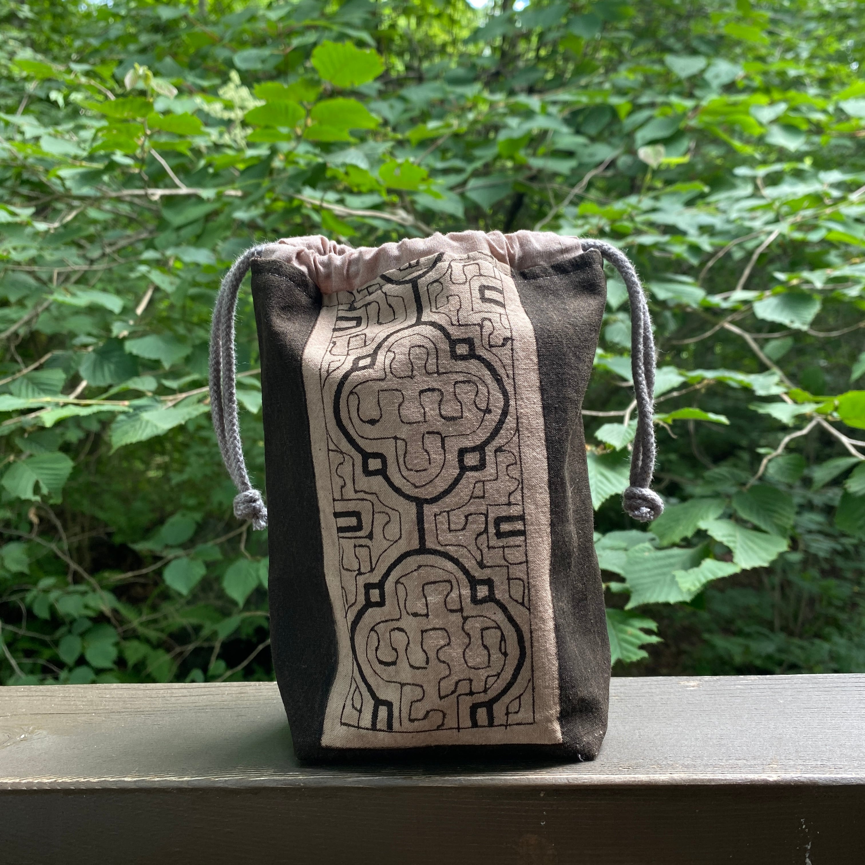 Kin08 巾着袋 シピボ族の泥染め紫 17x19x7 | アマゾン屋 シピボ族の泥染めとバッグと雑貨