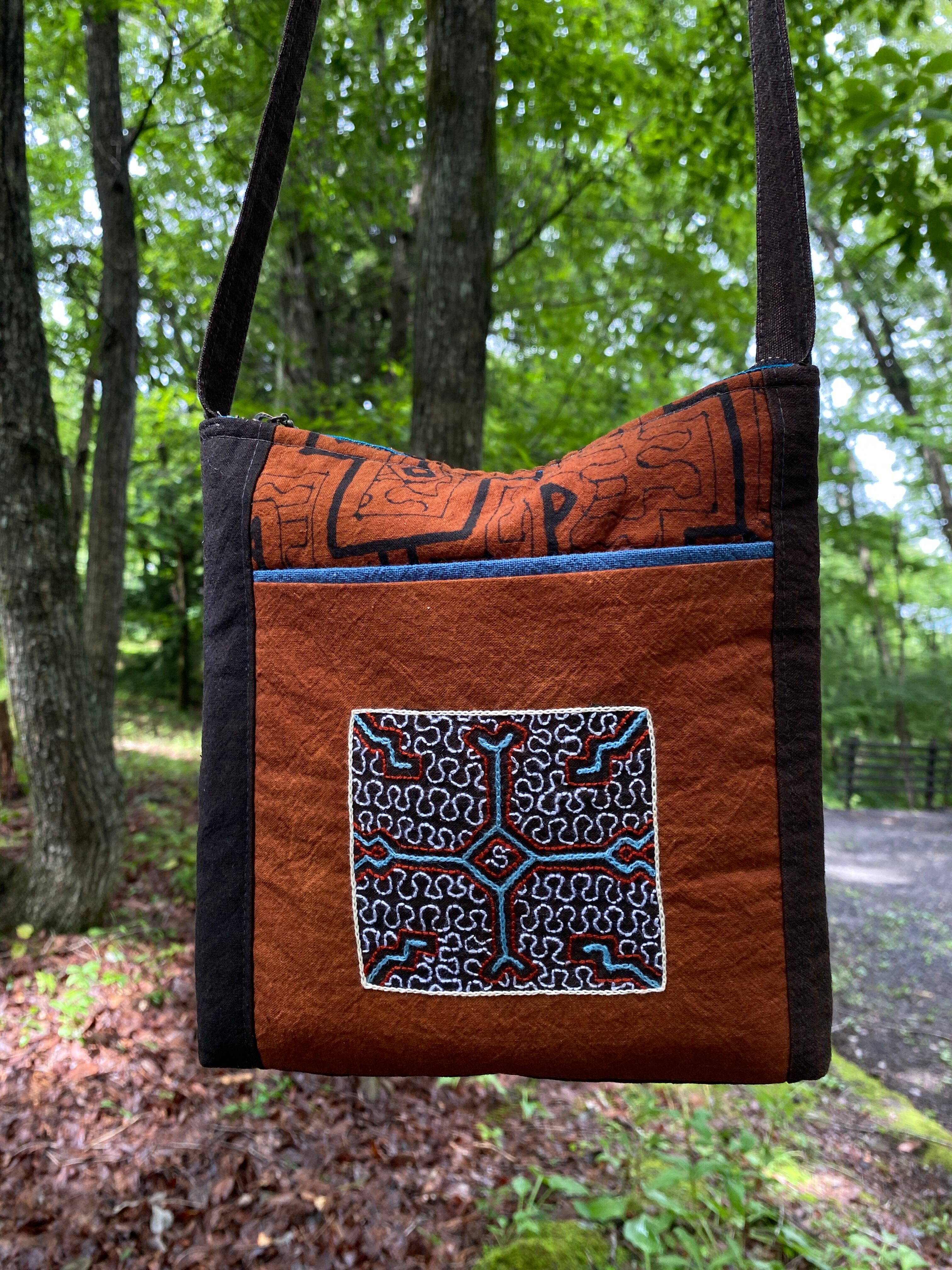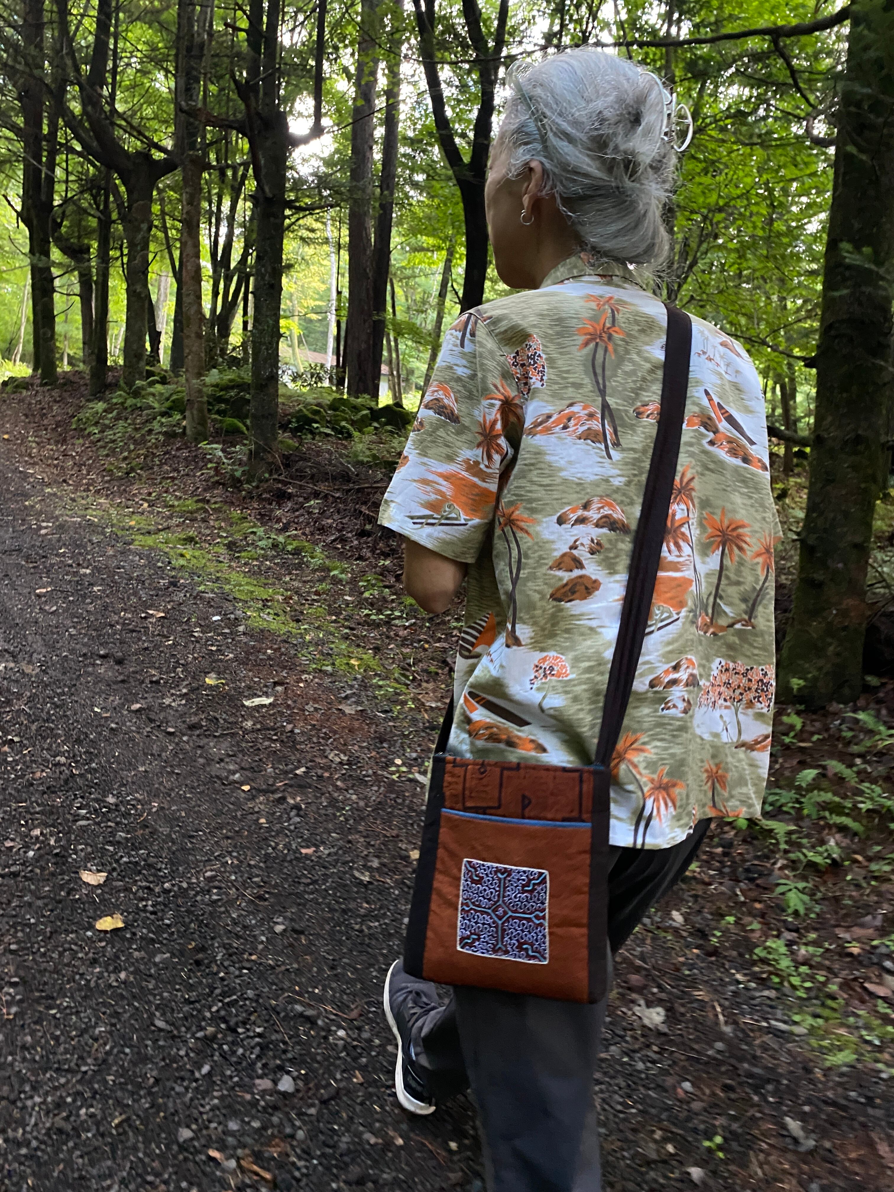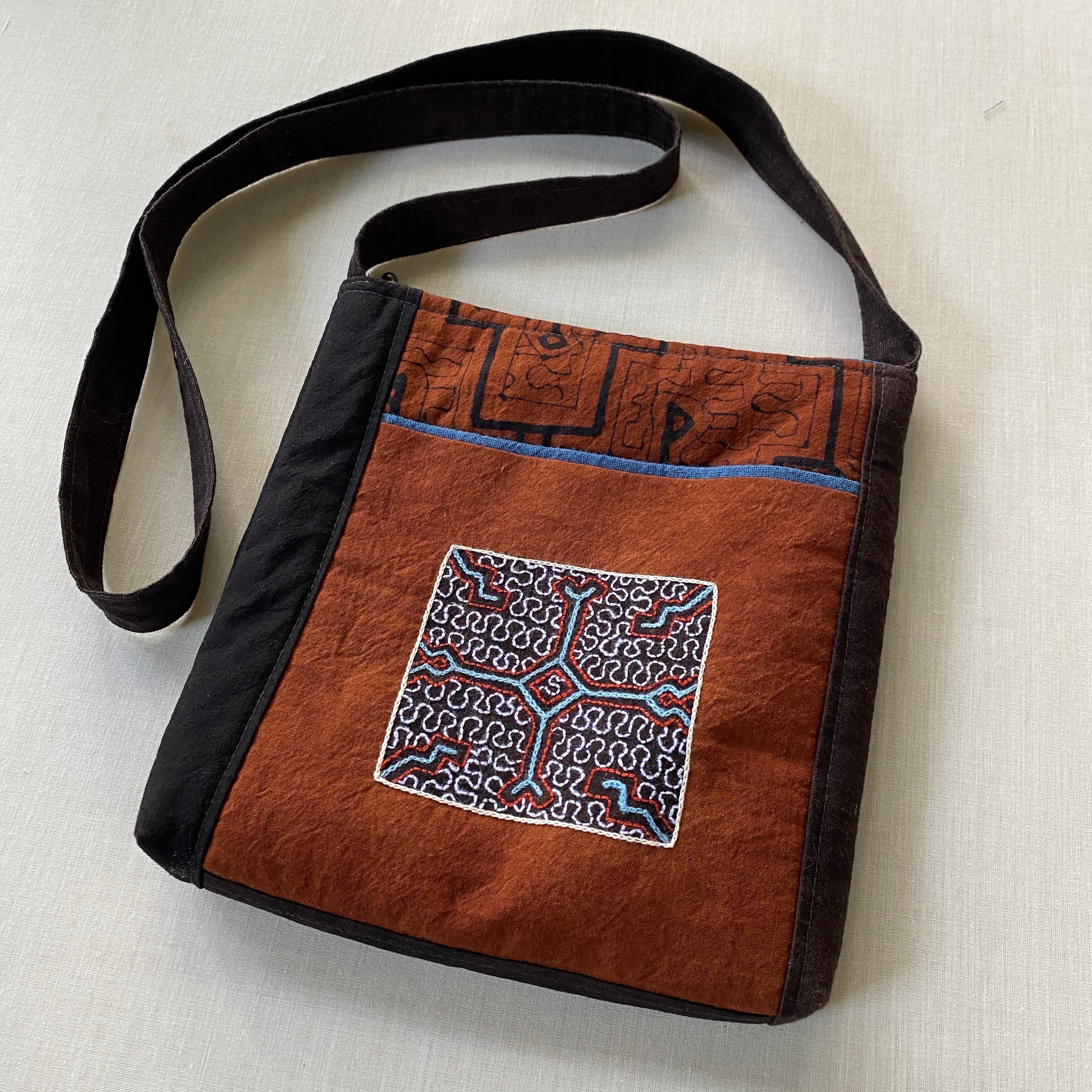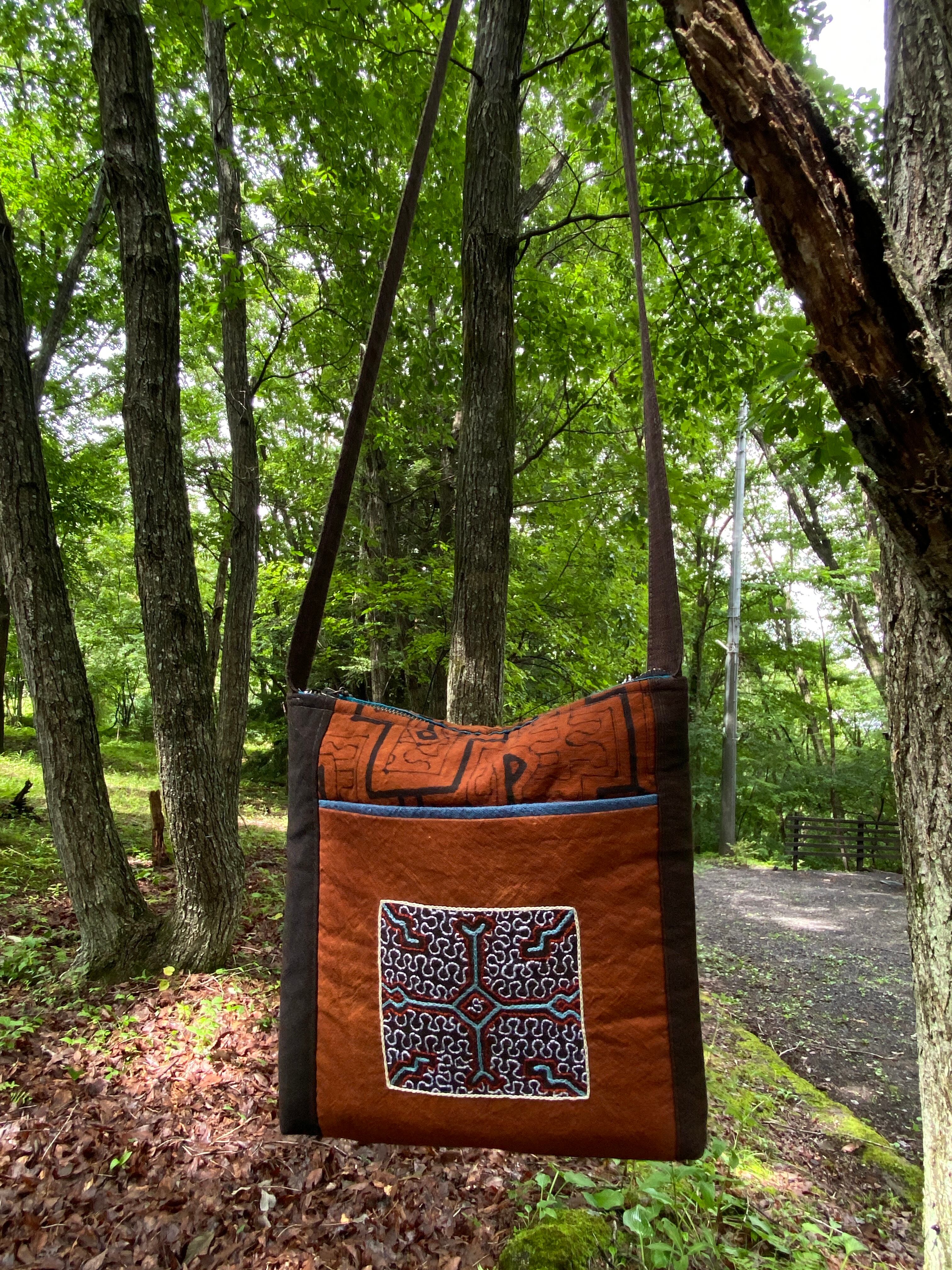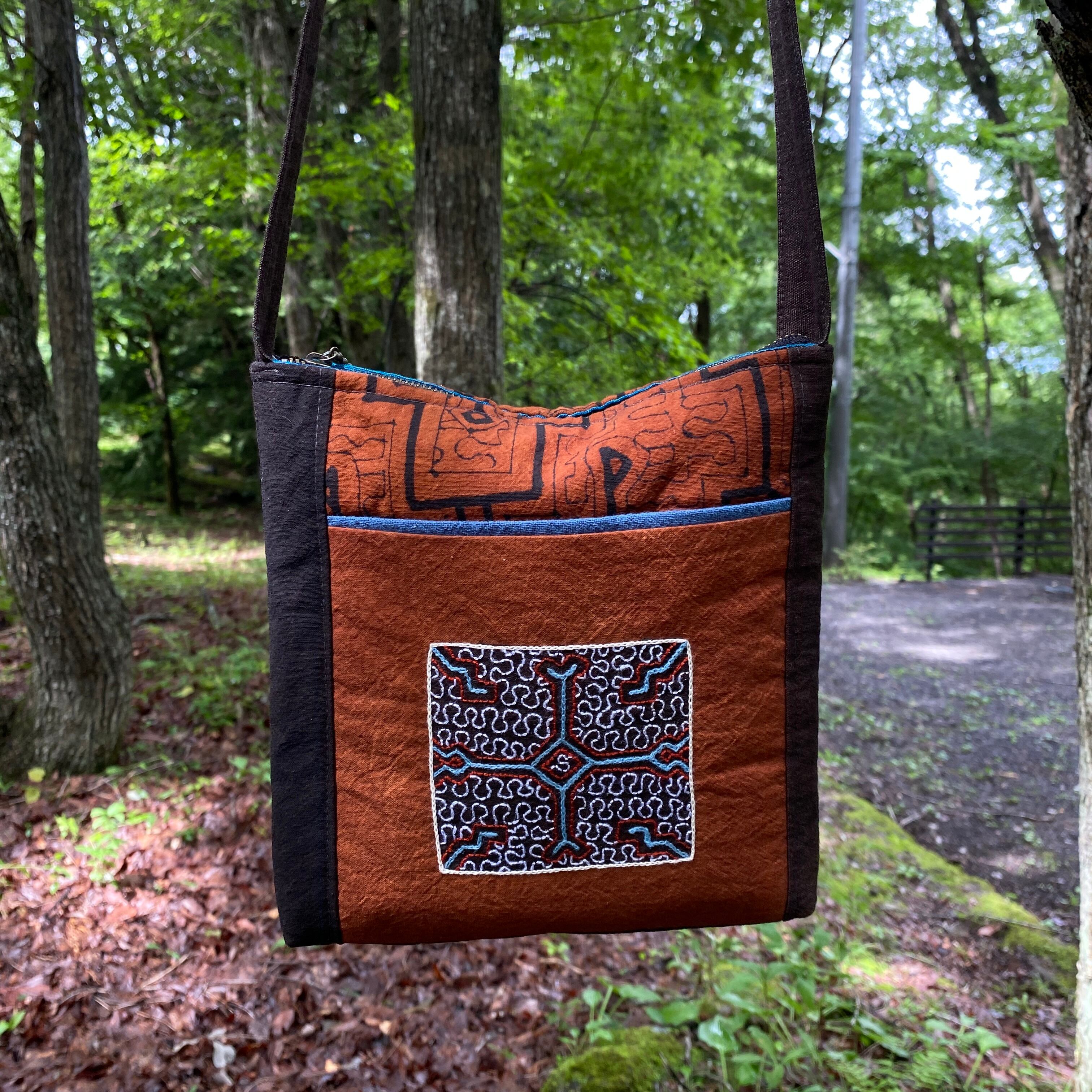 ポシェット シピボ族の手刺繍 自然素材 ファスナー付きショルダーポケット