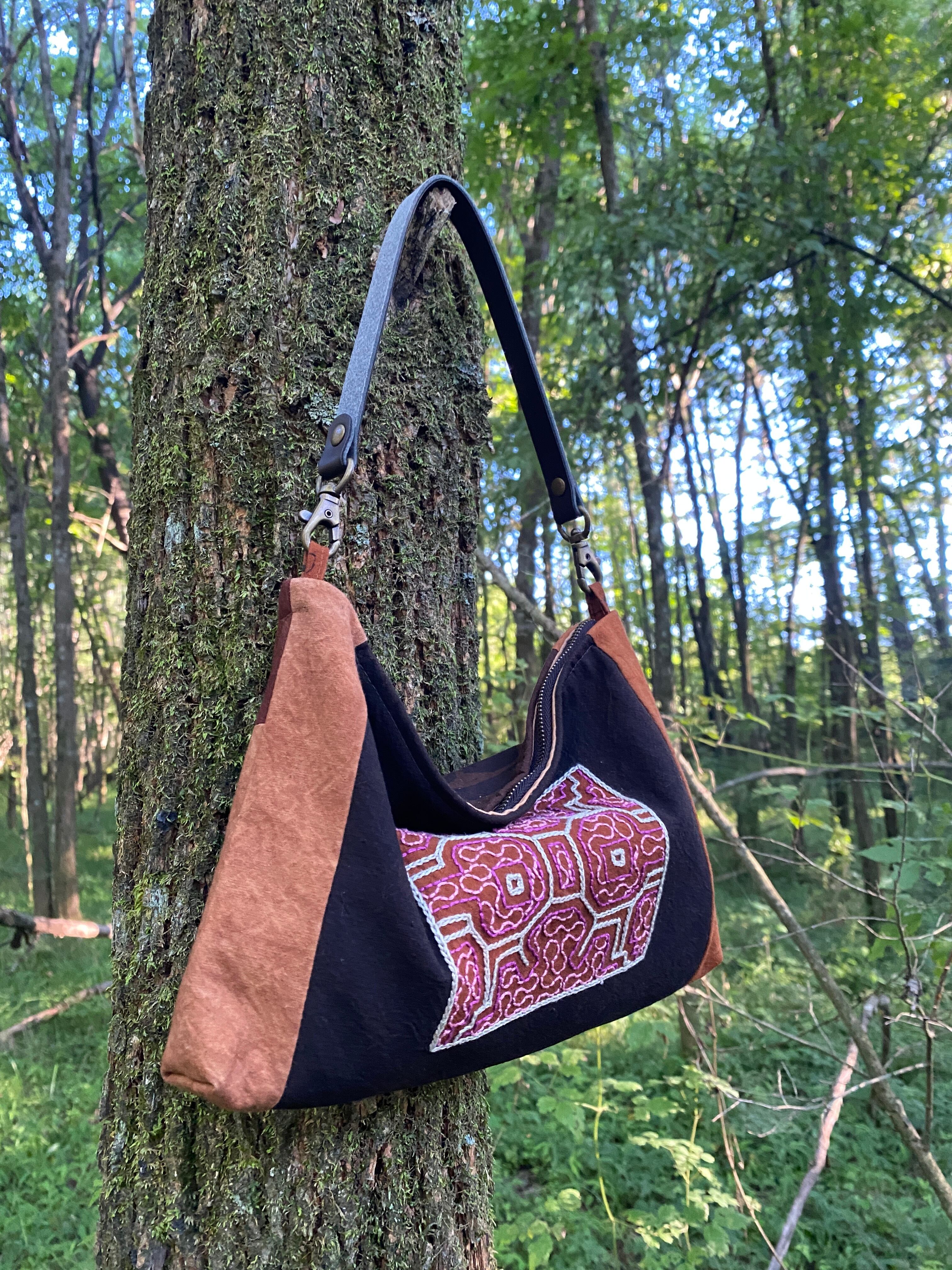 ショルダーポーチ シピボ族の手刺繍ピンク サコッシュ ファスナー付きショルダー