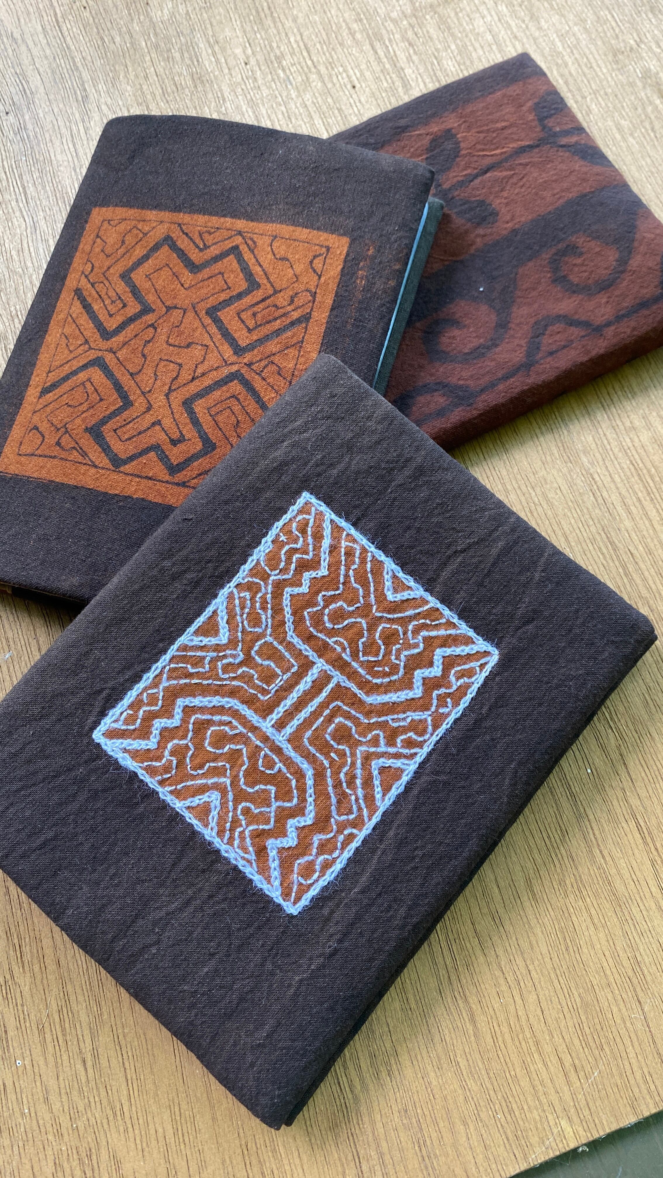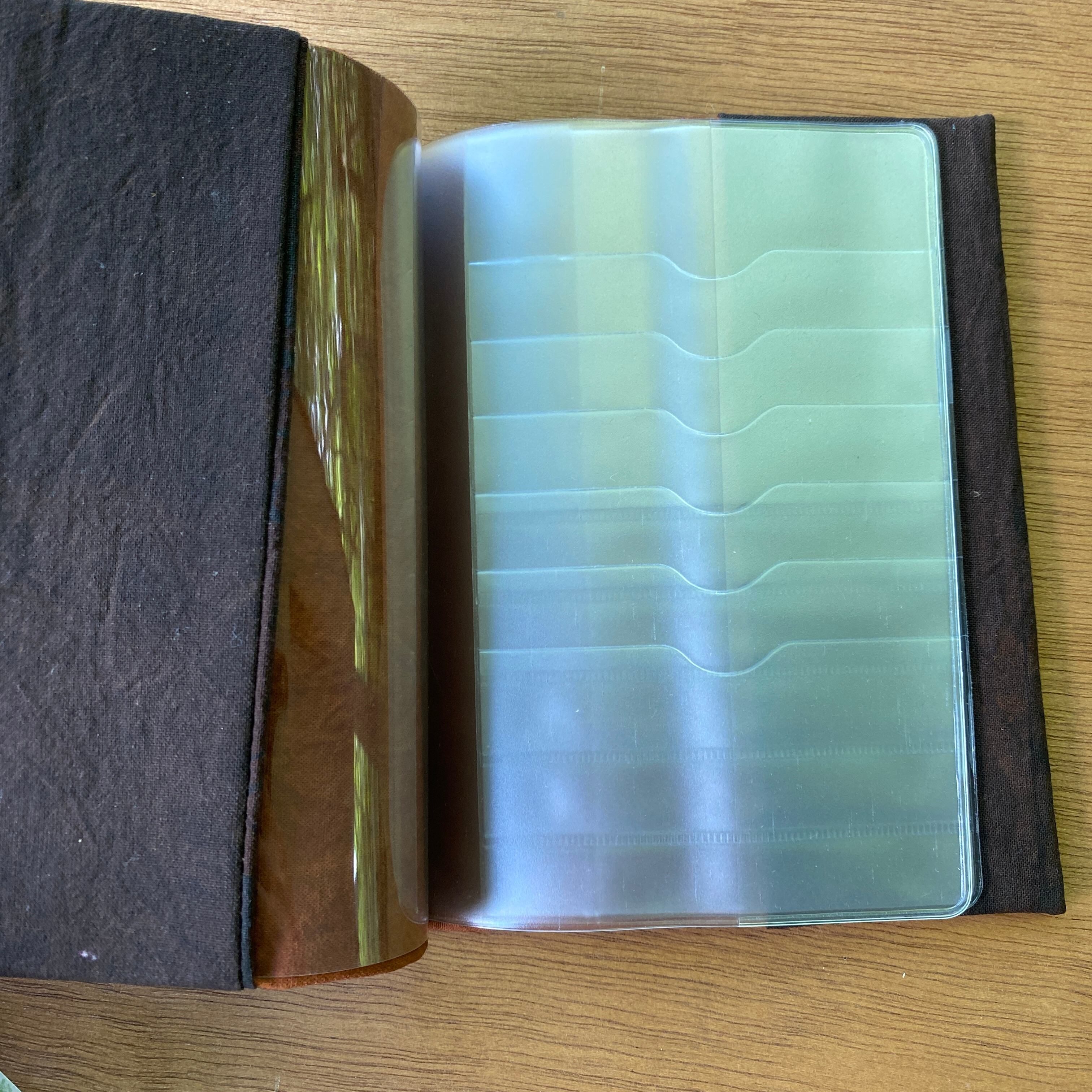 お薬手帳入れ 泥染めに刺繍白 カード用ケース付き ブックカバーとしても