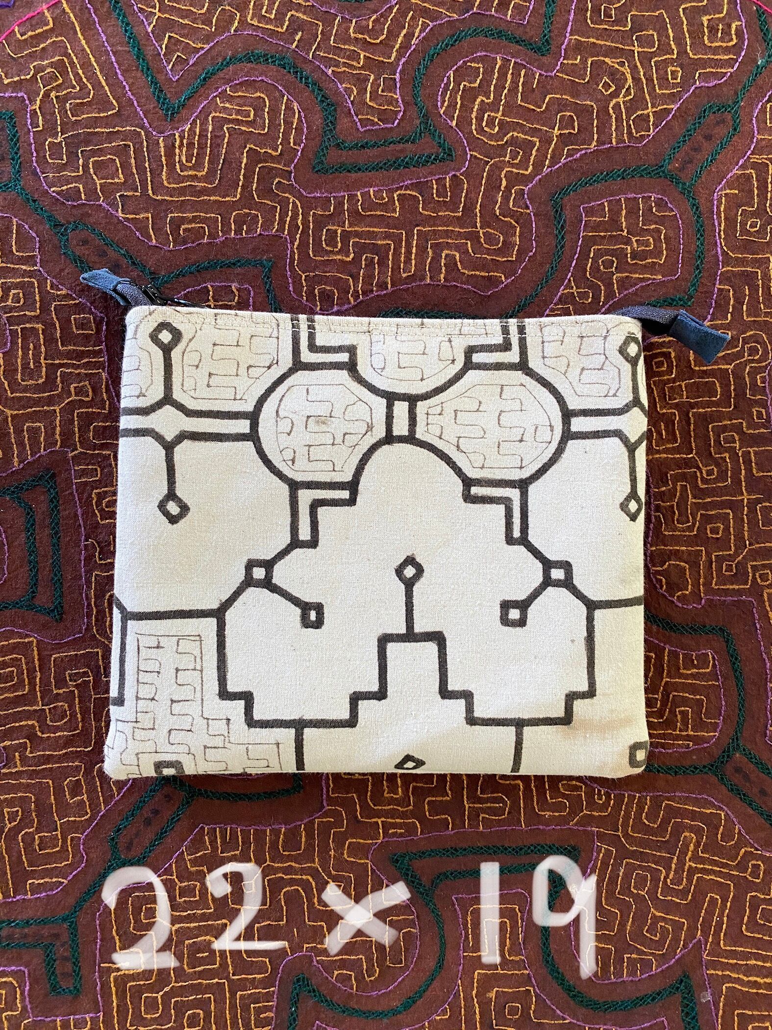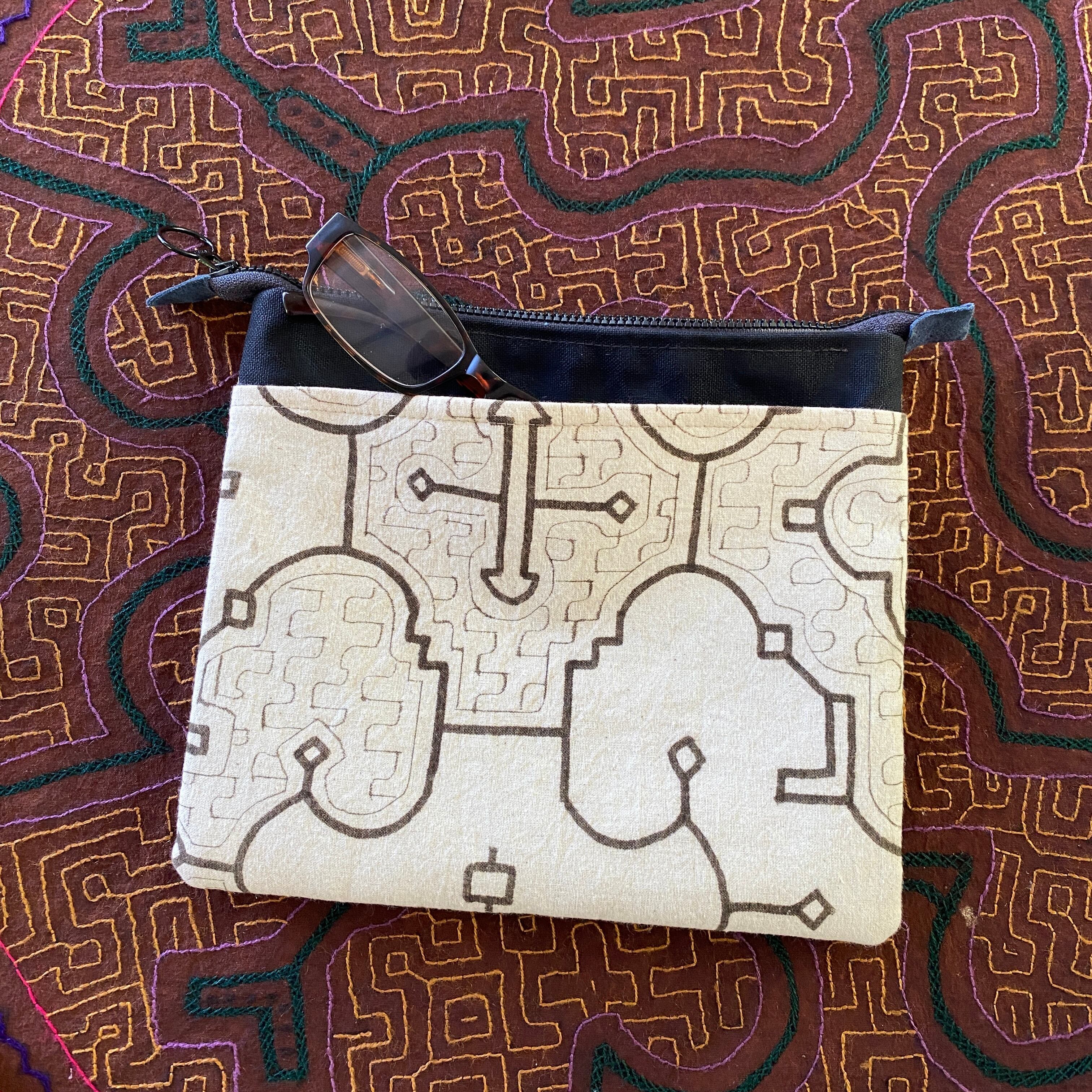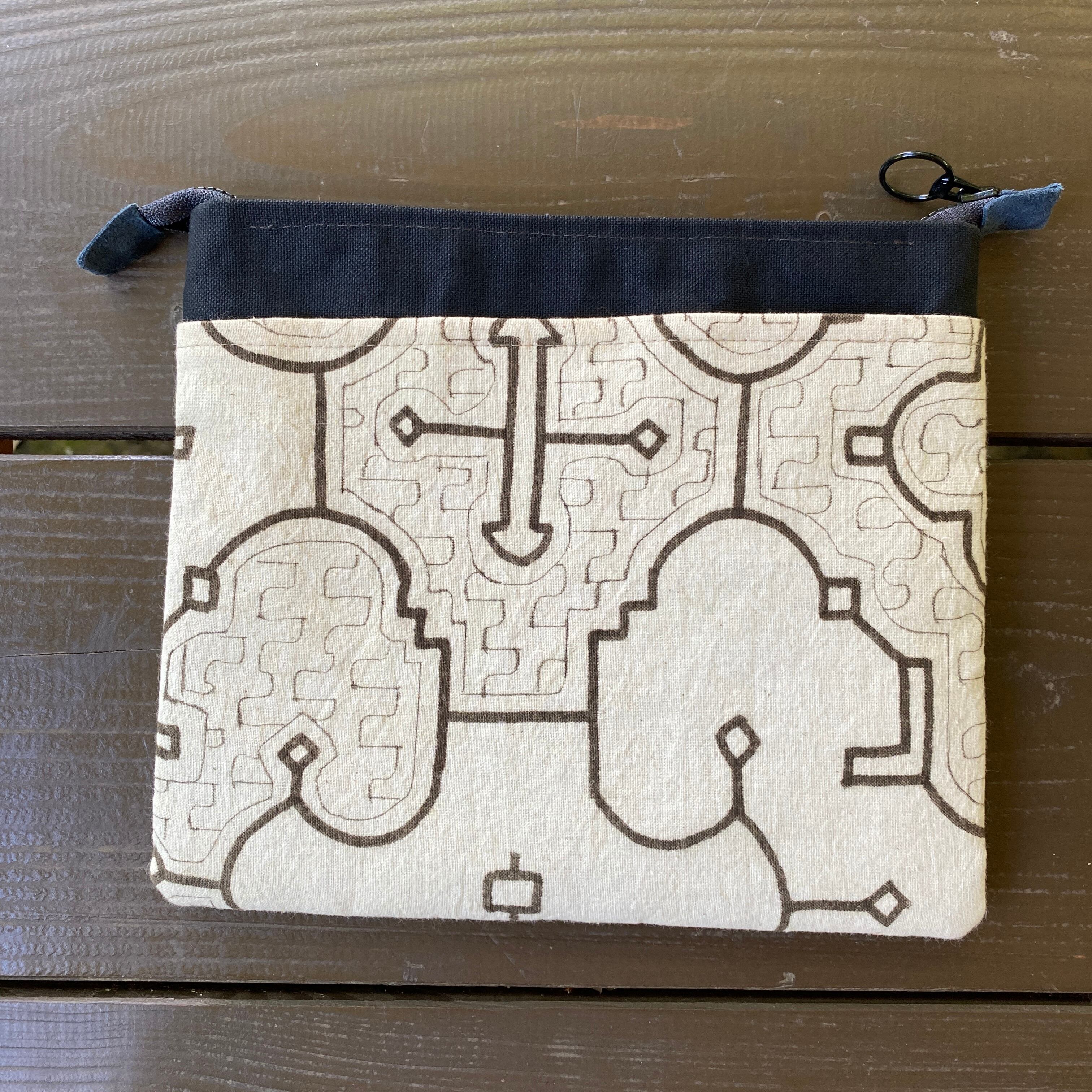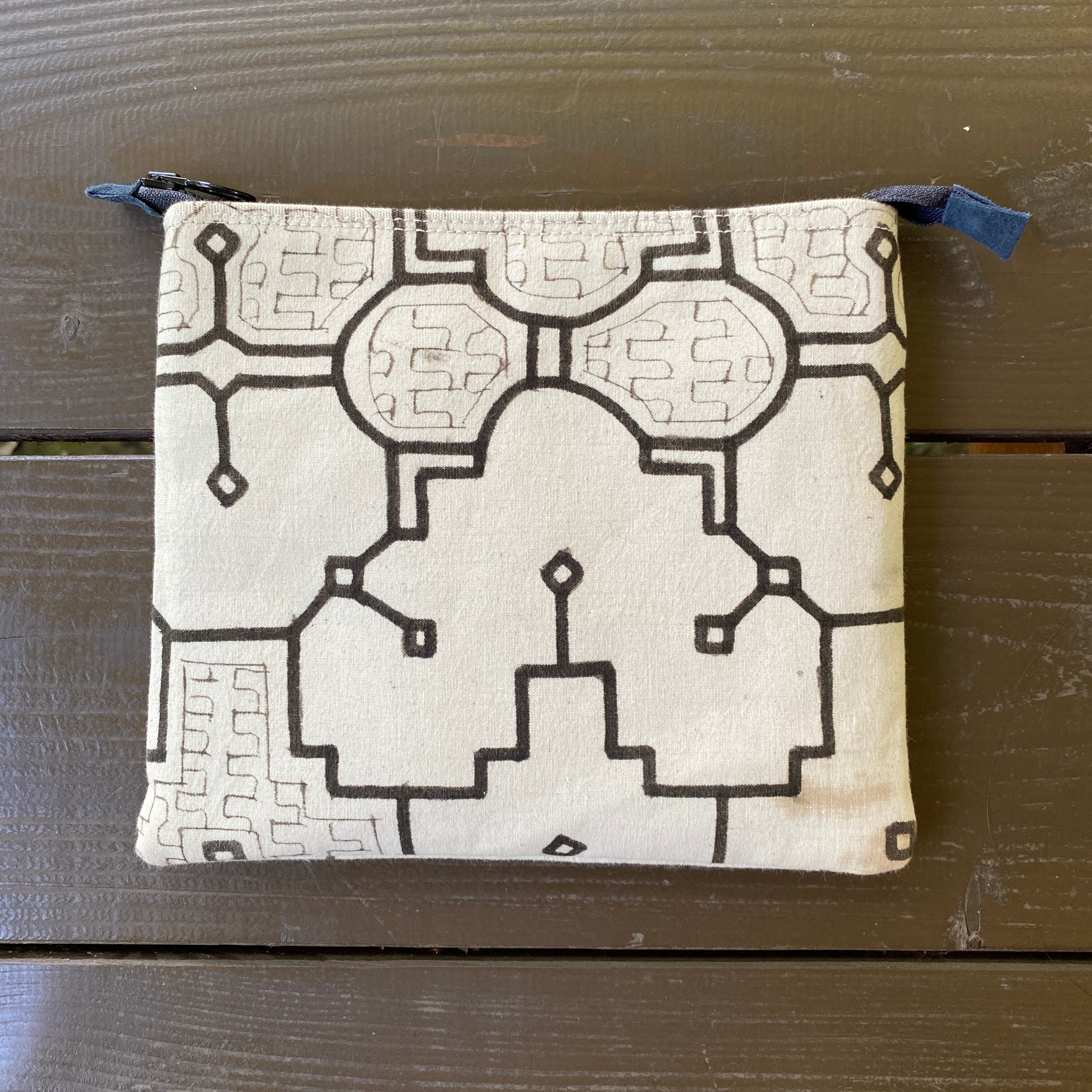 ポーチ シピボ族の泥染め白 ファスナーと裏側にポケット
