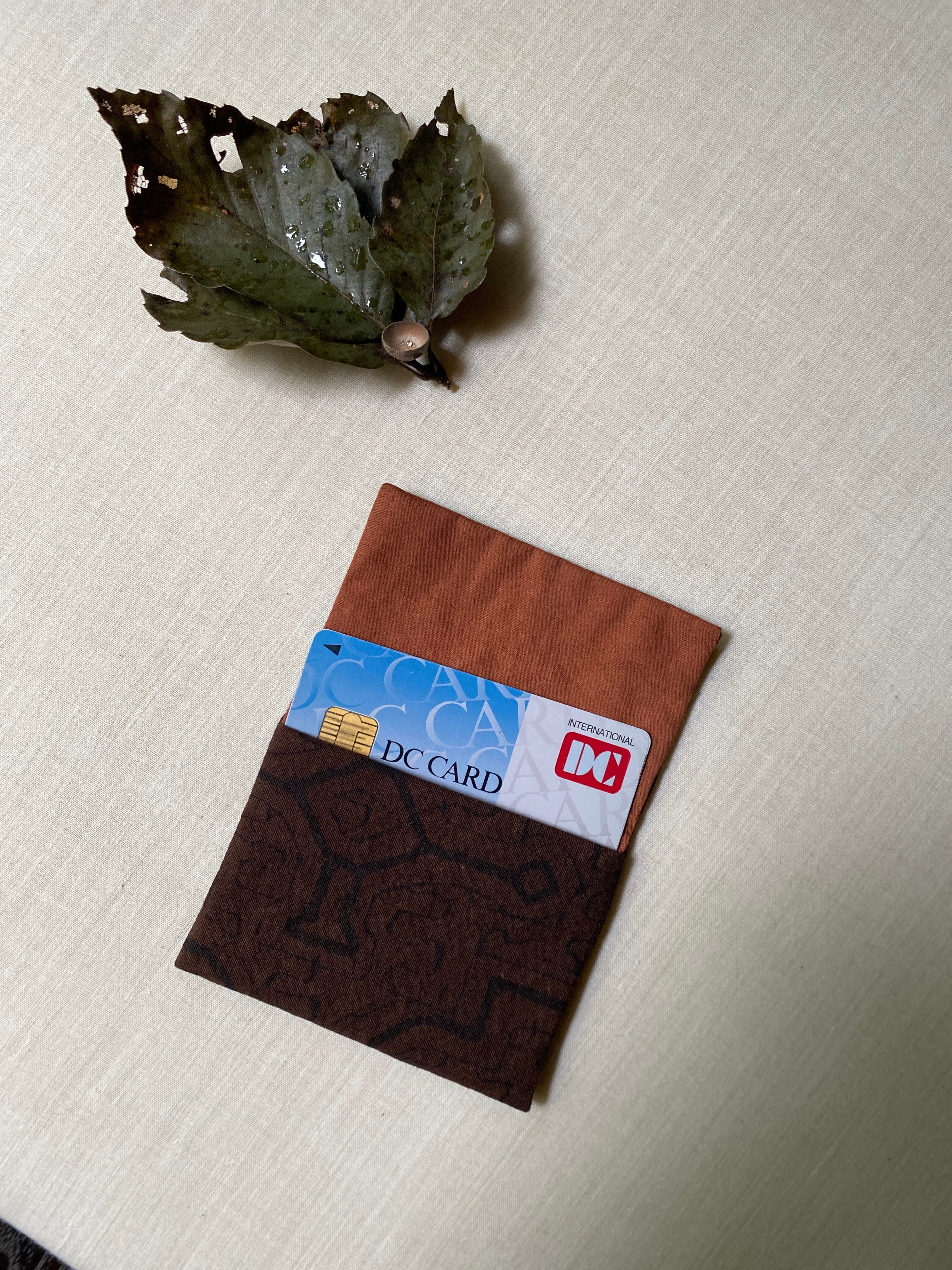 模様が蓋のところにピッタリくるようにデザイン。裏地に樹皮染めの茶色と合わせてシックに