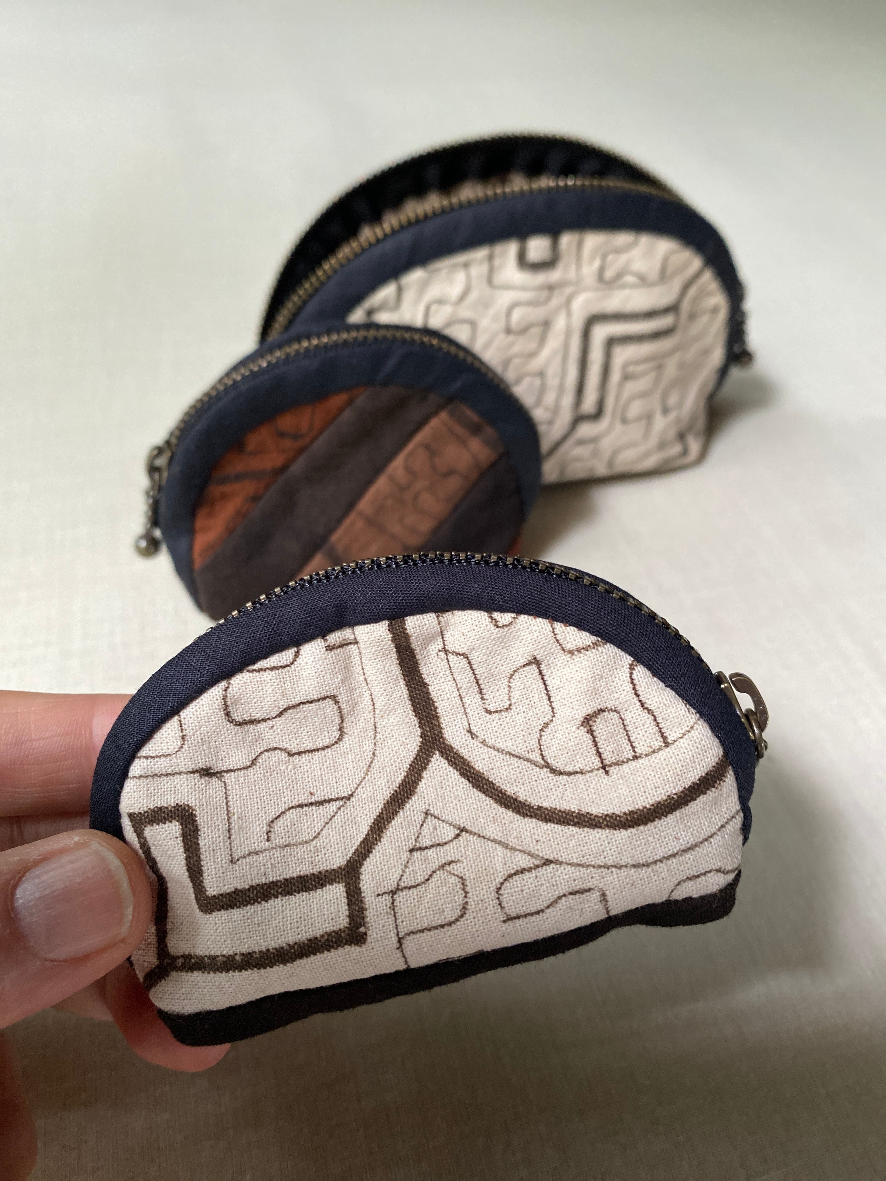 シピボ手描き染めの模様布が大きめサイズなので丸ポーチとしてはレアです。