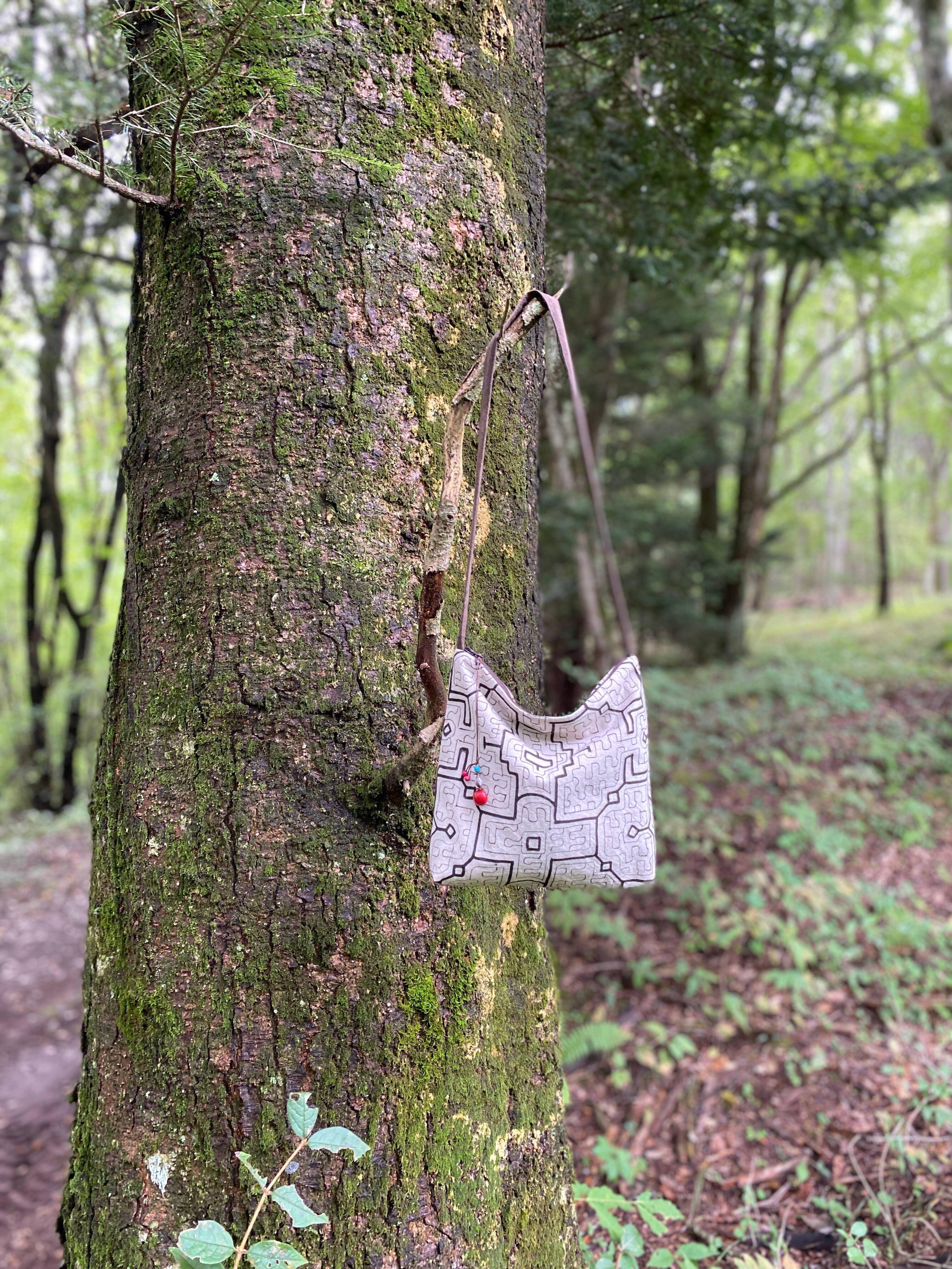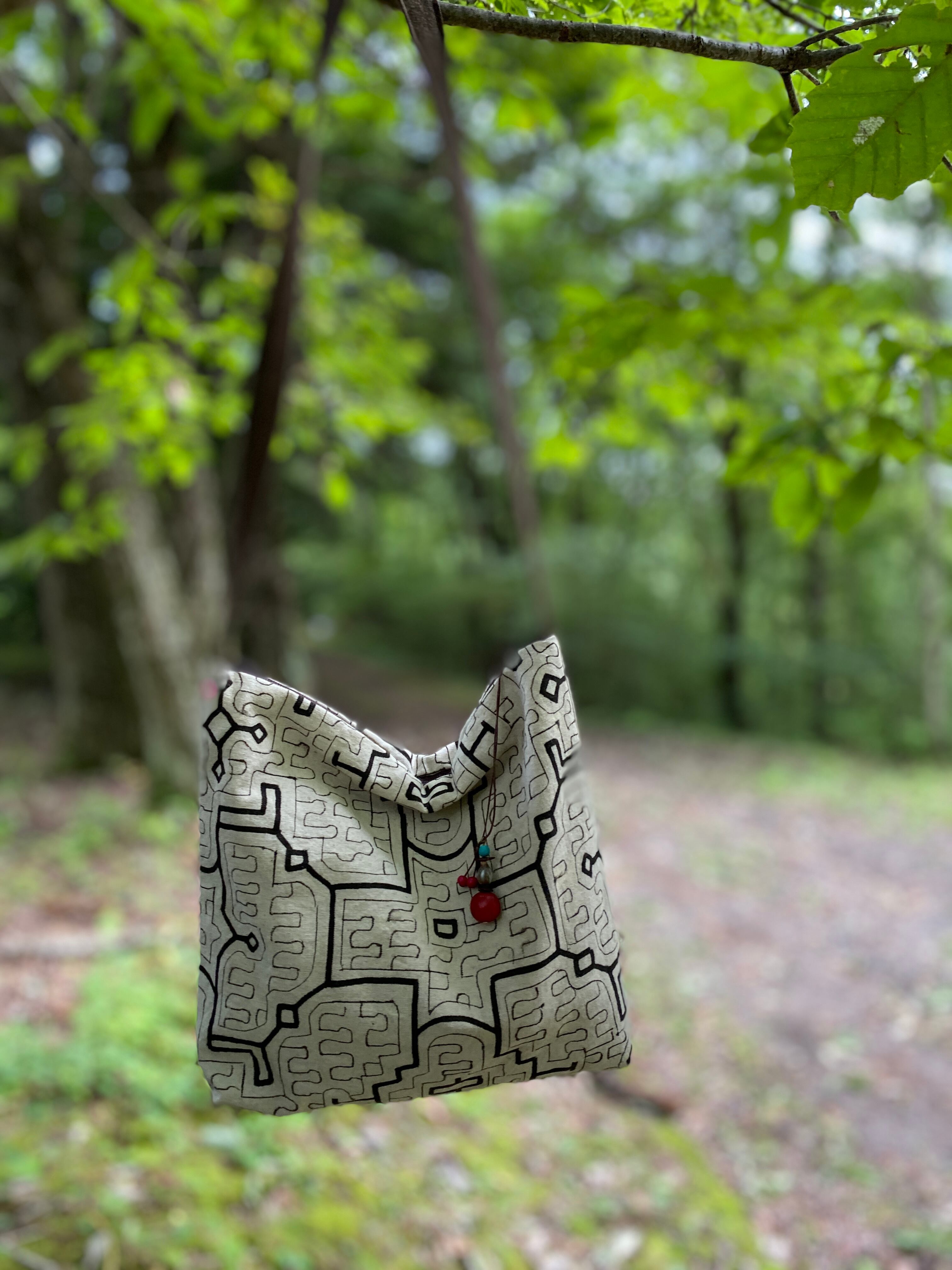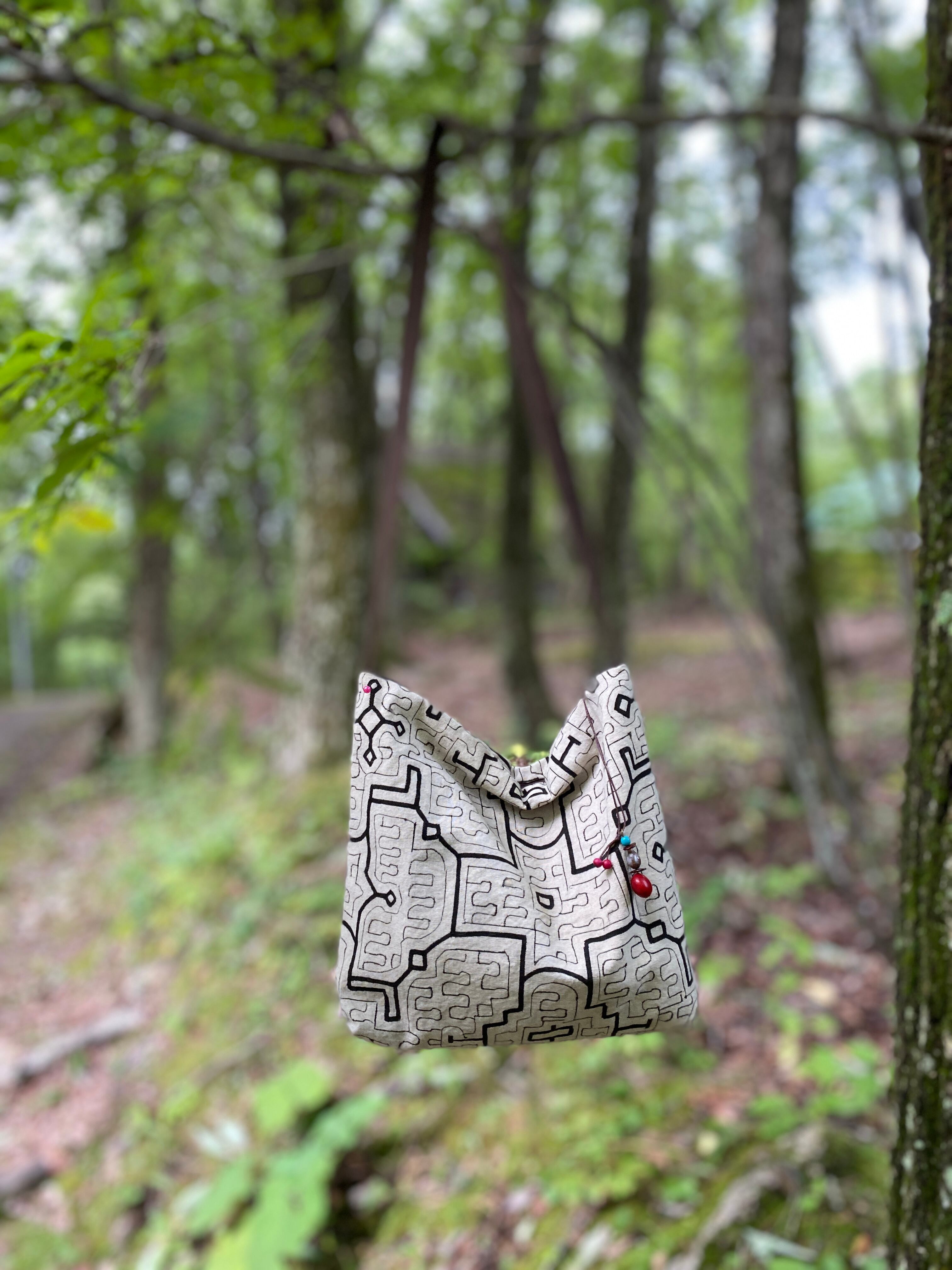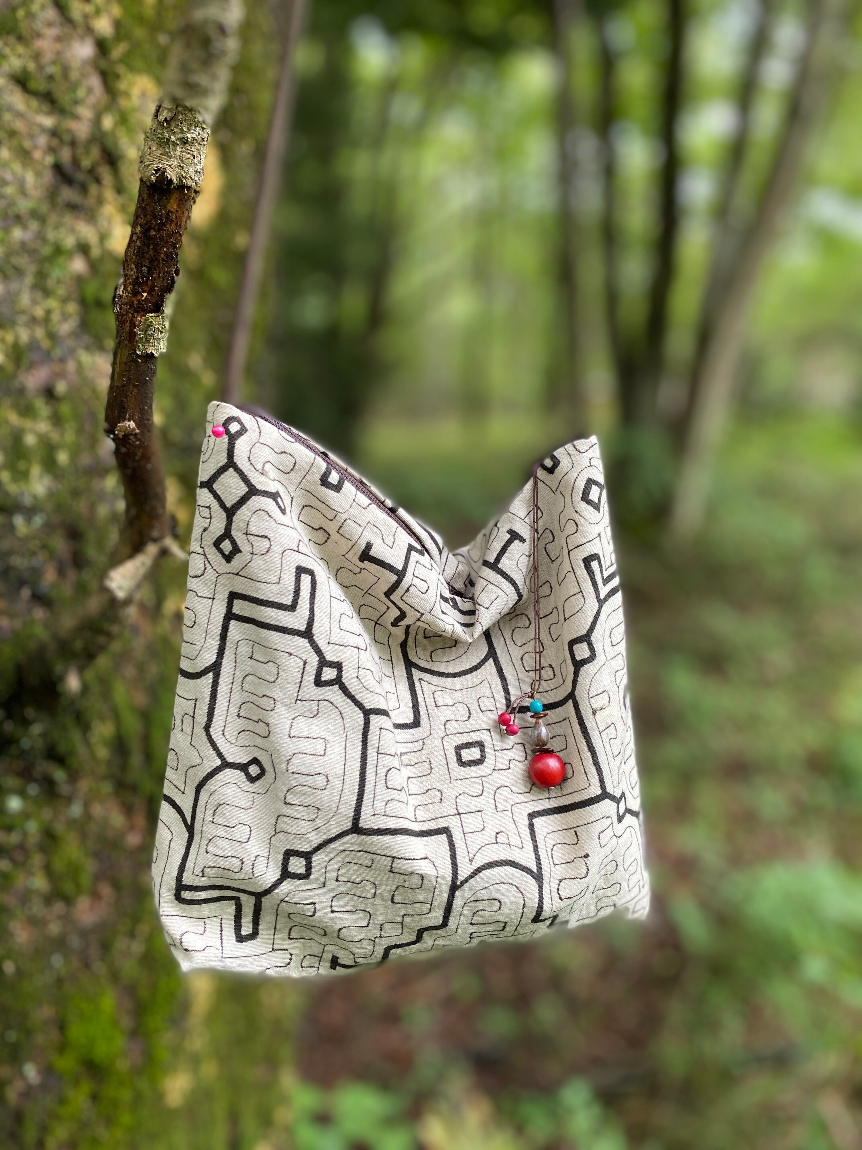 柔らかくて軽い、シピボ族による手描き模様染めのファスナー付きショルダー
