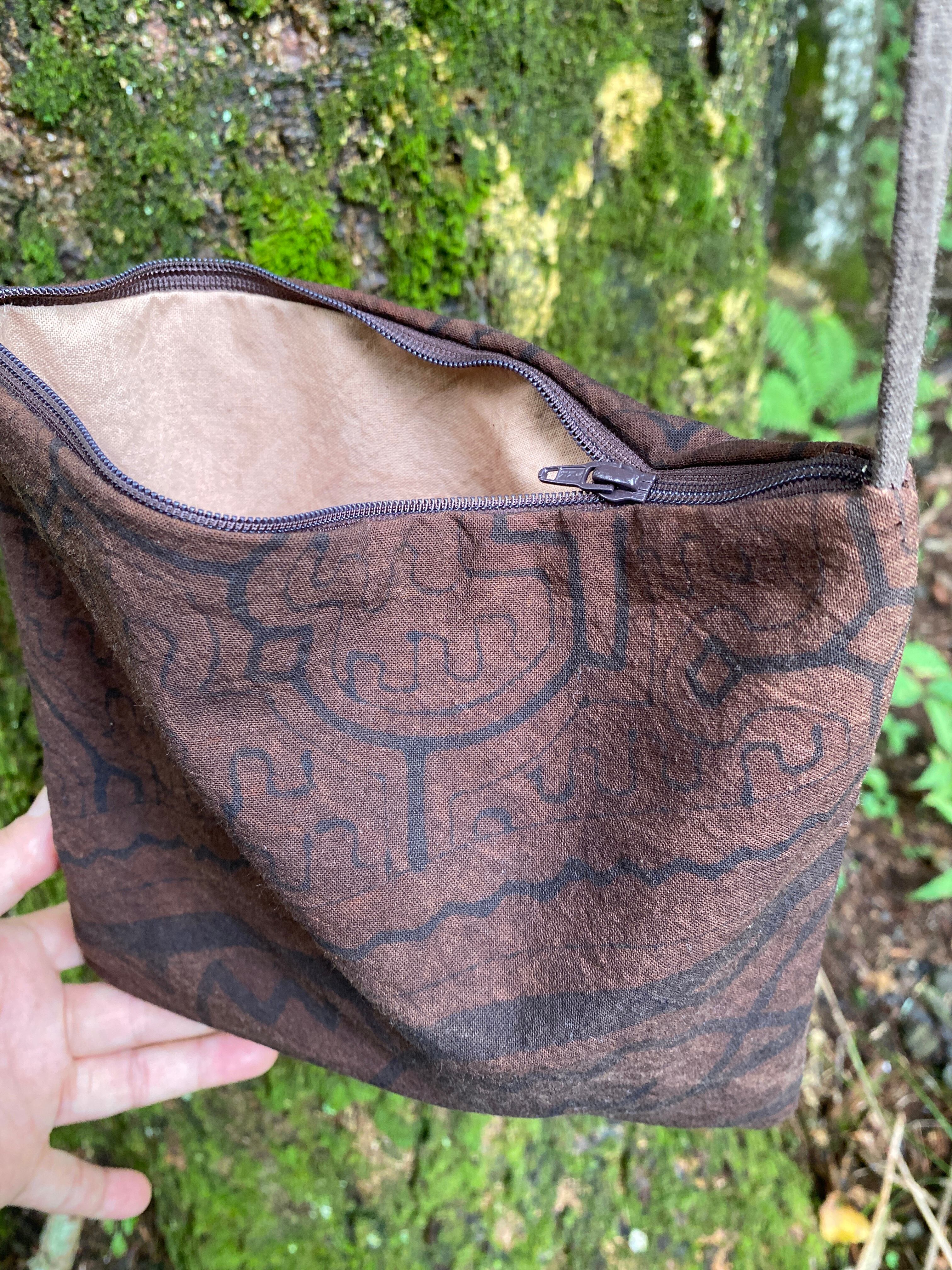 紐長め 130cm 泥染めの焦茶 内布も泥染めピンクベージュ系