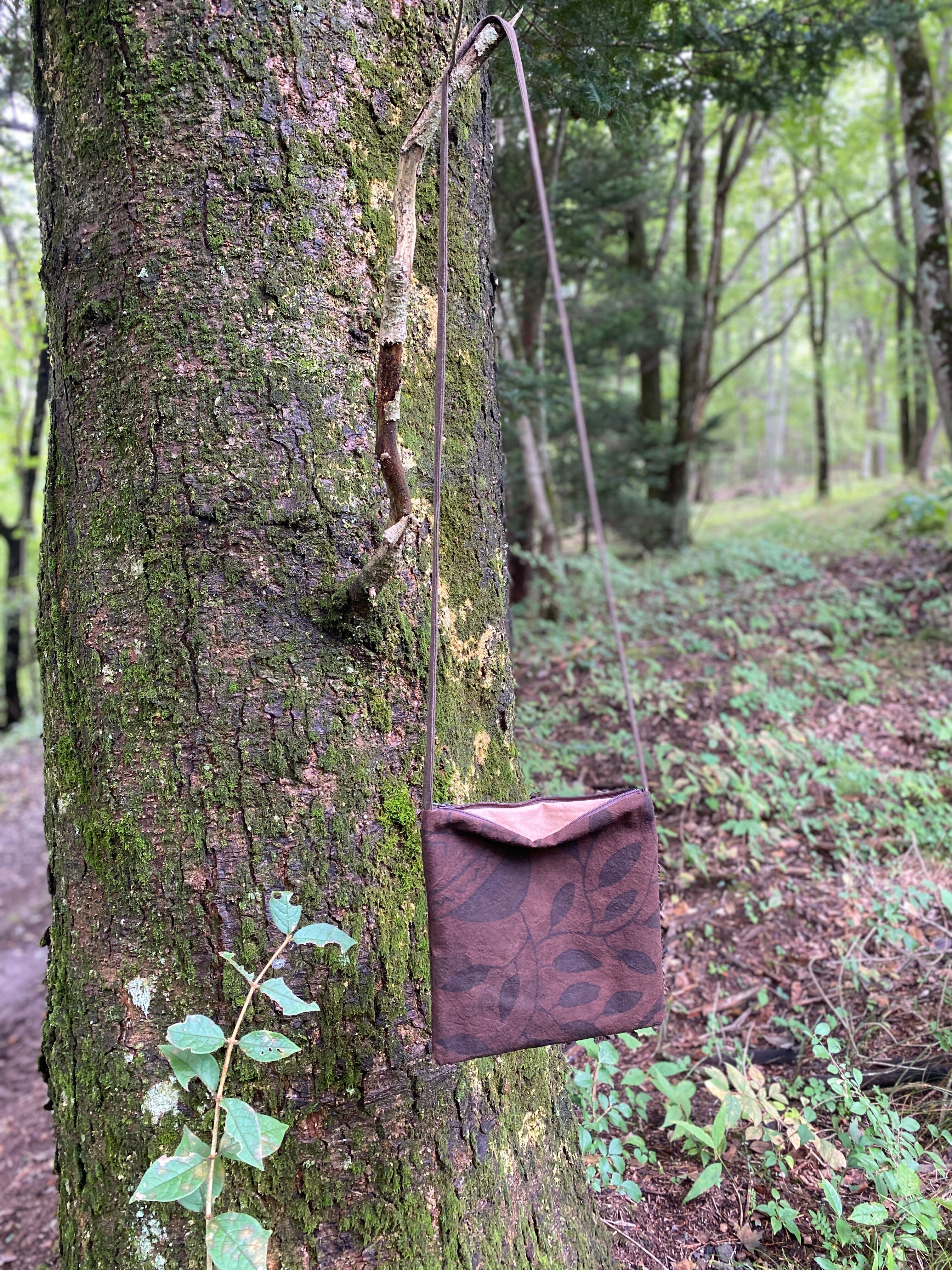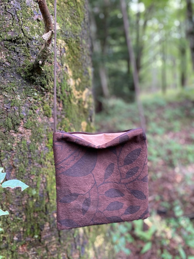 ポシェット シピボ模様焦茶 シピボ族の泥染め 21x21cm アヤワスカ植物模様