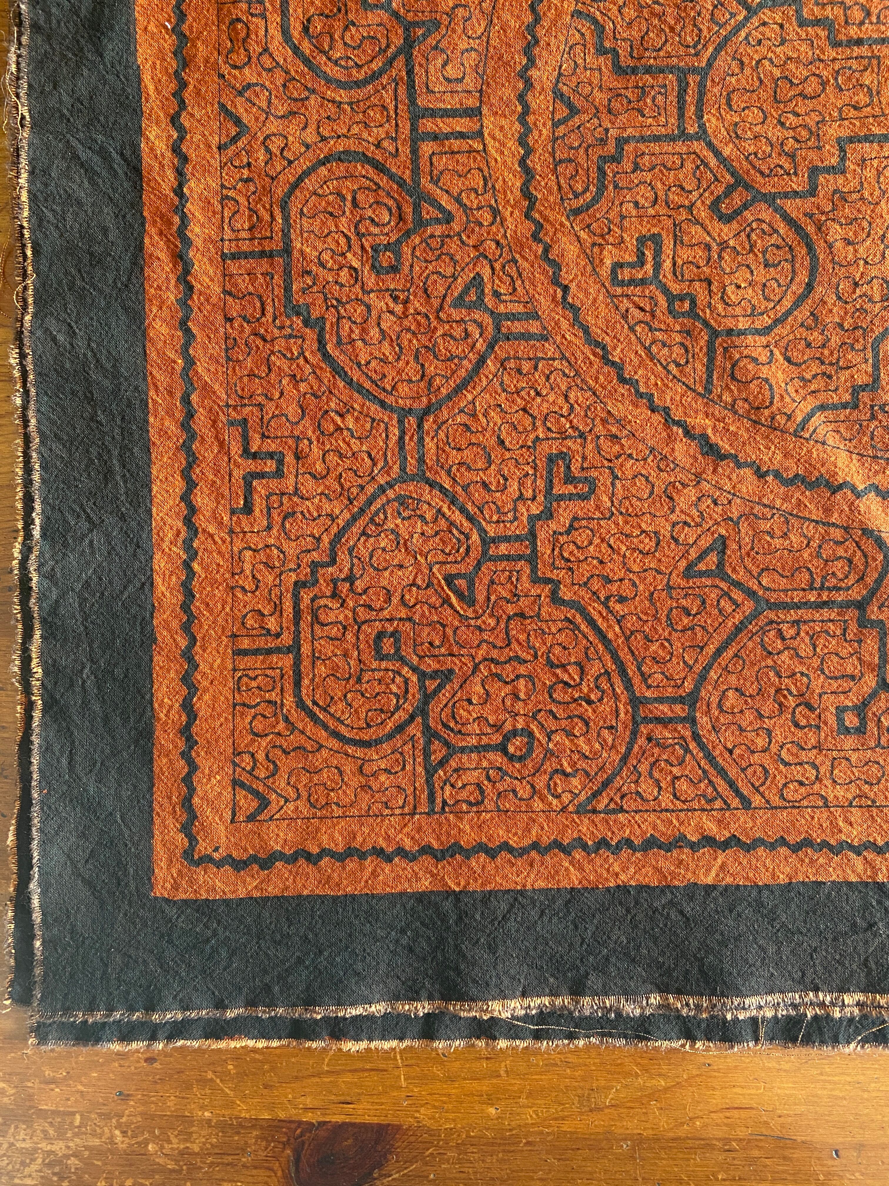 中型茶55-2 シピボ族の泥染め布 55x55 民芸布 草木染め タペストリー