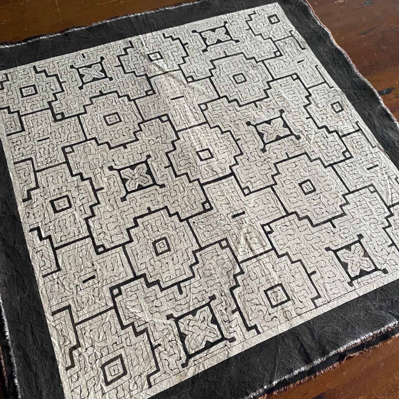 中型白55-0 シピボ族の泥染め布 54x54 shipibo 民芸布 草木染め タペストリ 世界の民藝 エスニック布 | アマゾン屋 シピボ族の泥染めとバッグと雑貨