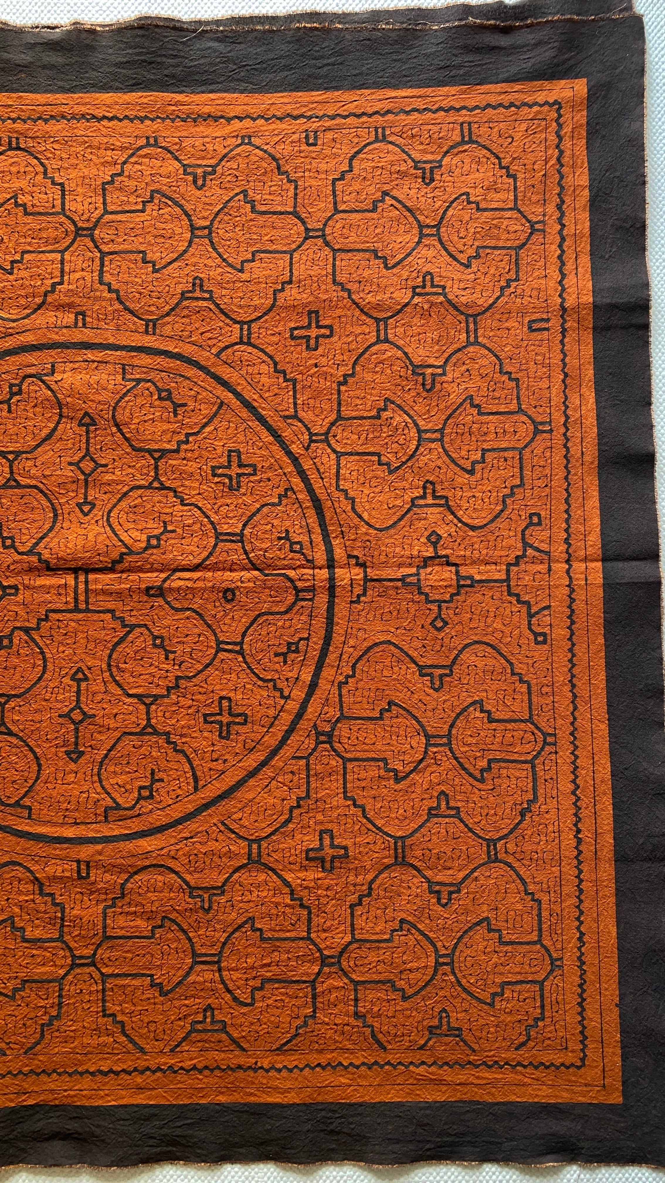 アマゾンの泥染めは、先住民族シピボ族の伝統工芸で、フリーハンドの幾何学模様を染める、希少価値の高い手工芸です。この布を使ってオーナー(AYACHI S)がバッグや布雑貨を手作りしています。 貴重な伝統工芸を少しでも長く作り続けて欲しいという想いから続けている活動です。