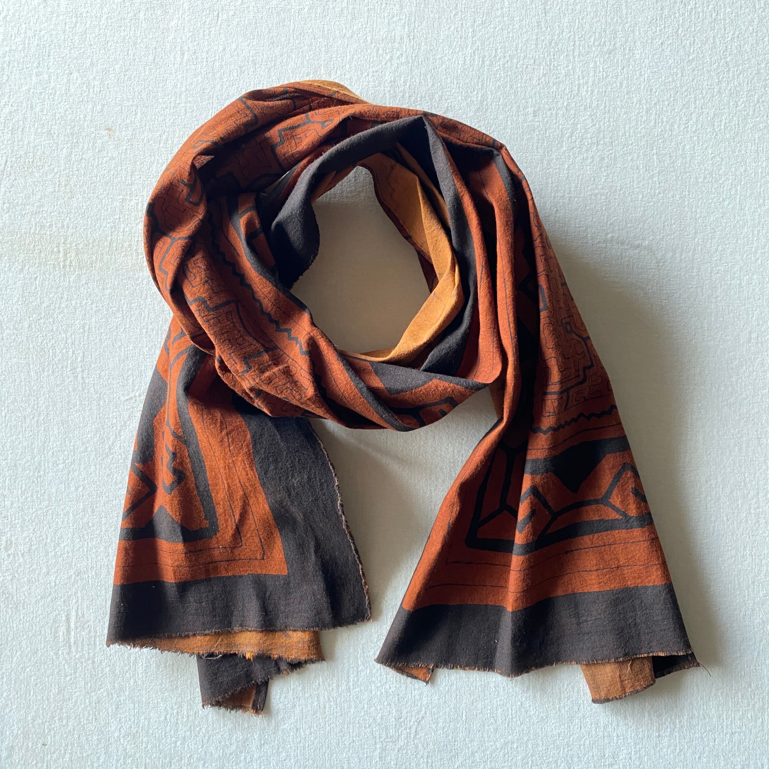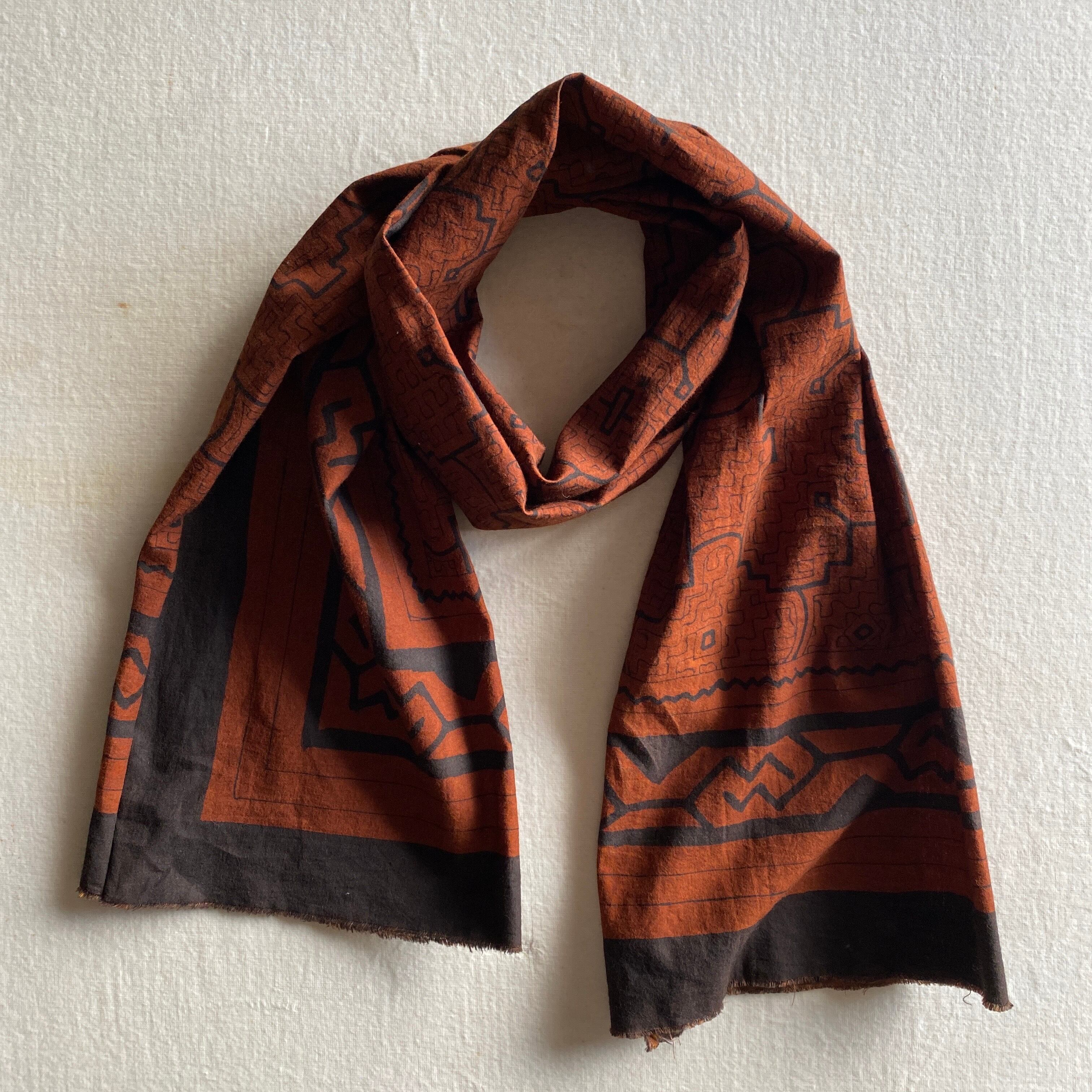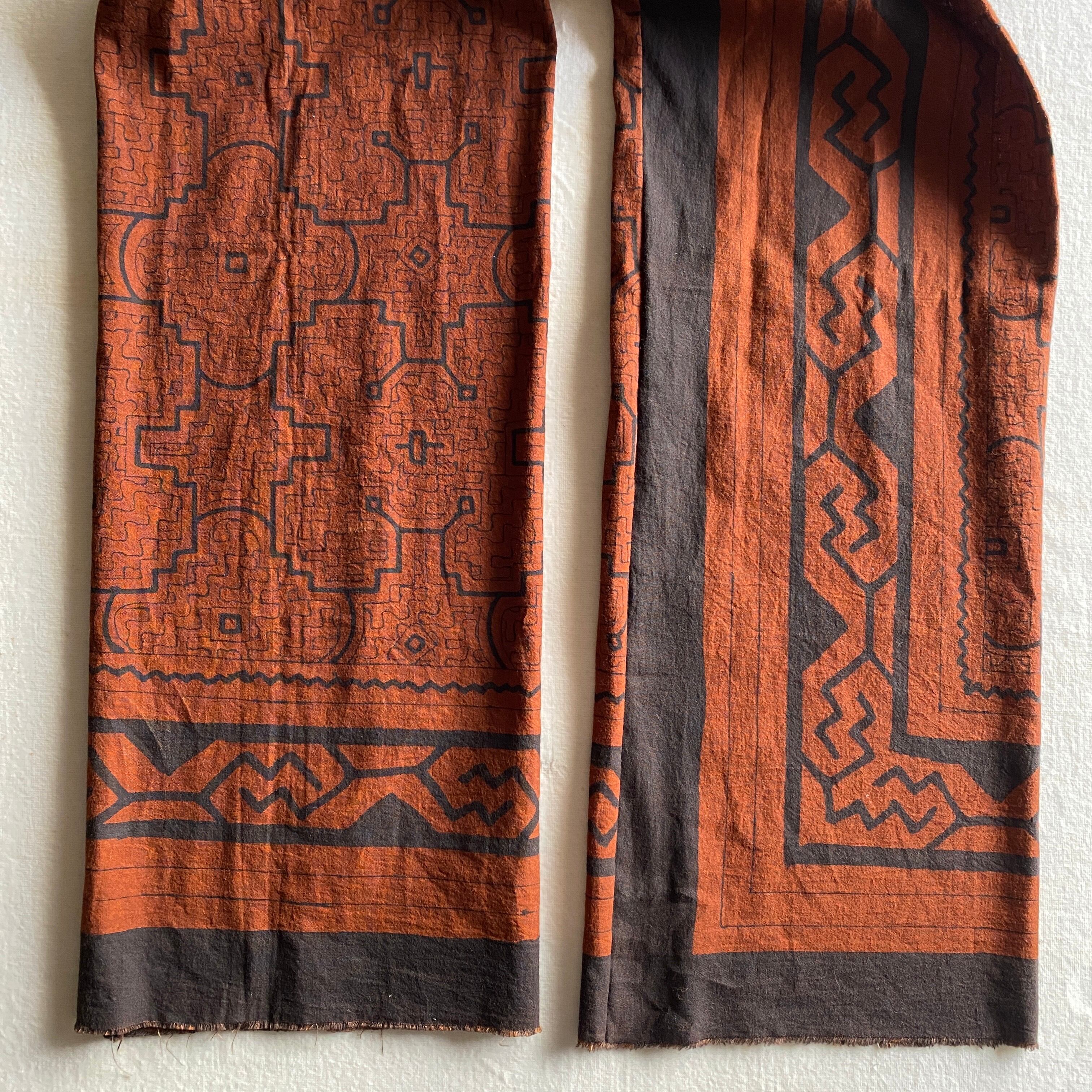 Sto2516 シピボ模様茶150x25cm 模様染め一枚布 | アマゾン屋 シピボ族の泥染めとバッグと雑貨