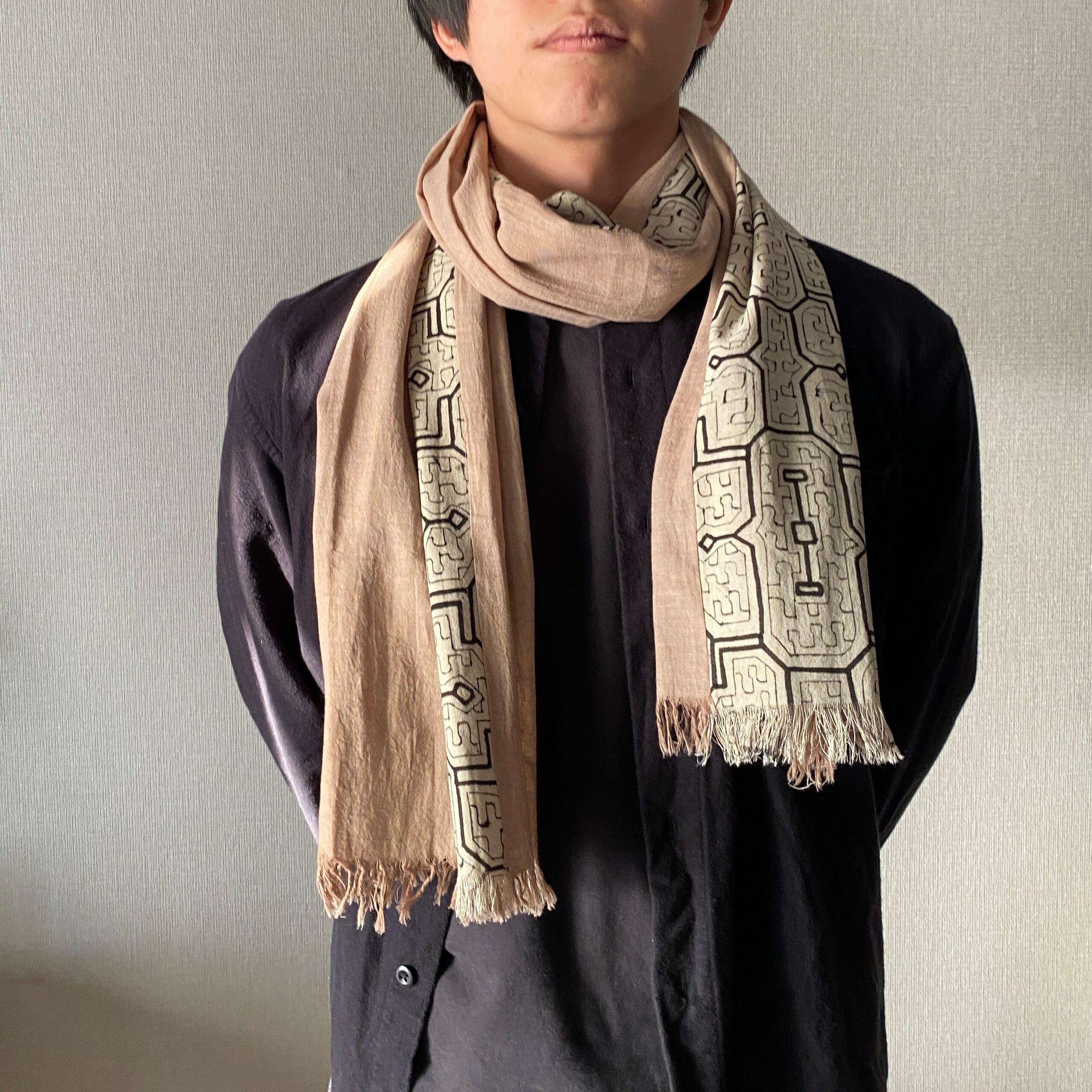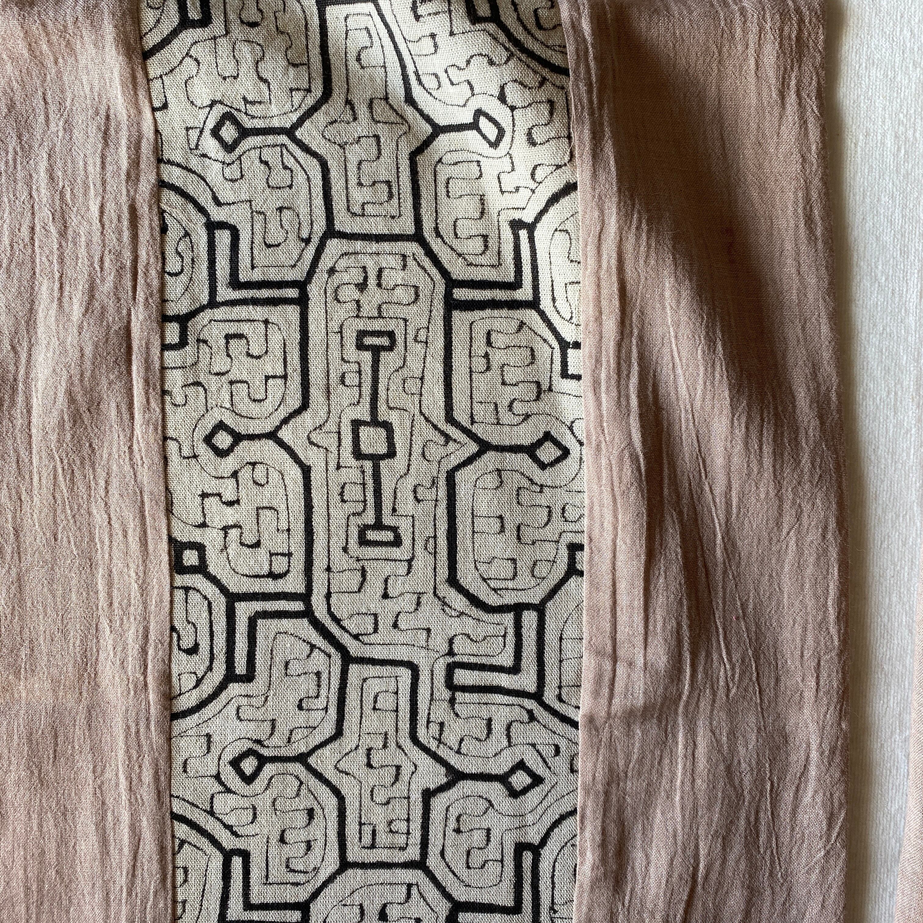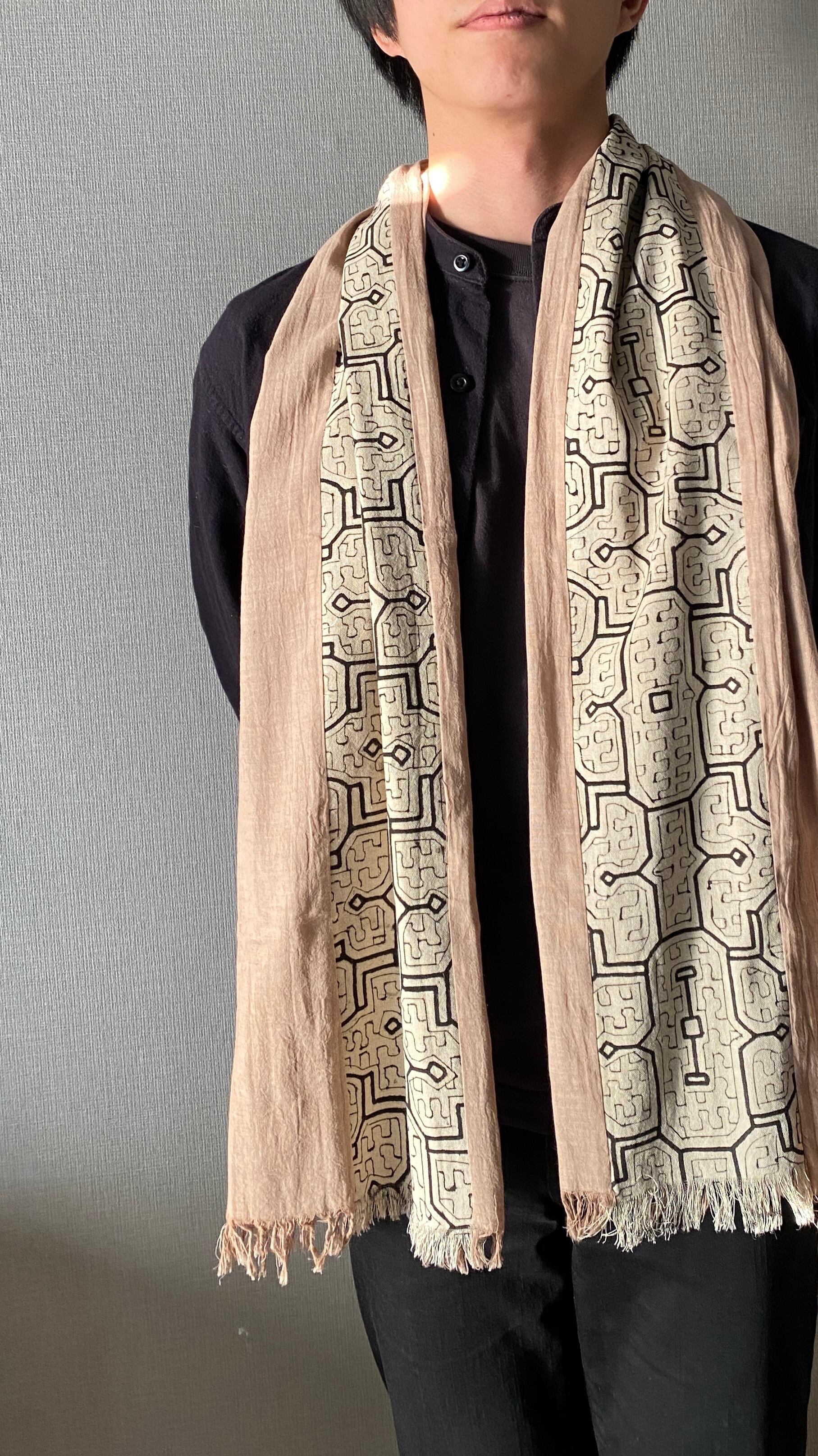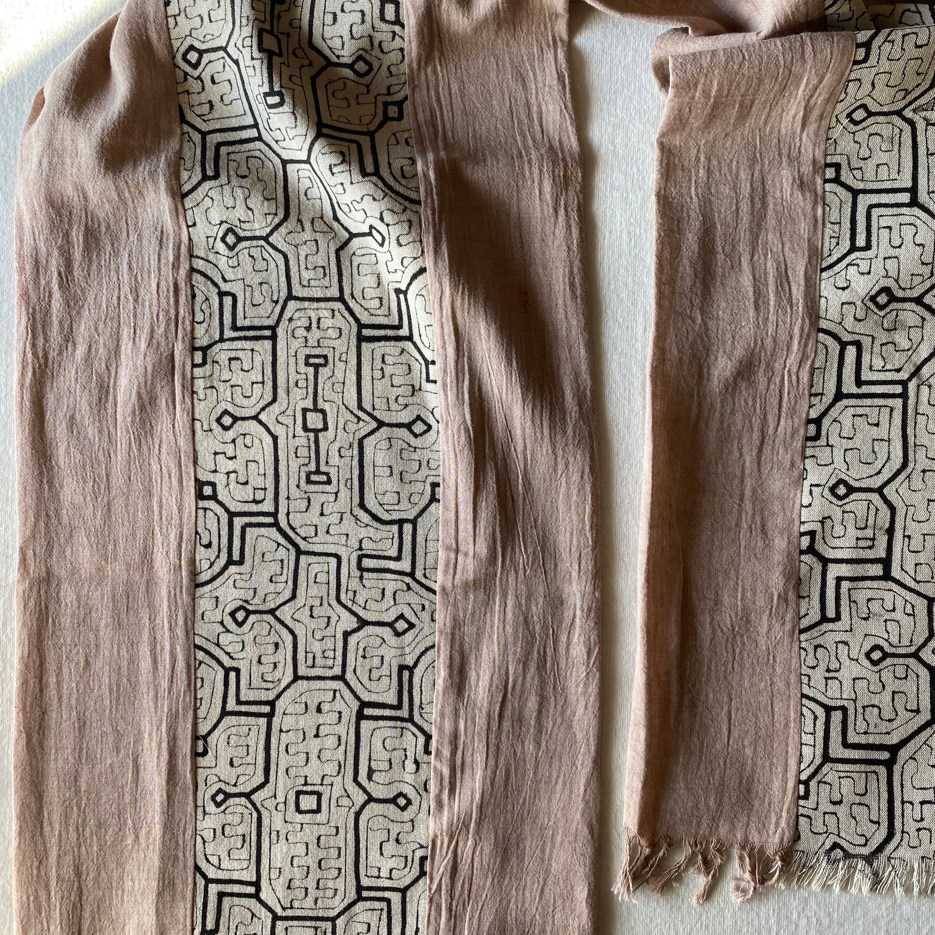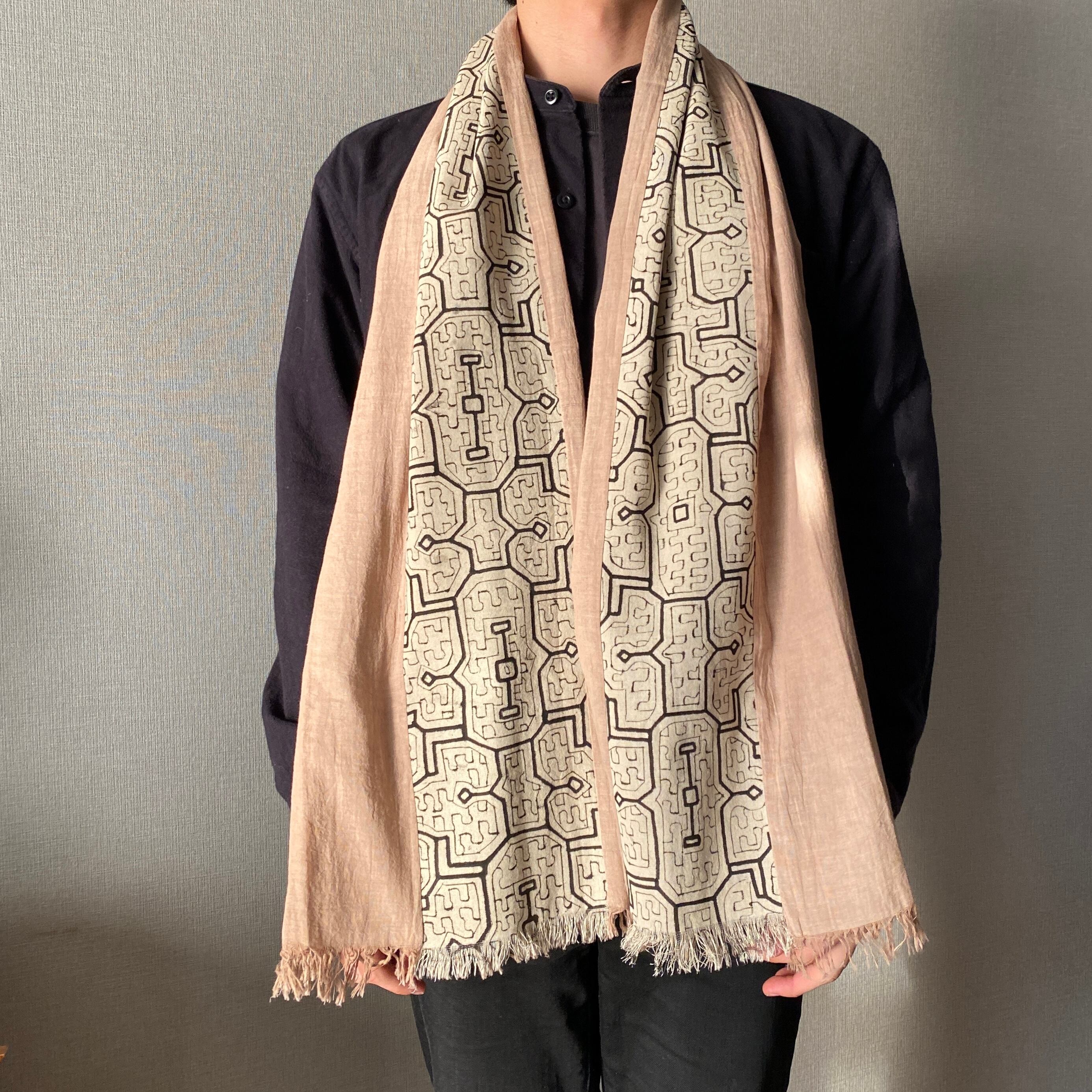 Sto2522 シピボ模様白とピンク系ベージュ 170x32cm アマゾンの泥染め | アマゾン屋 シピボ族の泥染めとバッグと雑貨
