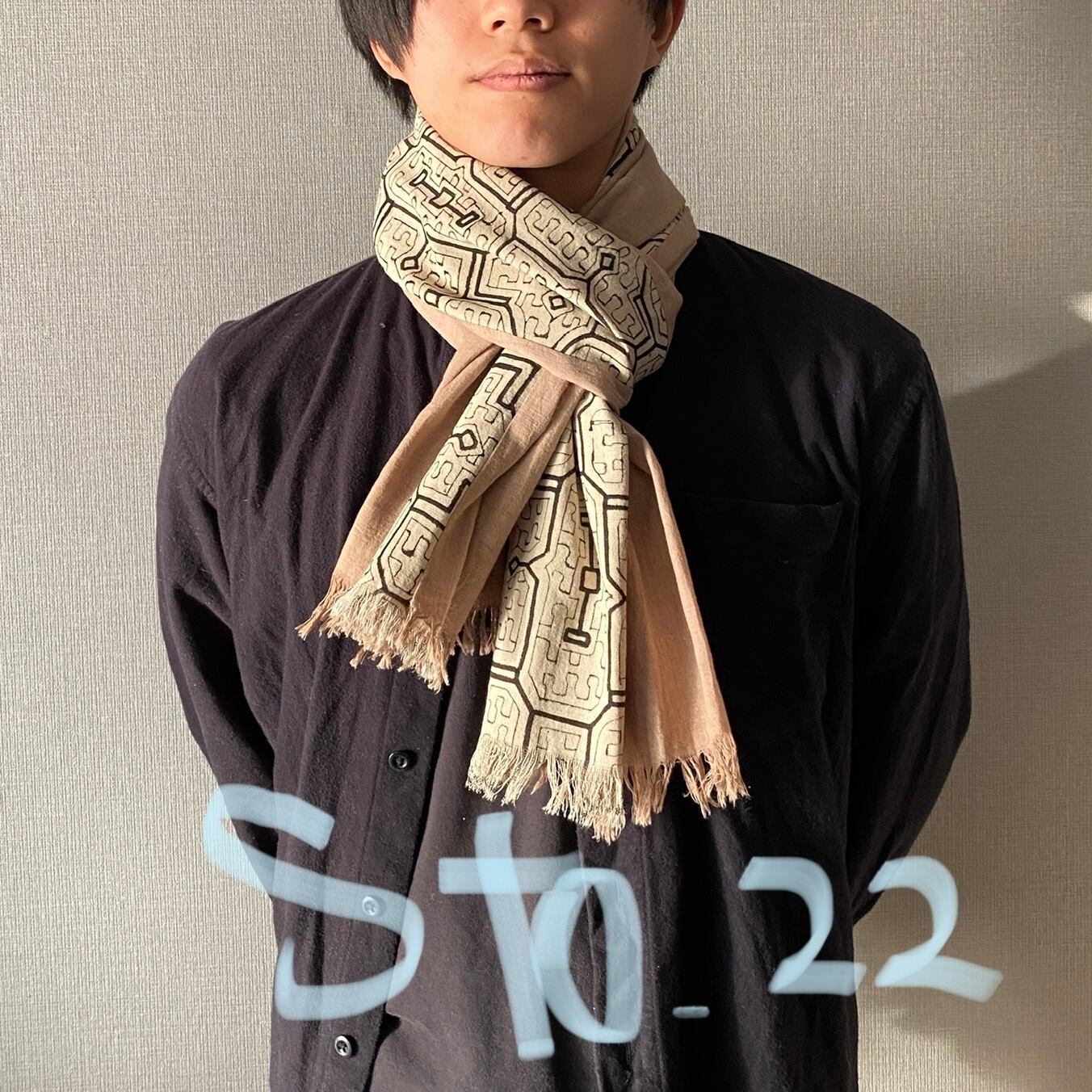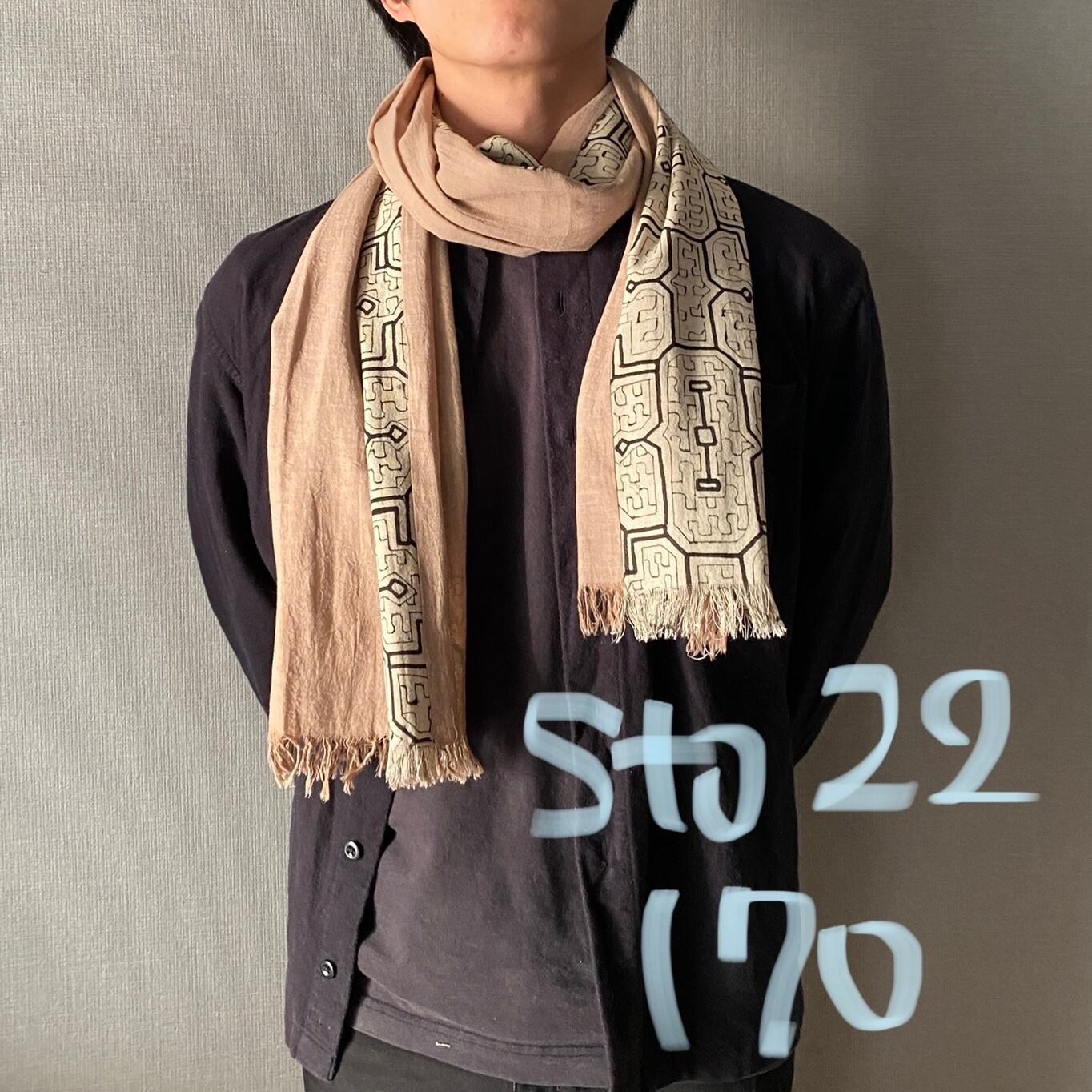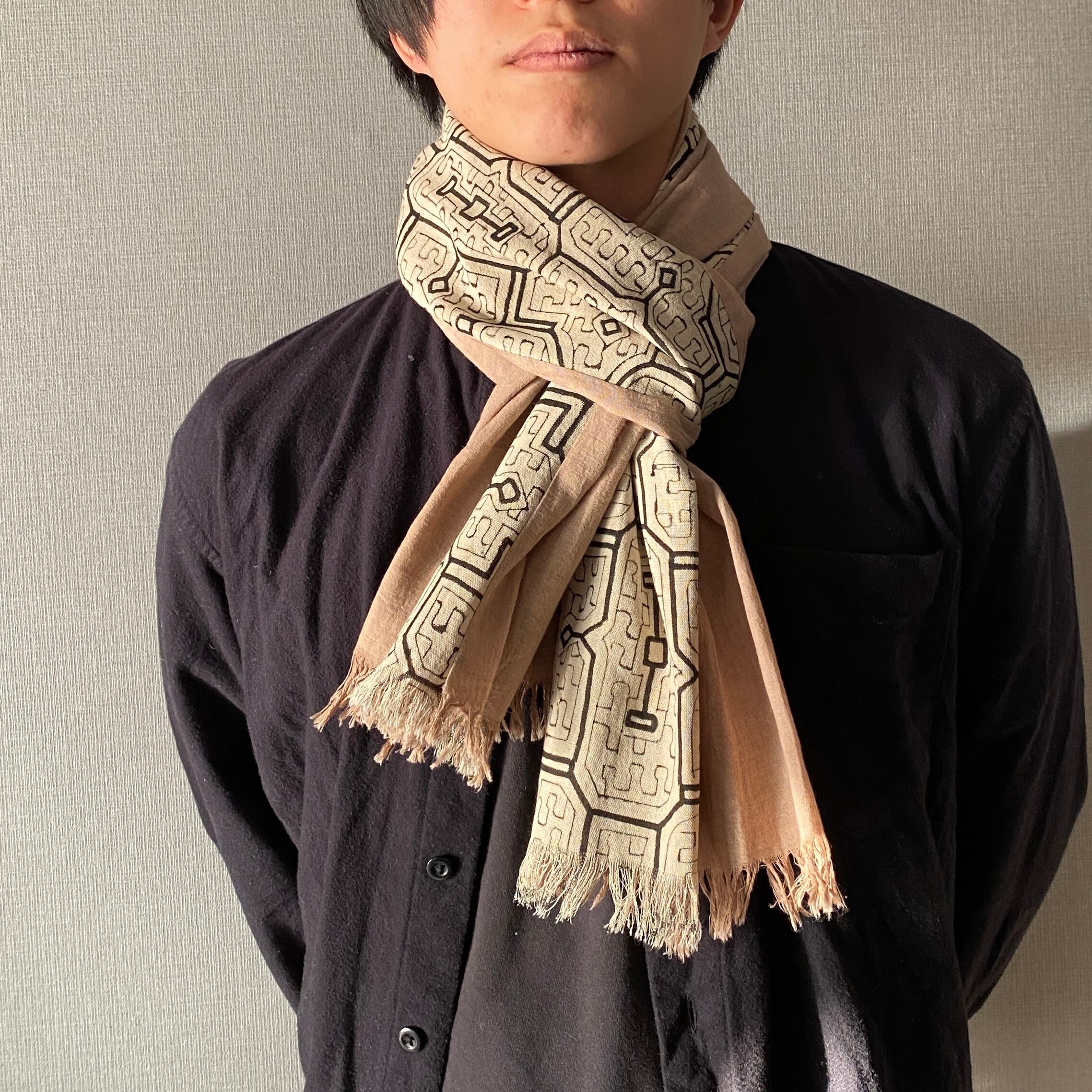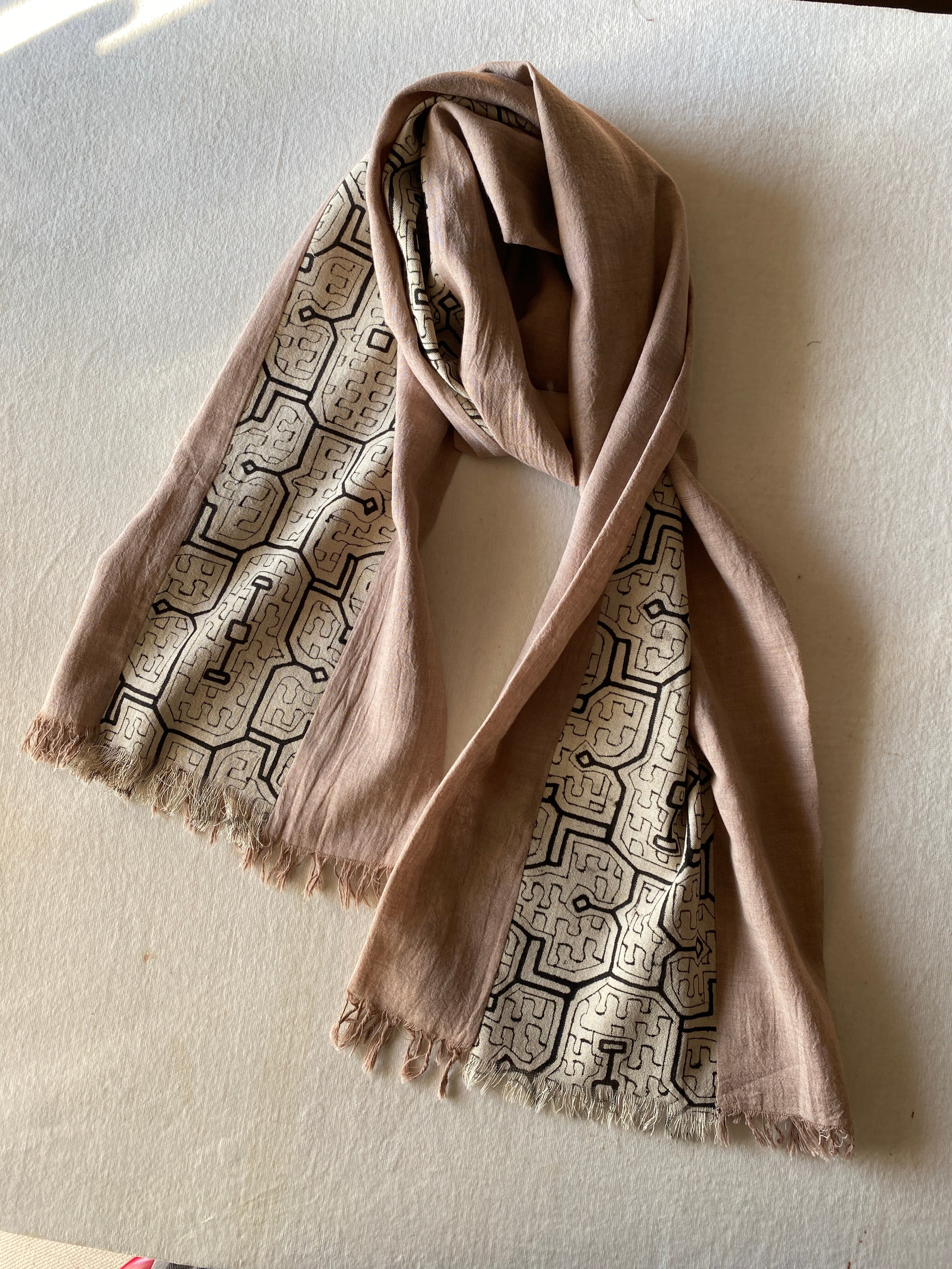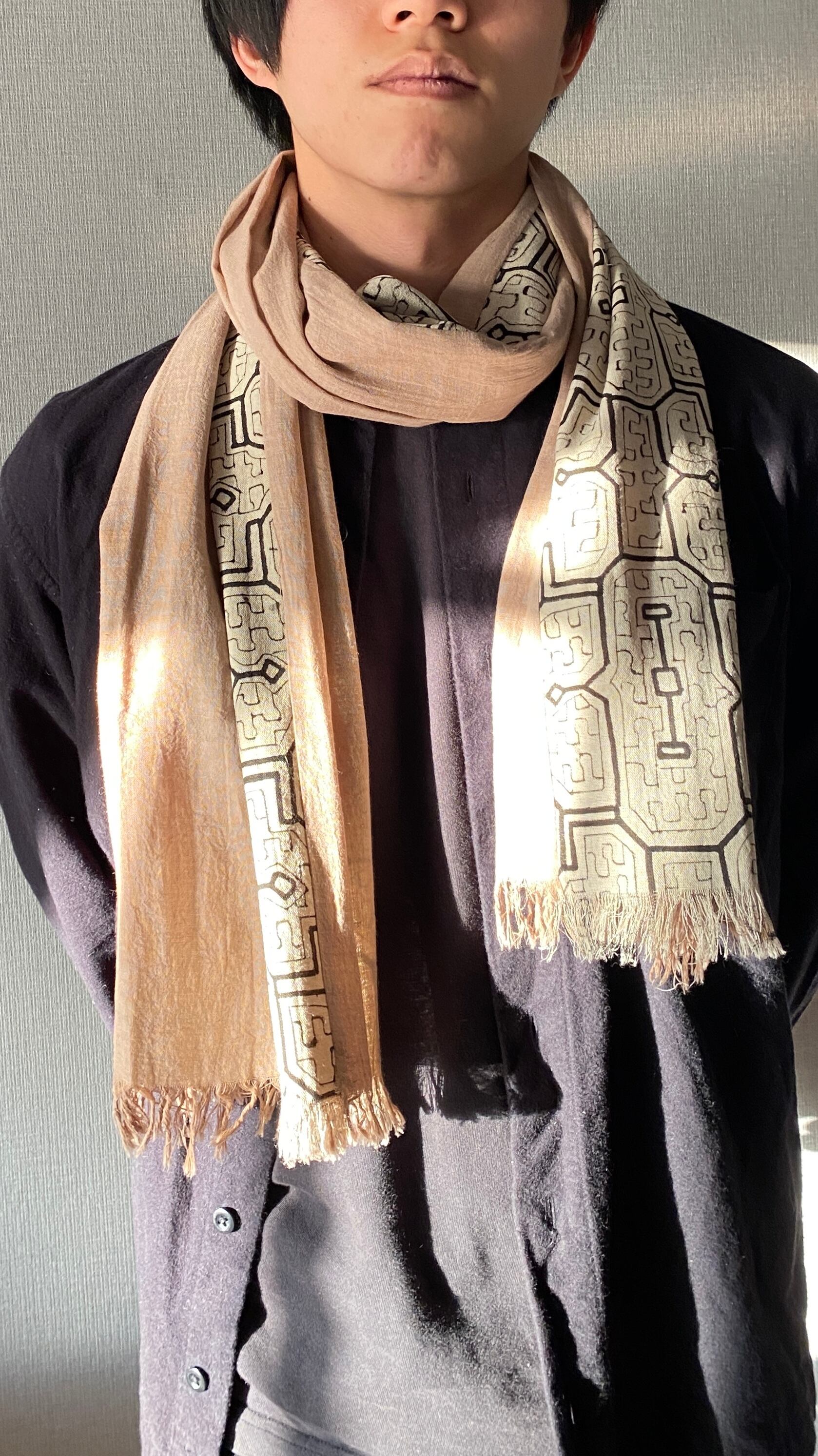 Sto2522 シピボ模様白とピンク系ベージュ 170x32cm アマゾンの泥染め | アマゾン屋 シピボ族の泥染めとバッグと雑貨