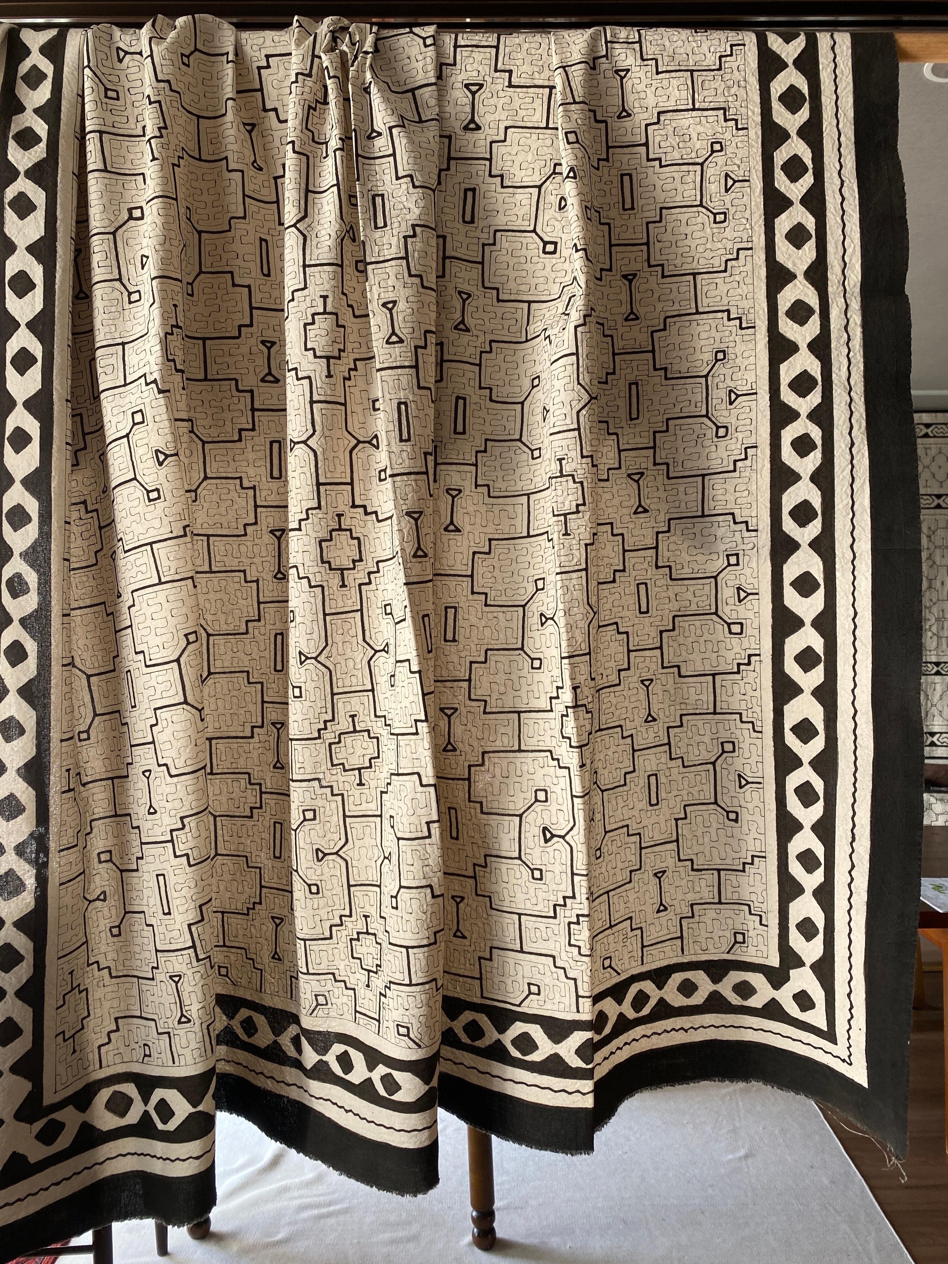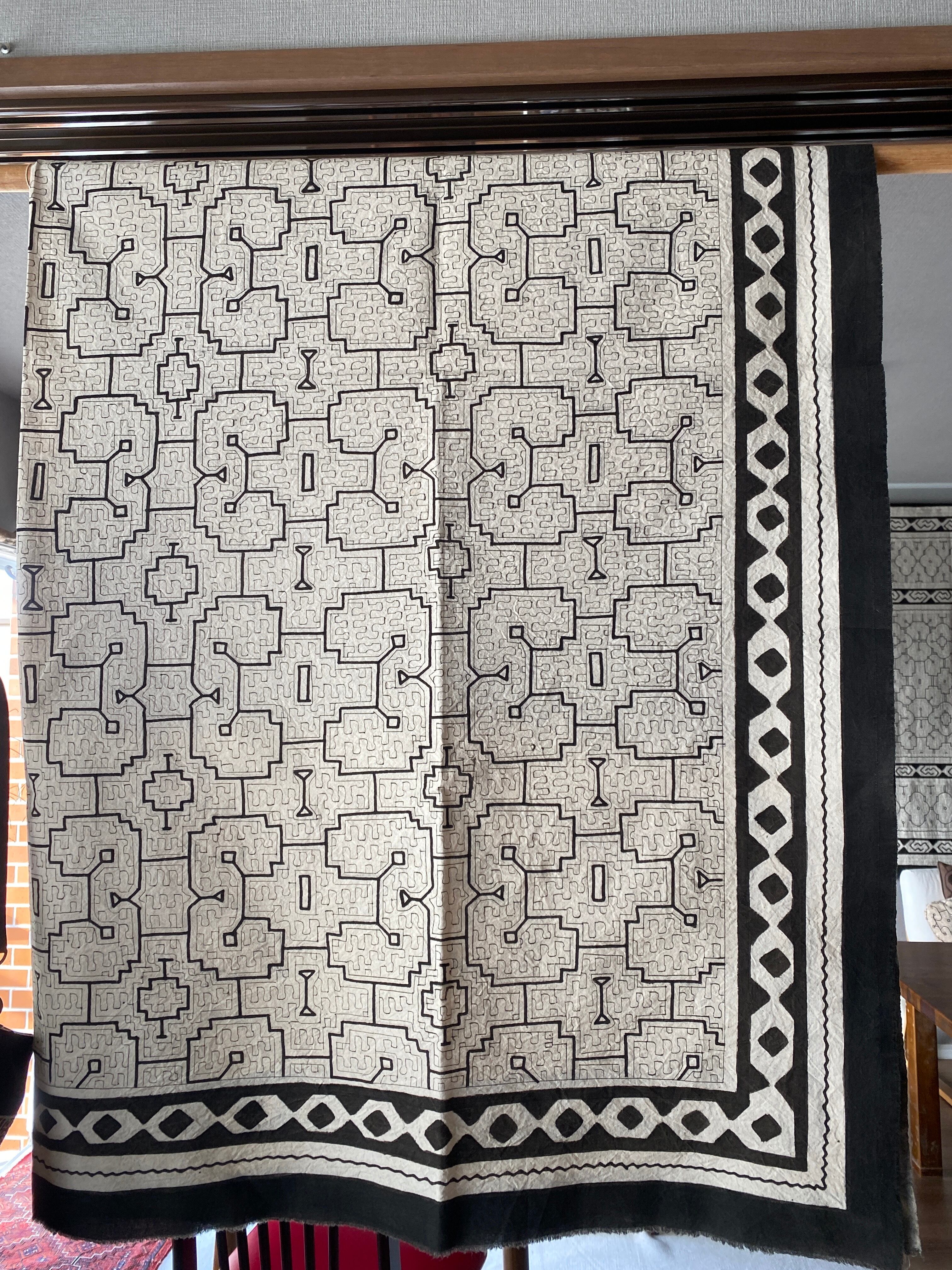 G2510 大判白へび 155x155cmシピボ族の泥染め 先住民族の工芸布 伝統工芸 エスニック