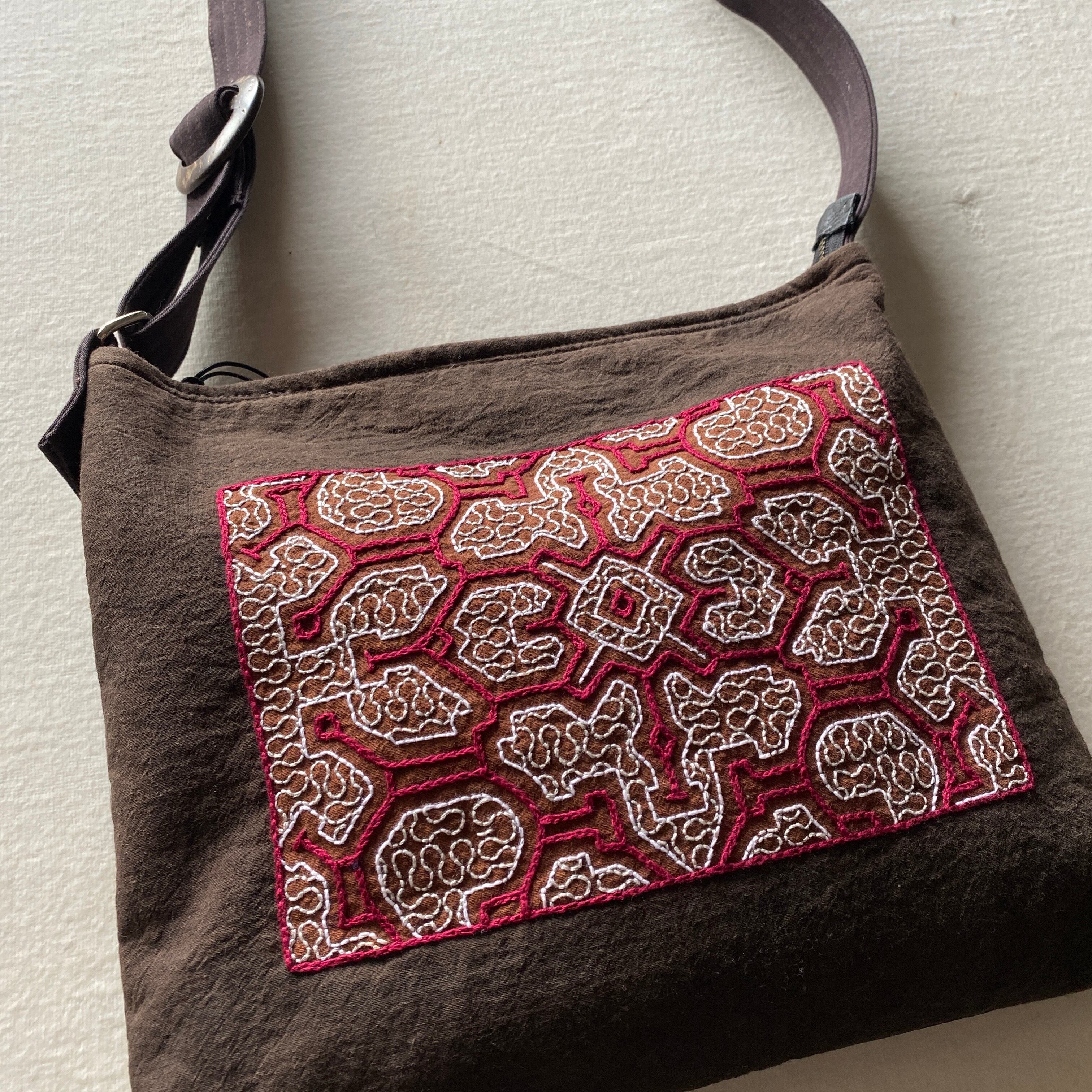 Bag11 刺繍フカフカファスナー太ショルダー 赤刺繍