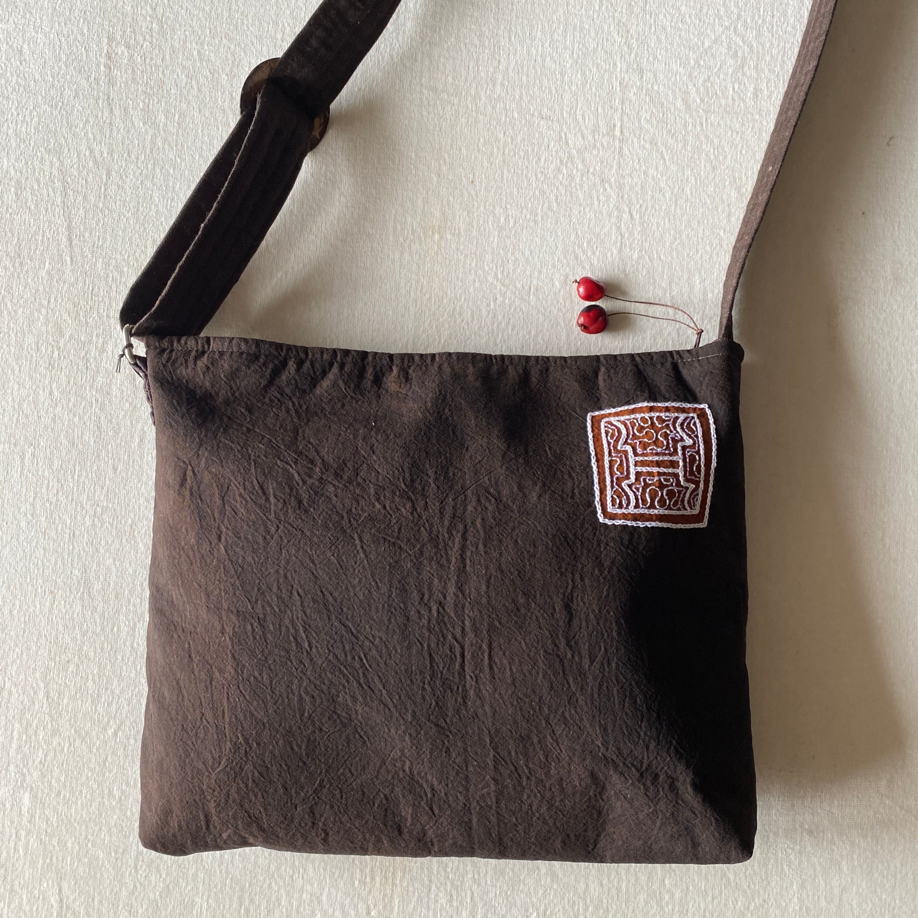bag12 刺繍フカフカファスナー太ショルダー黄色刺繍 | アマゾン屋 シピボ族の泥染めとバッグと雑貨