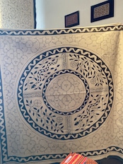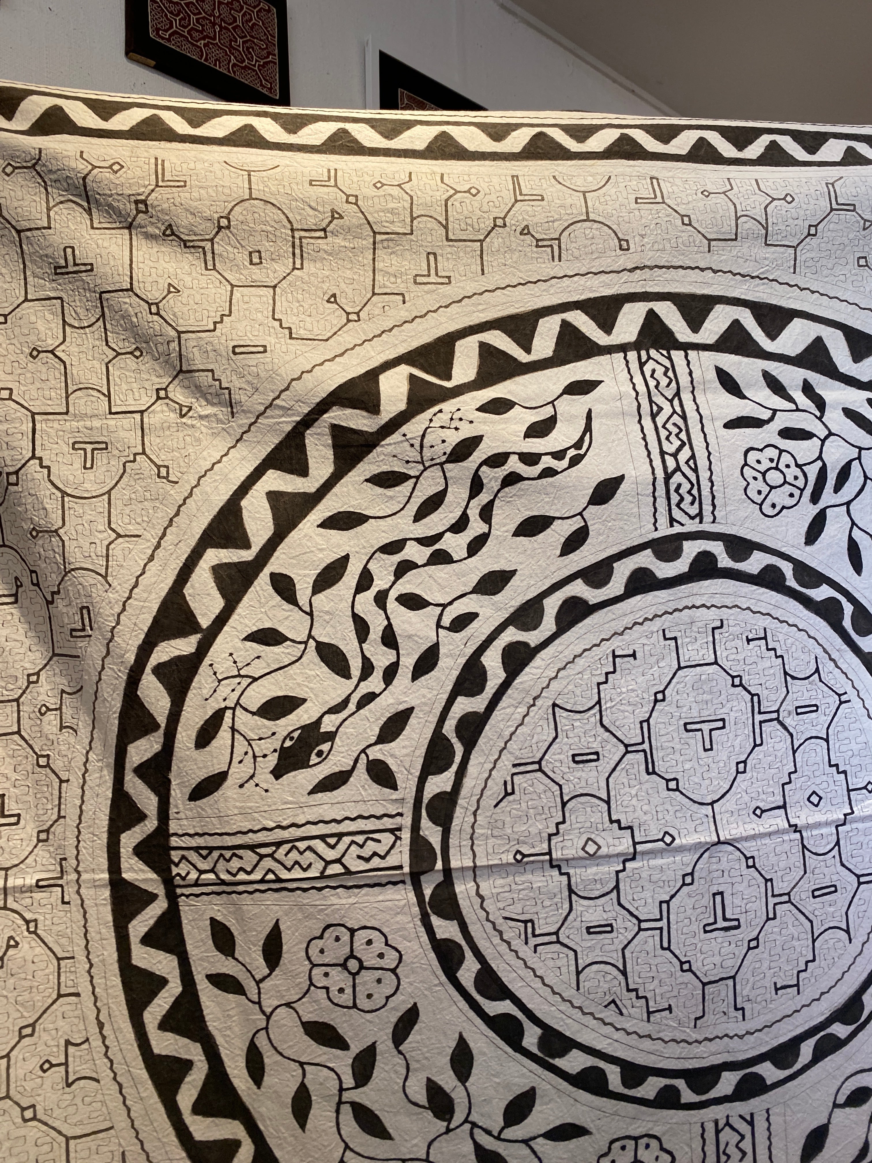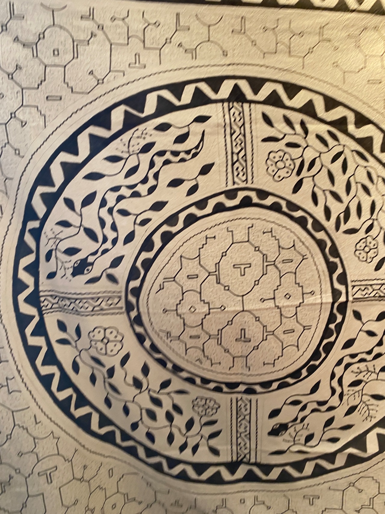 円が4分割にされ、植物のお花も入ったり、小さい蛇が二匹、二重の円は珍しい