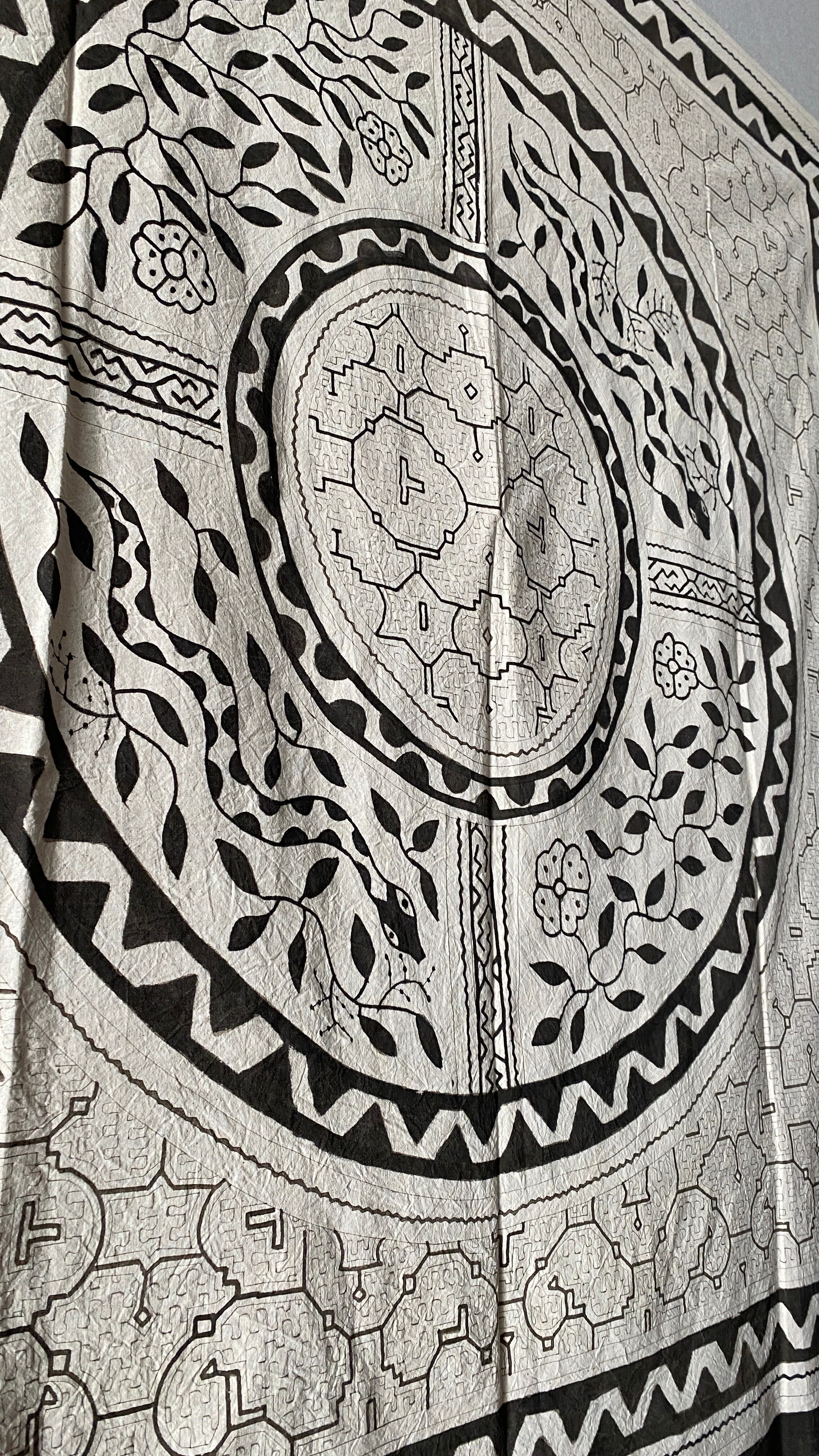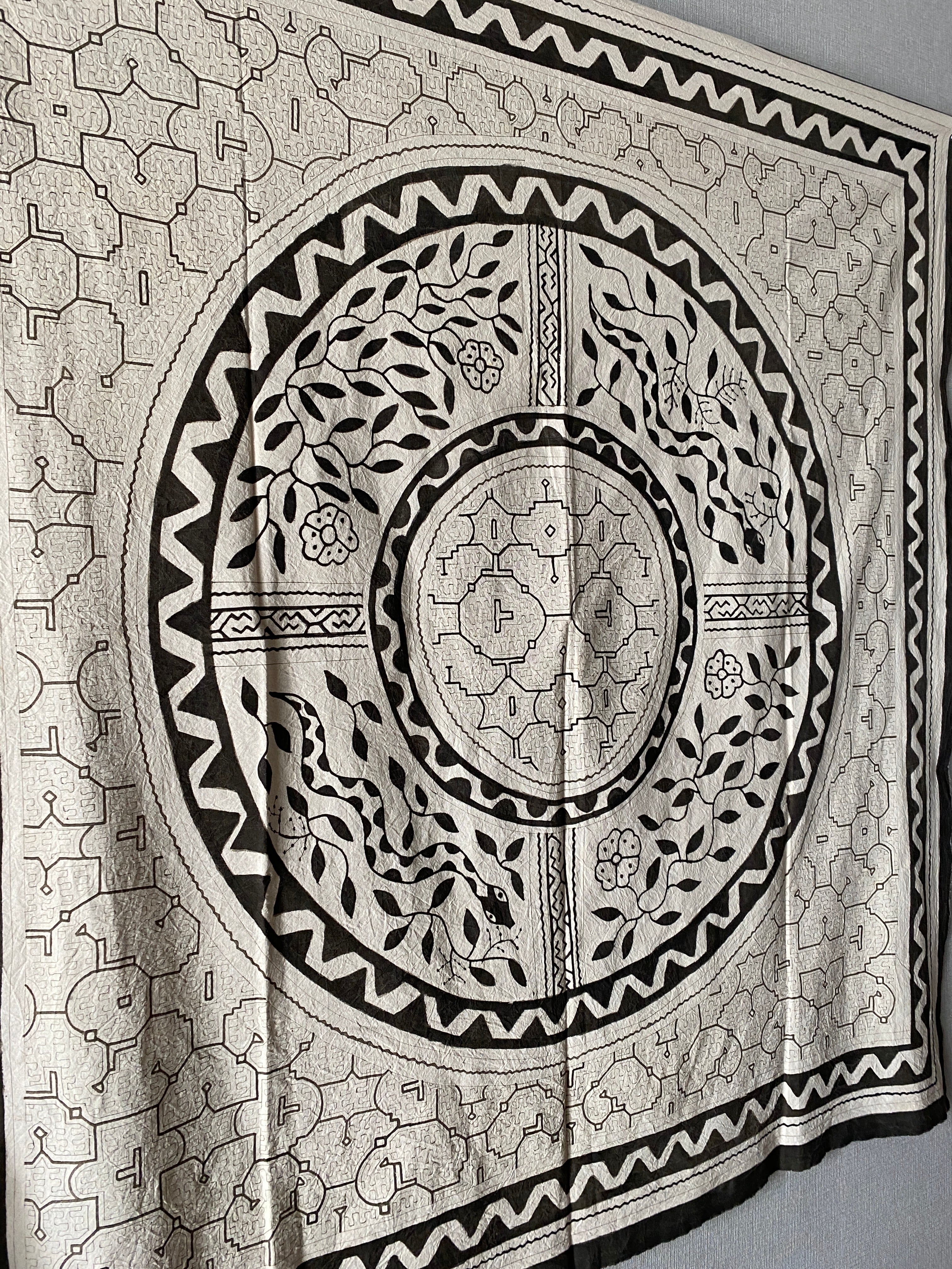 G2502 大判白二重円蛇 155cm シピボ族の泥染め