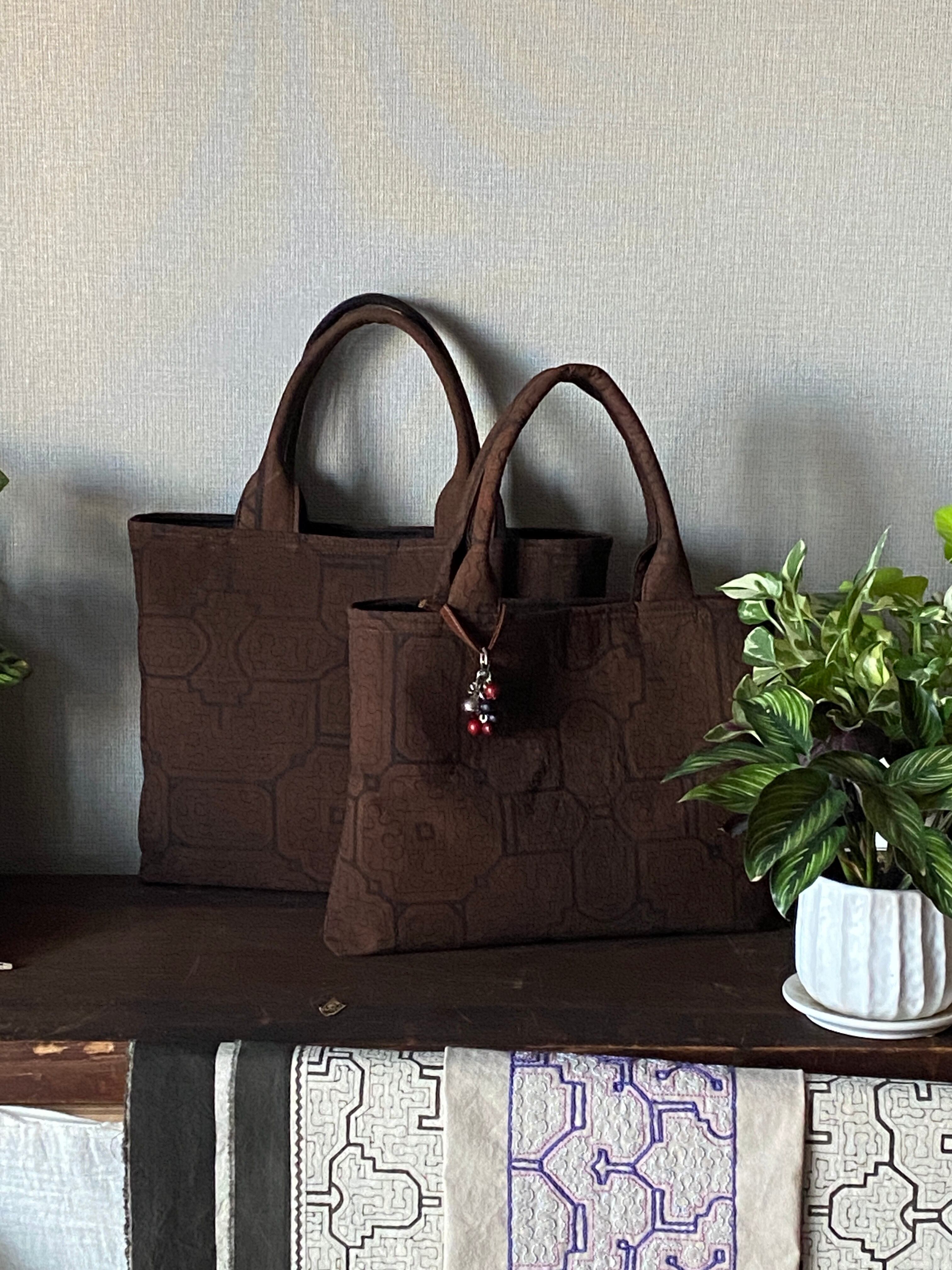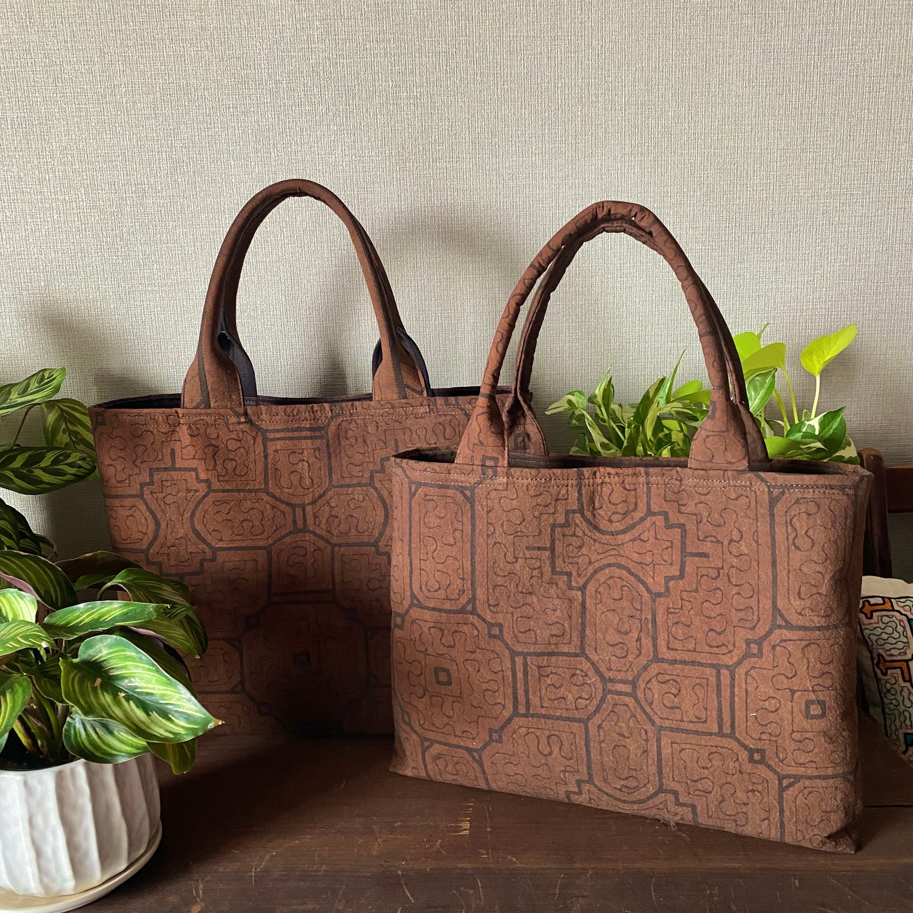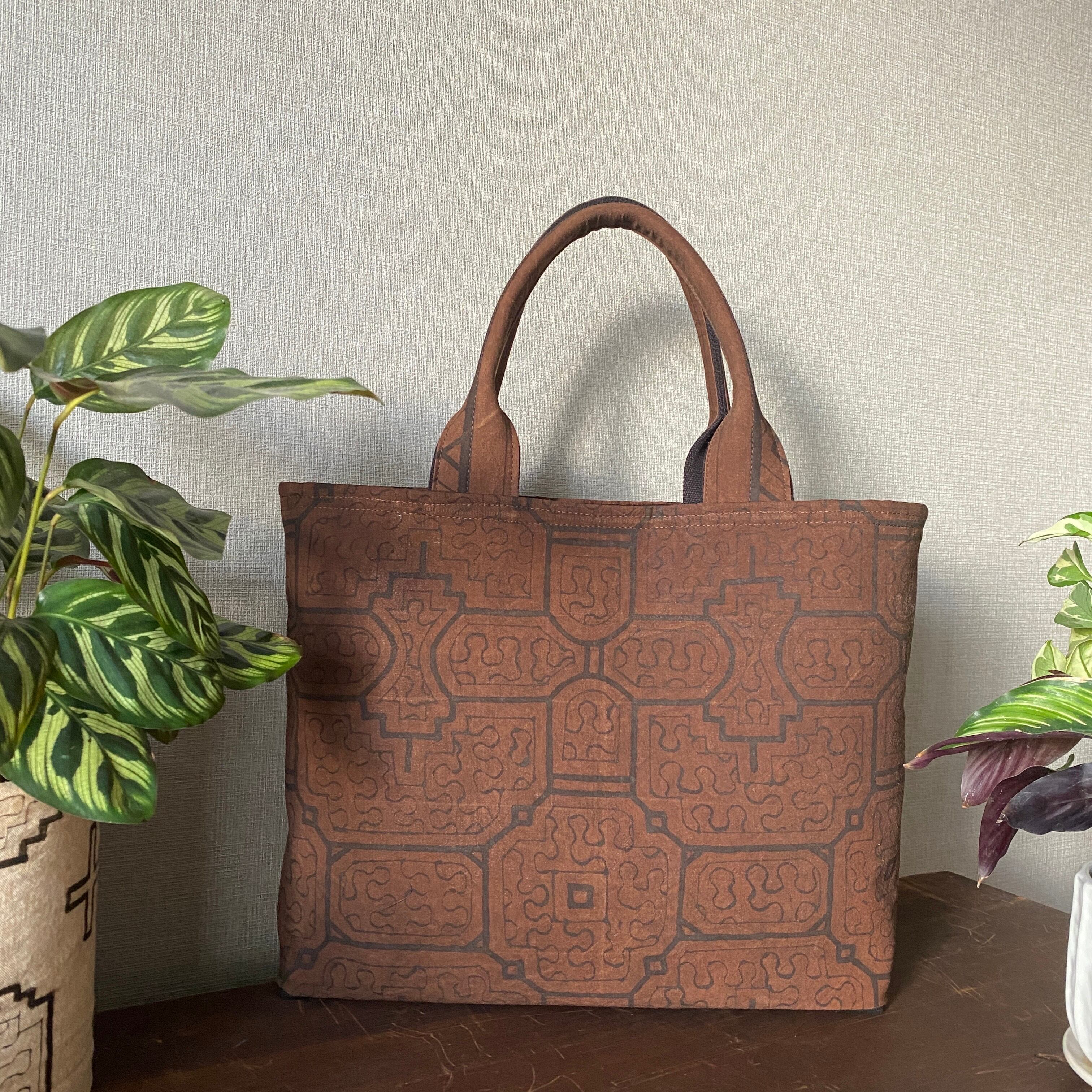 Bag9-10隠れ模様の焦茶バッグ シピボ模様の手提げ レア素材 | アマゾン屋 シピボ族の泥染めとバッグと雑貨