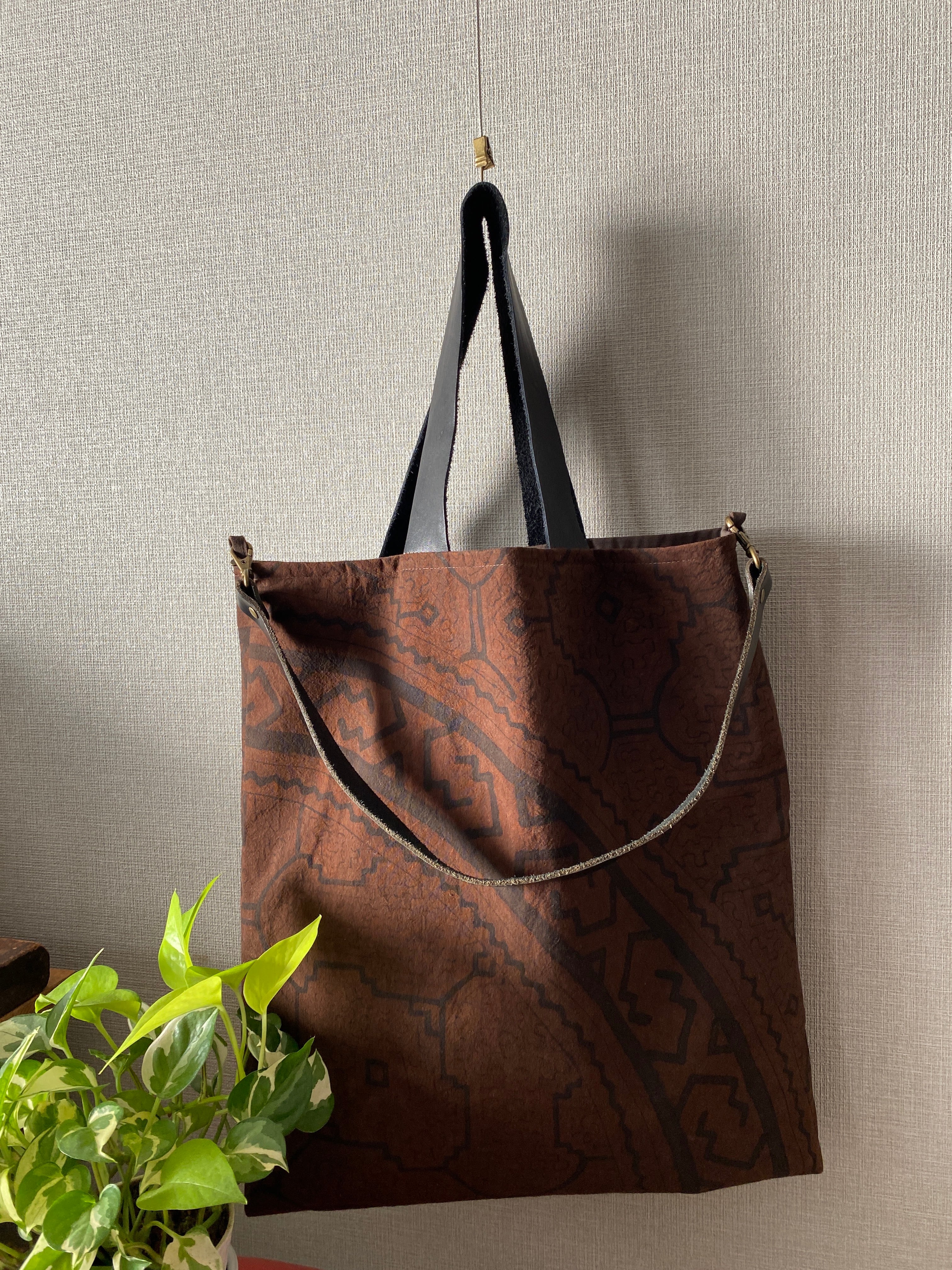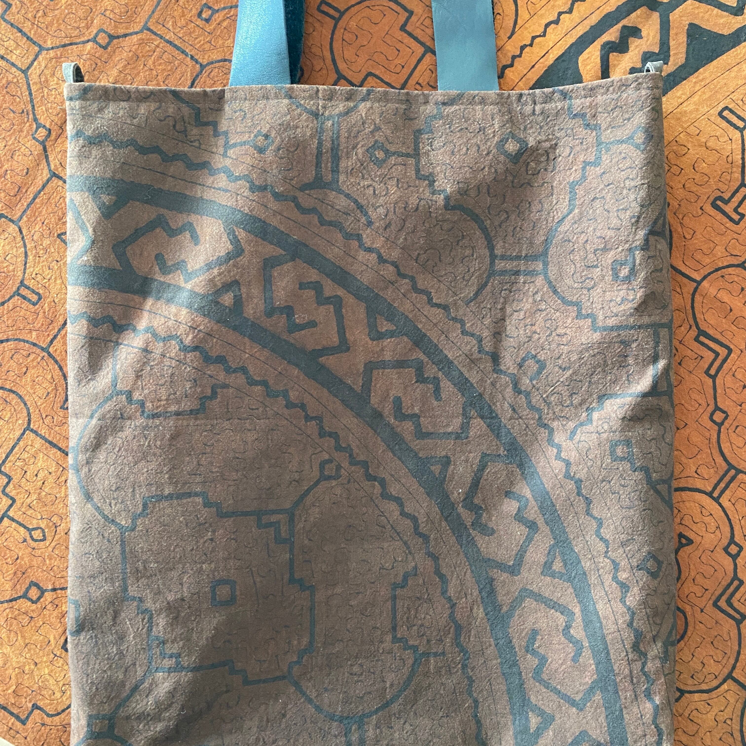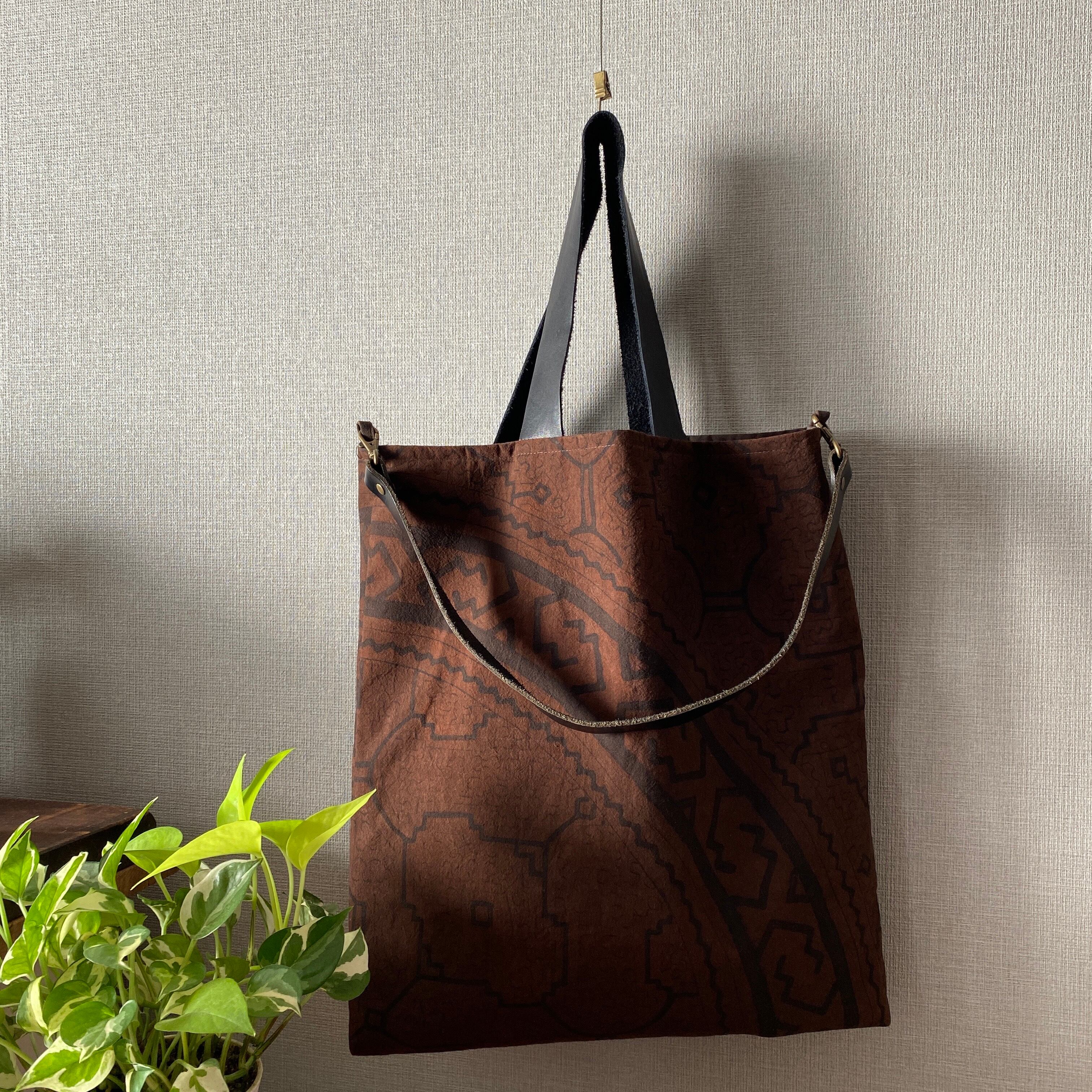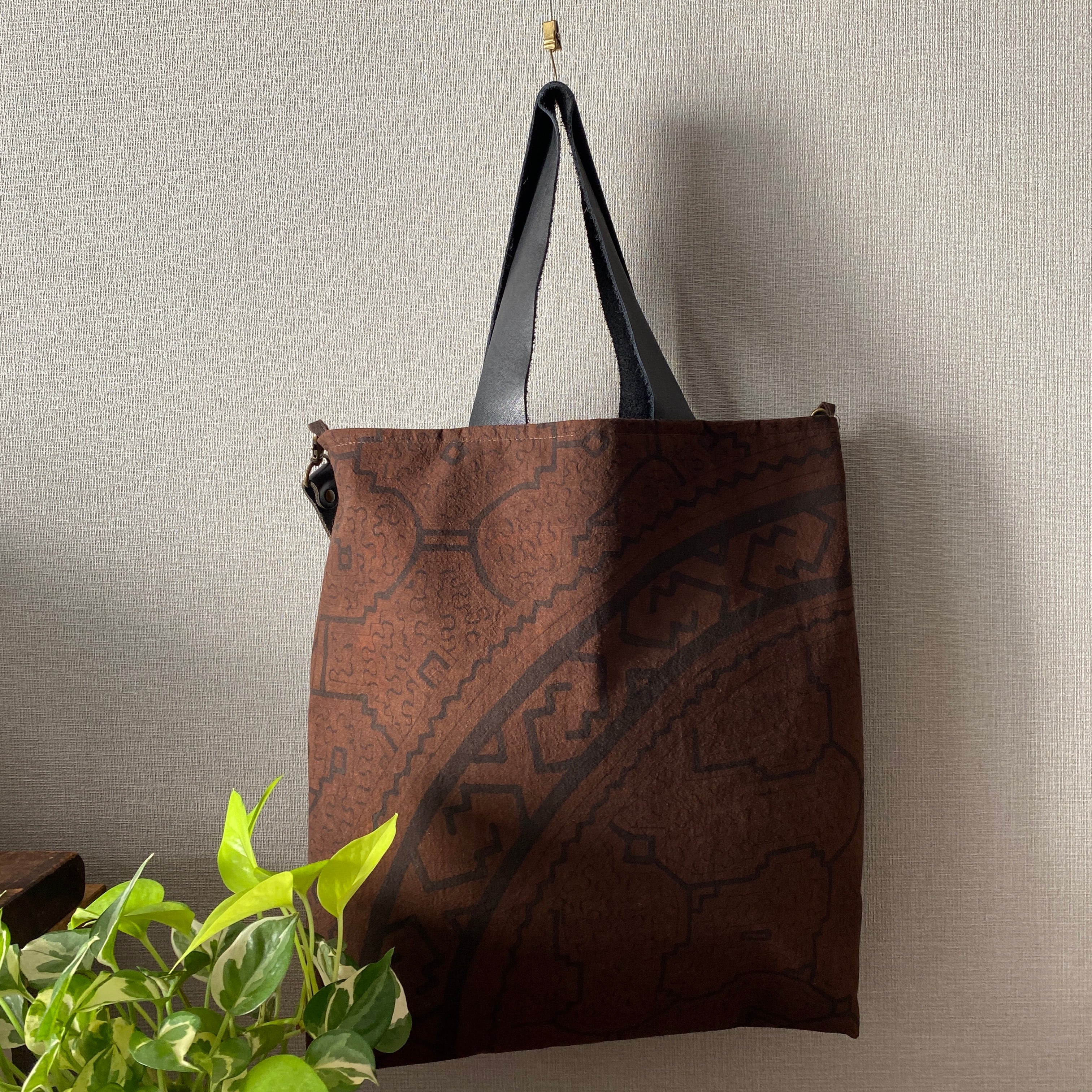 Bag22 焦茶隠れ模様大型バッグ クッションサイズ 柔らかい革の持ち手