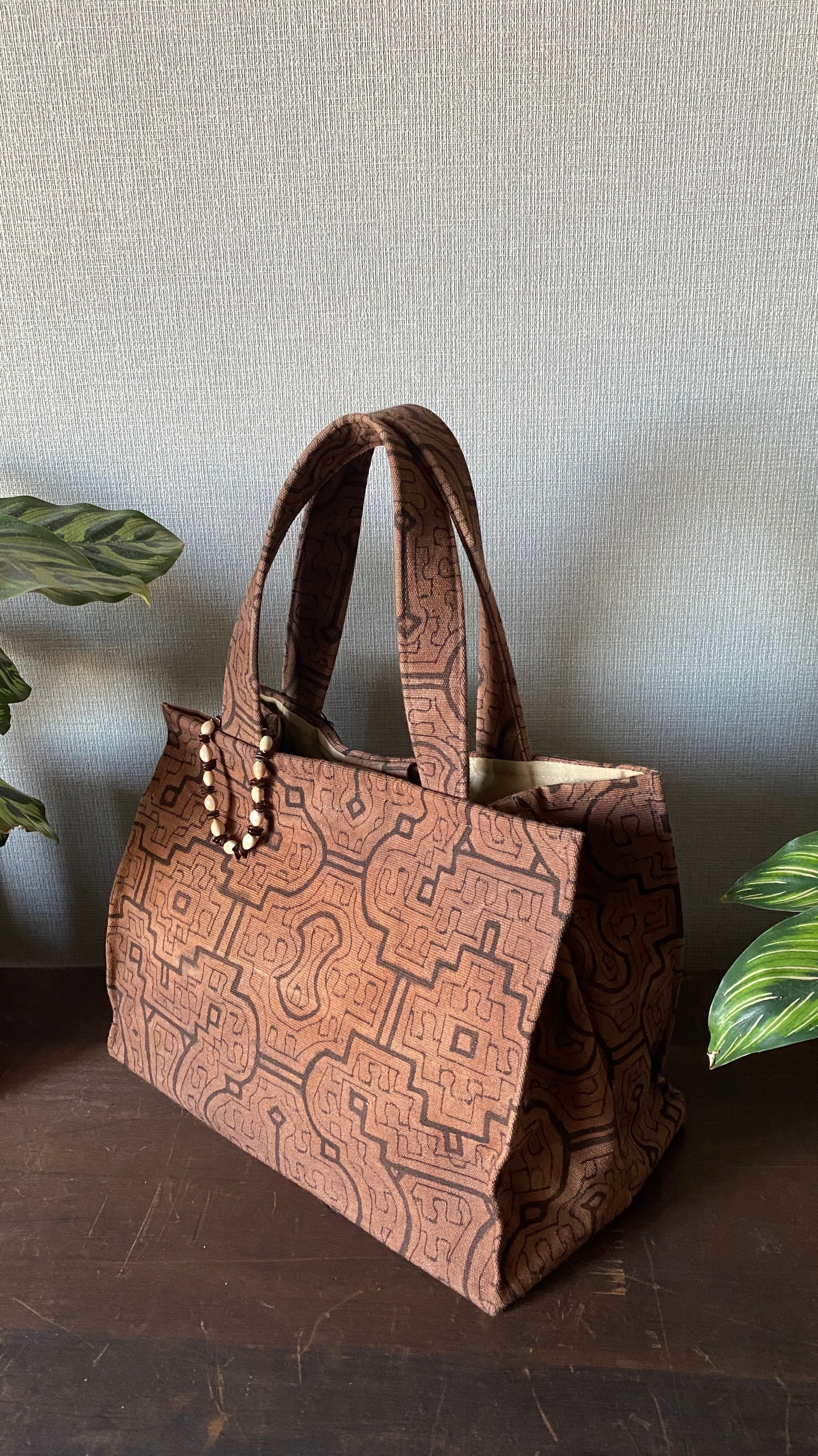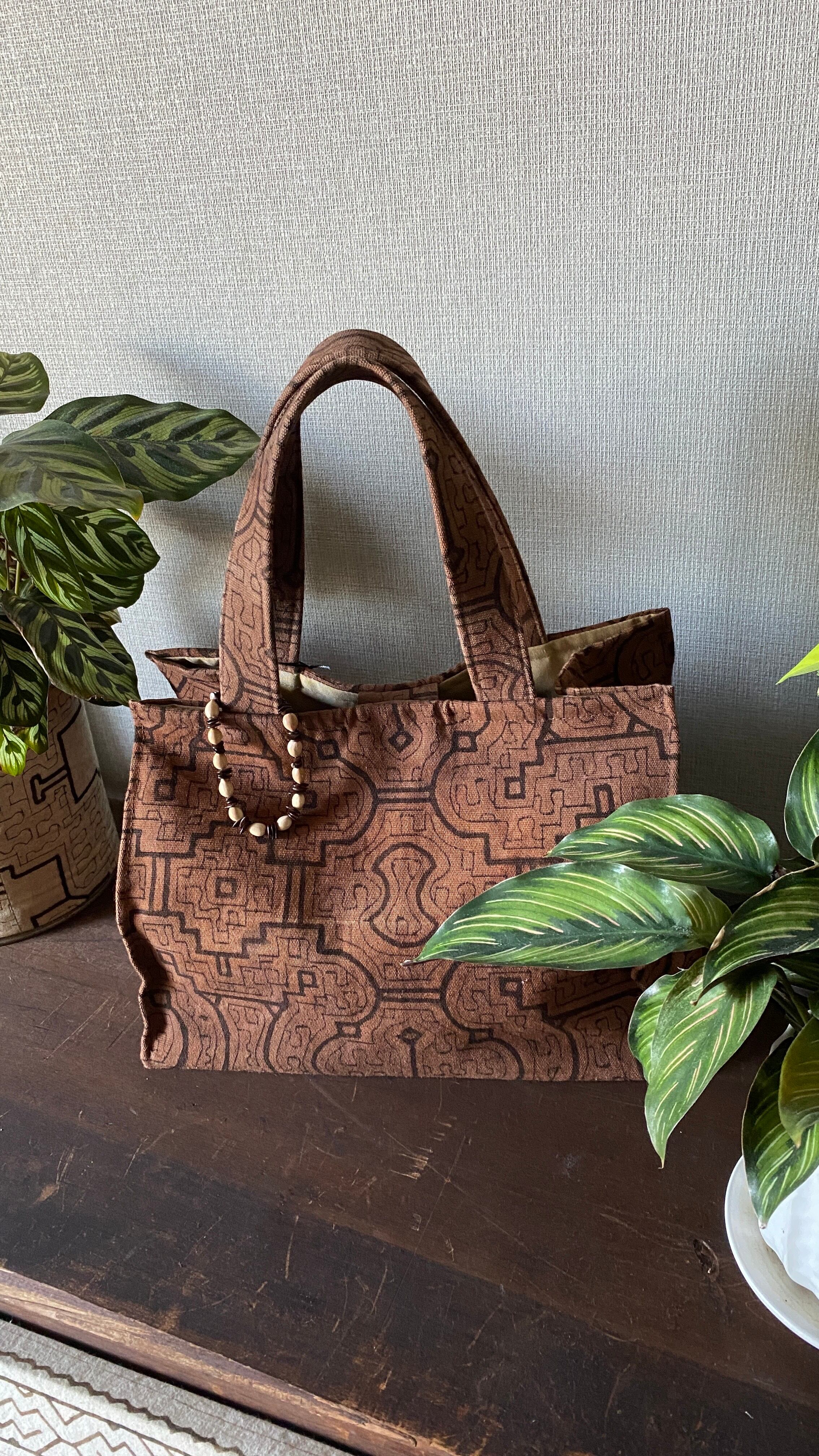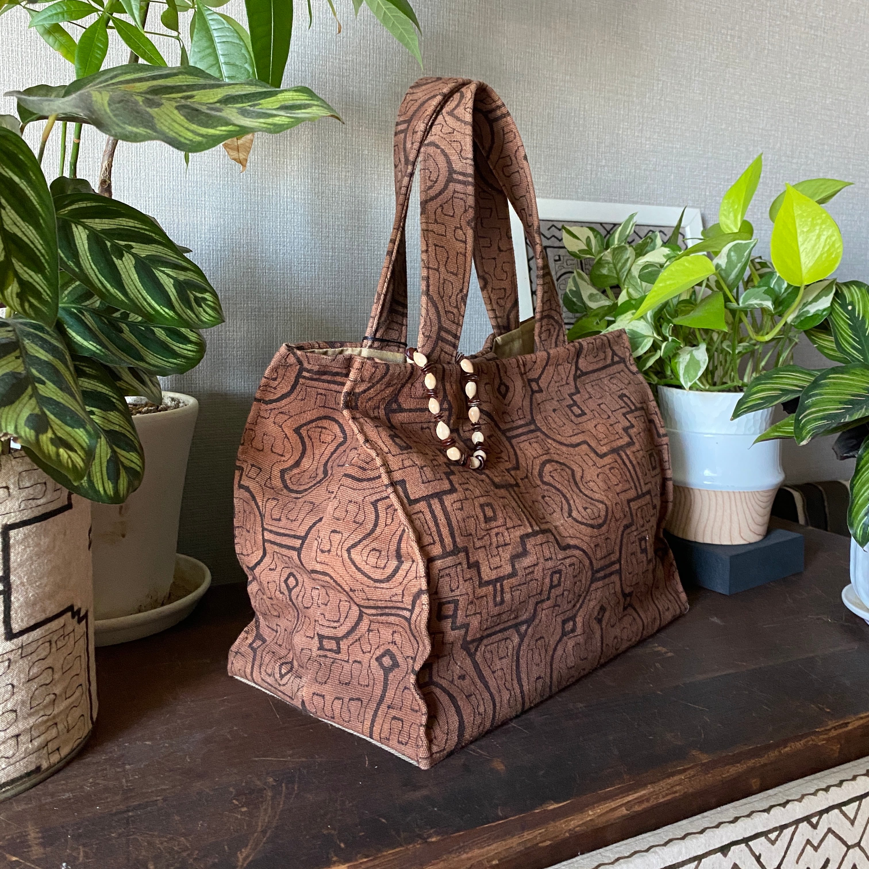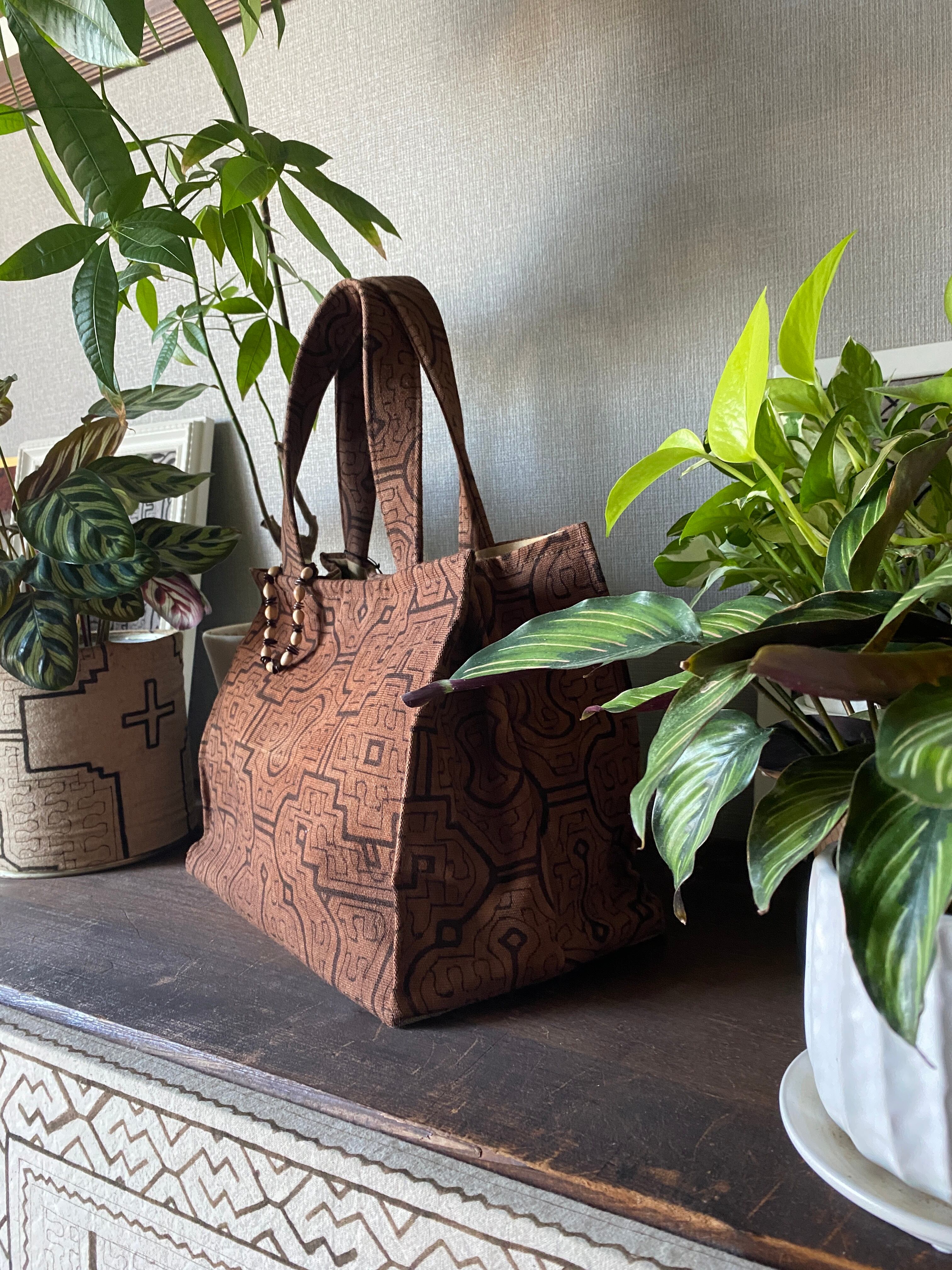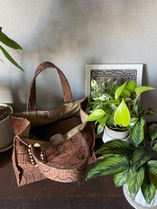 しっかりした素材ですがフニャッとしているので、箱を入れたり厚みのあるもの重いものを持ち歩くために活躍しそう。持ち手がしっかりしていることも特徴です。材料がかなりレア