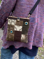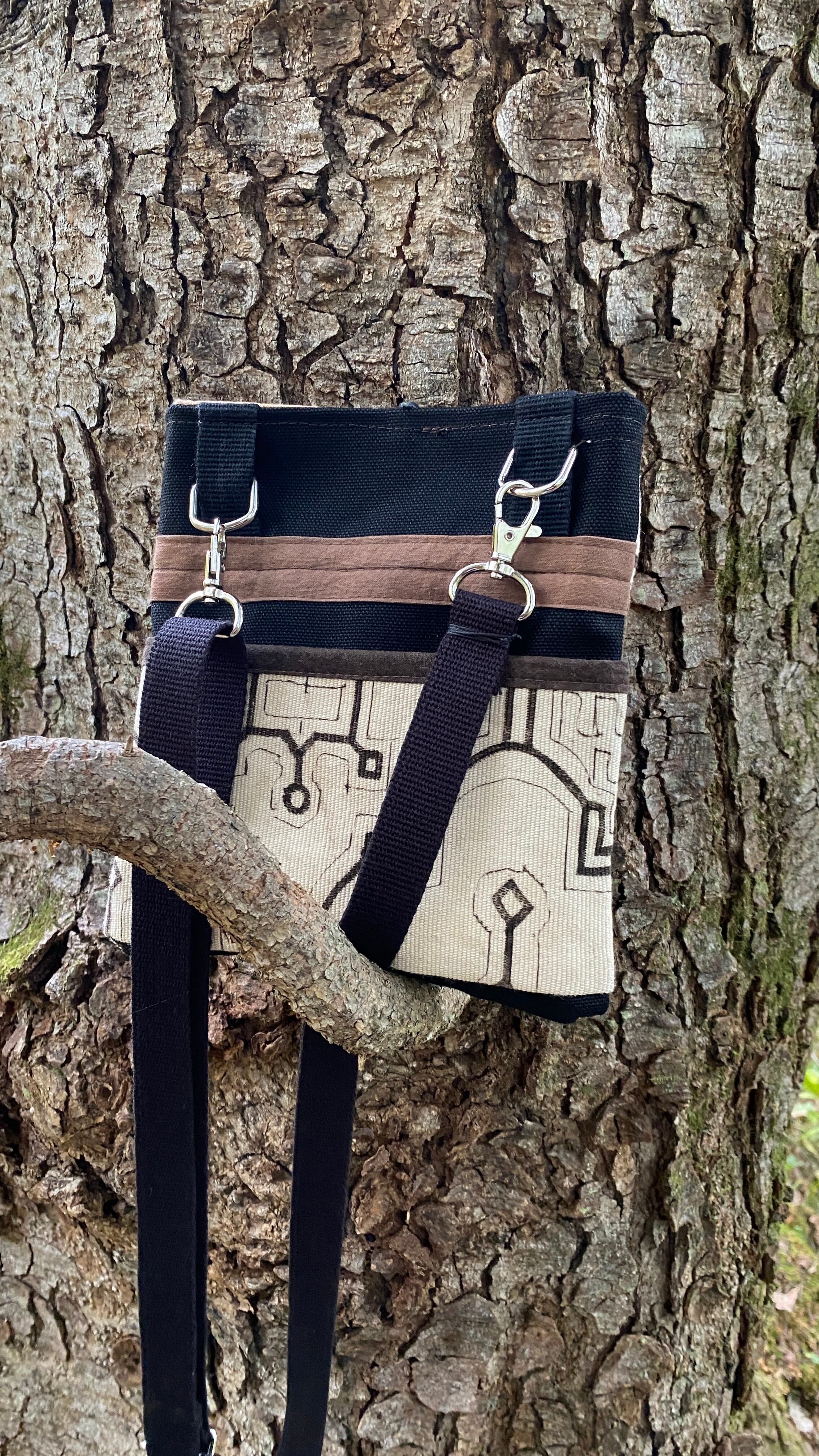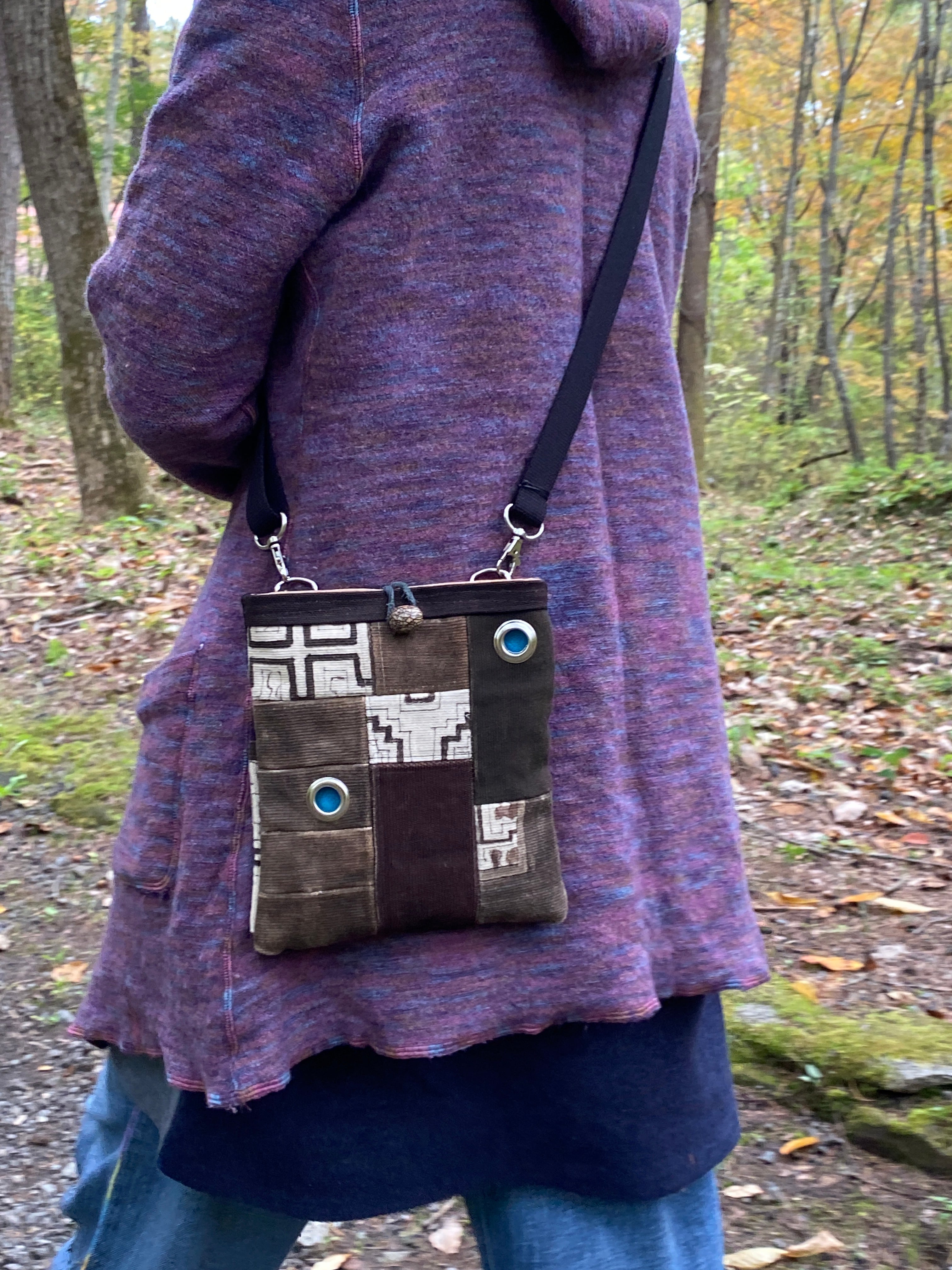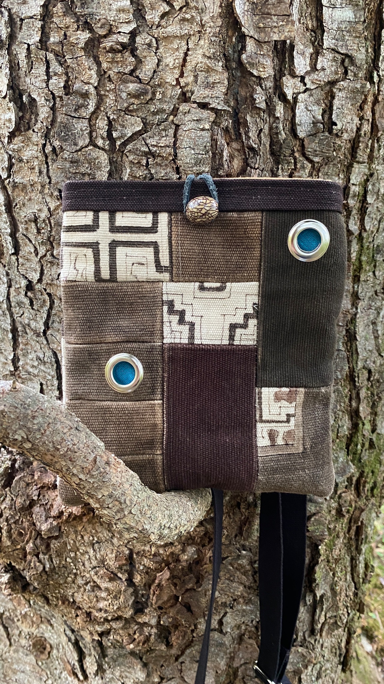 泥染め帆布パッチワークのポシェット シピボ族の泥染め