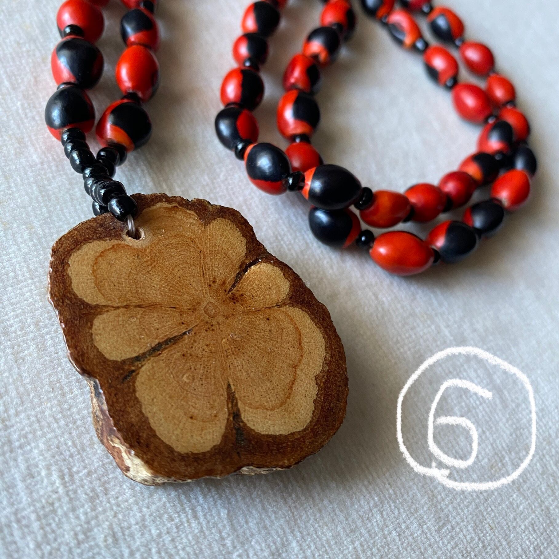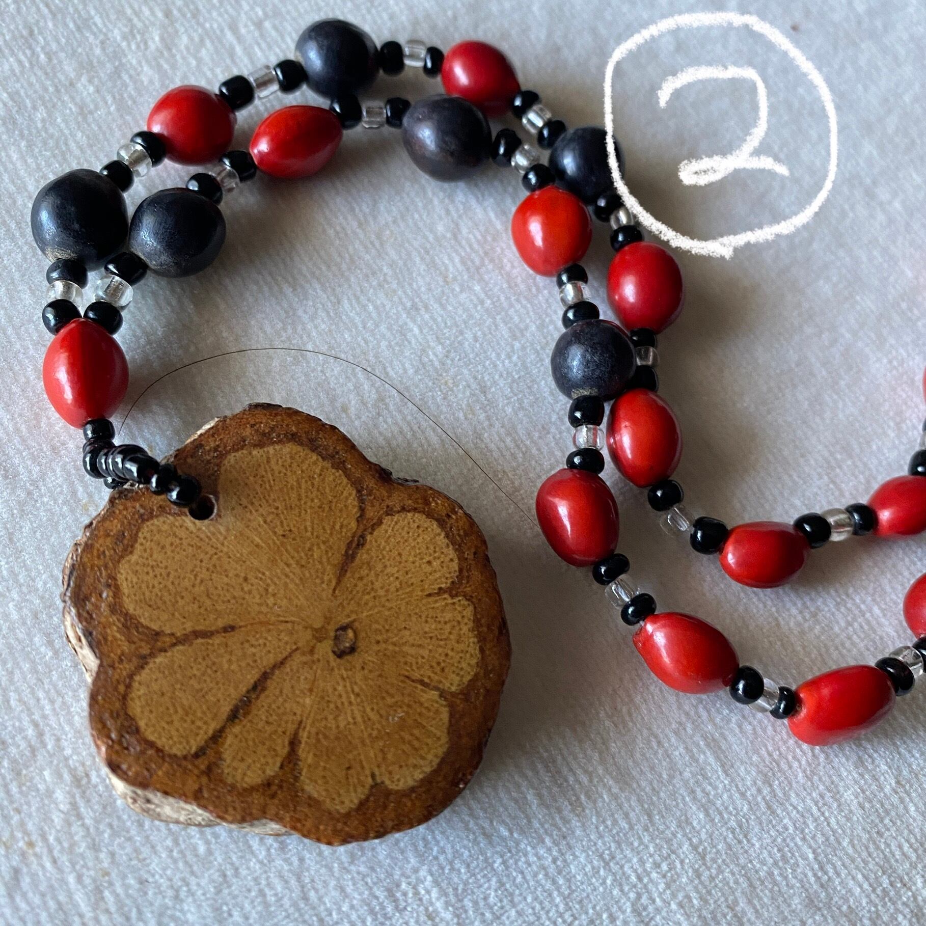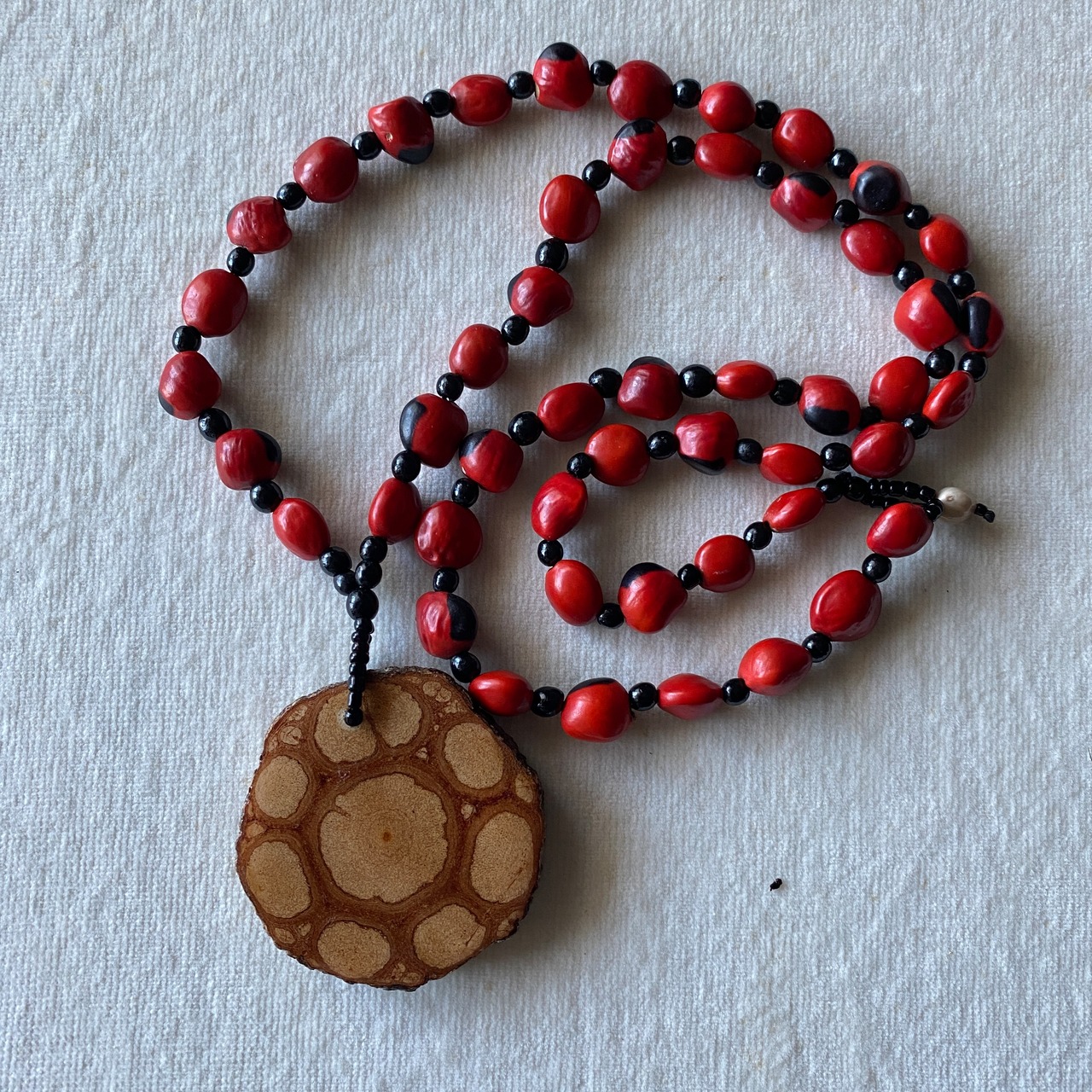 惜しみなく木の実を使った贅沢なネックレスで、シピボ族が作るアクセサリーらしい素朴さが魅力です。