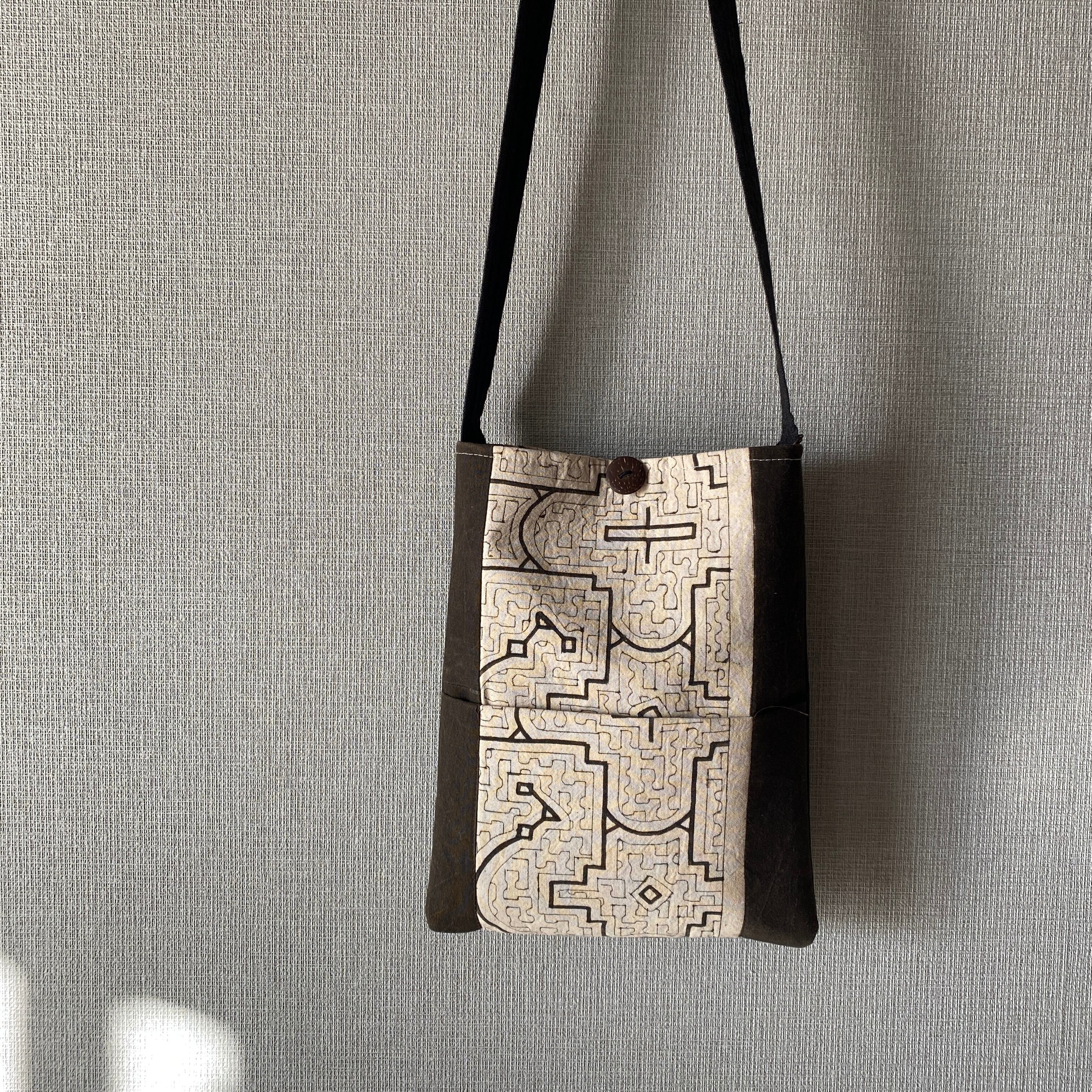 Pos25 ポシェット サイド黒で白シピボ模様ポケット付き 21x26cm