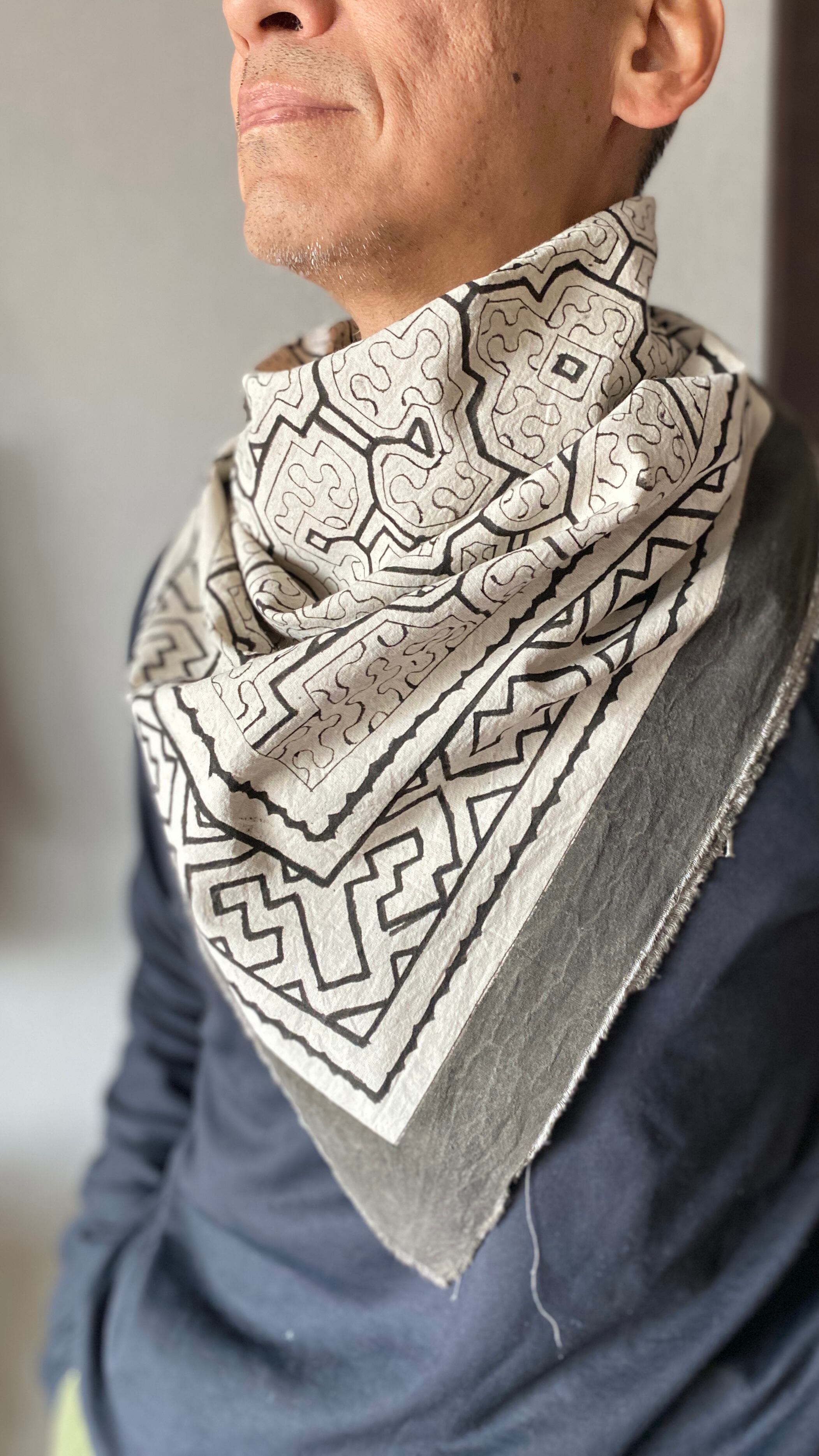 中型白90-1 シンプル 90x86cm シピボ族の泥染め布 93x93 shipibo 草木染め タペストリ 世界の民藝 エスニック布 | アマゾン屋 シピボ族の泥染めとバッグと雑貨