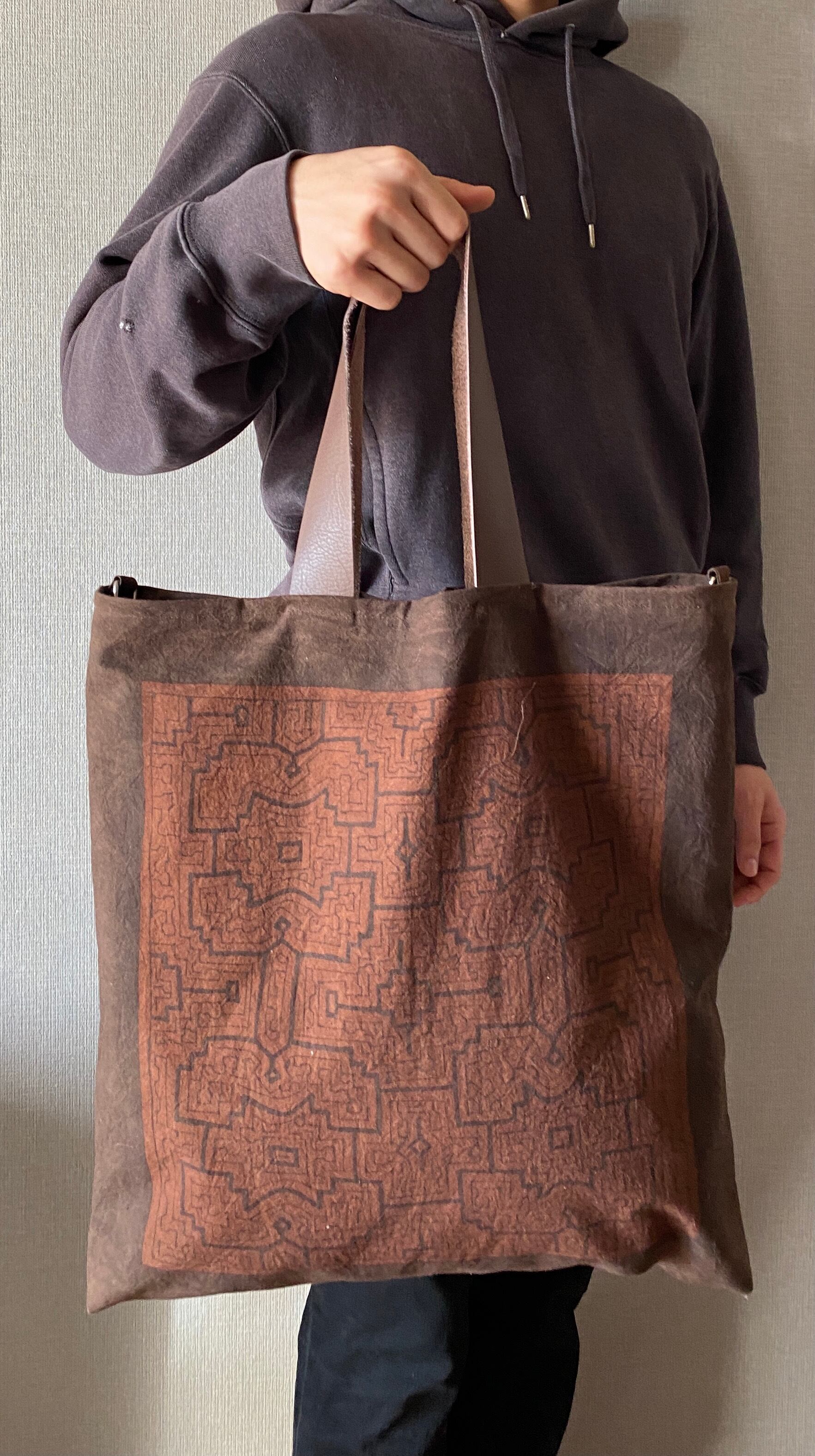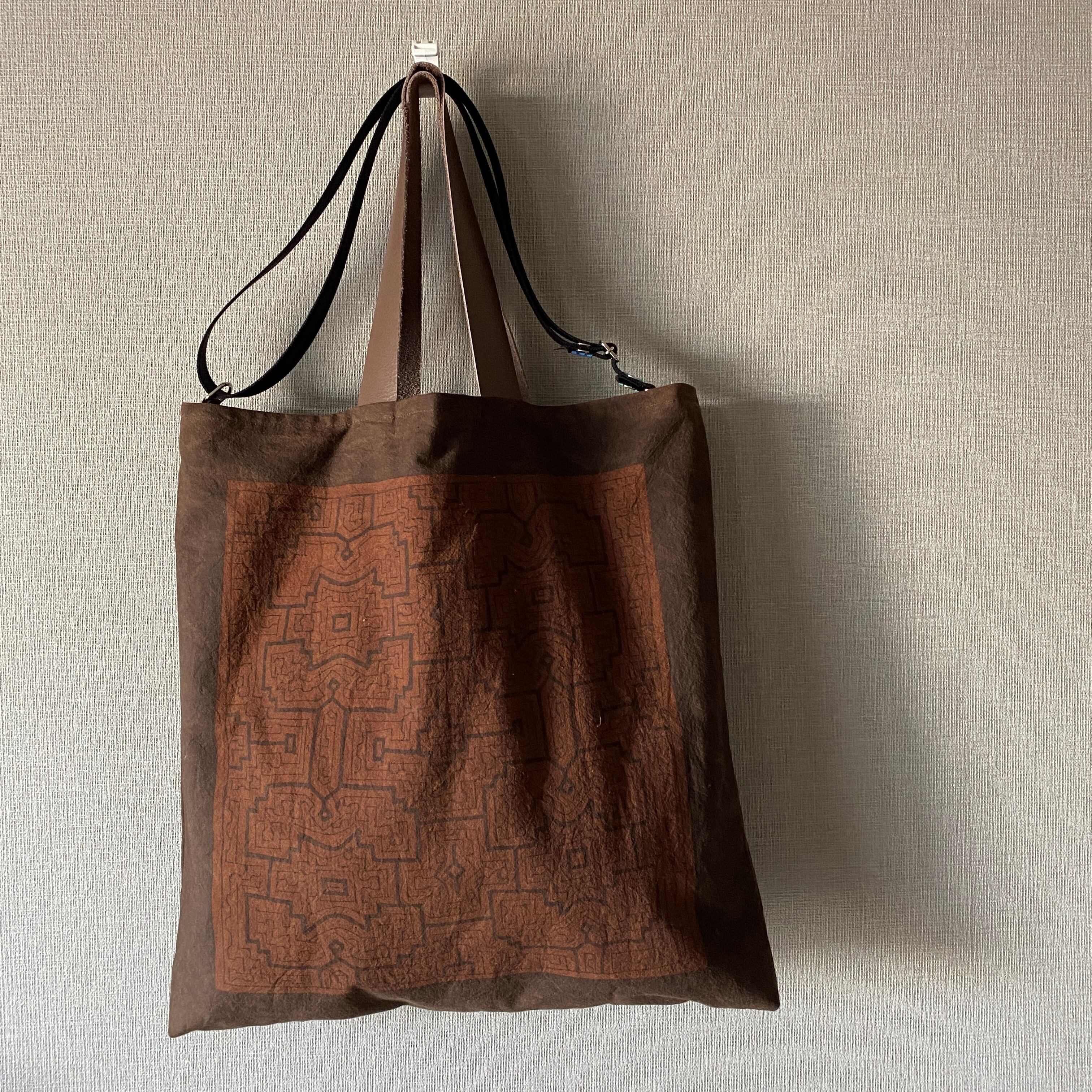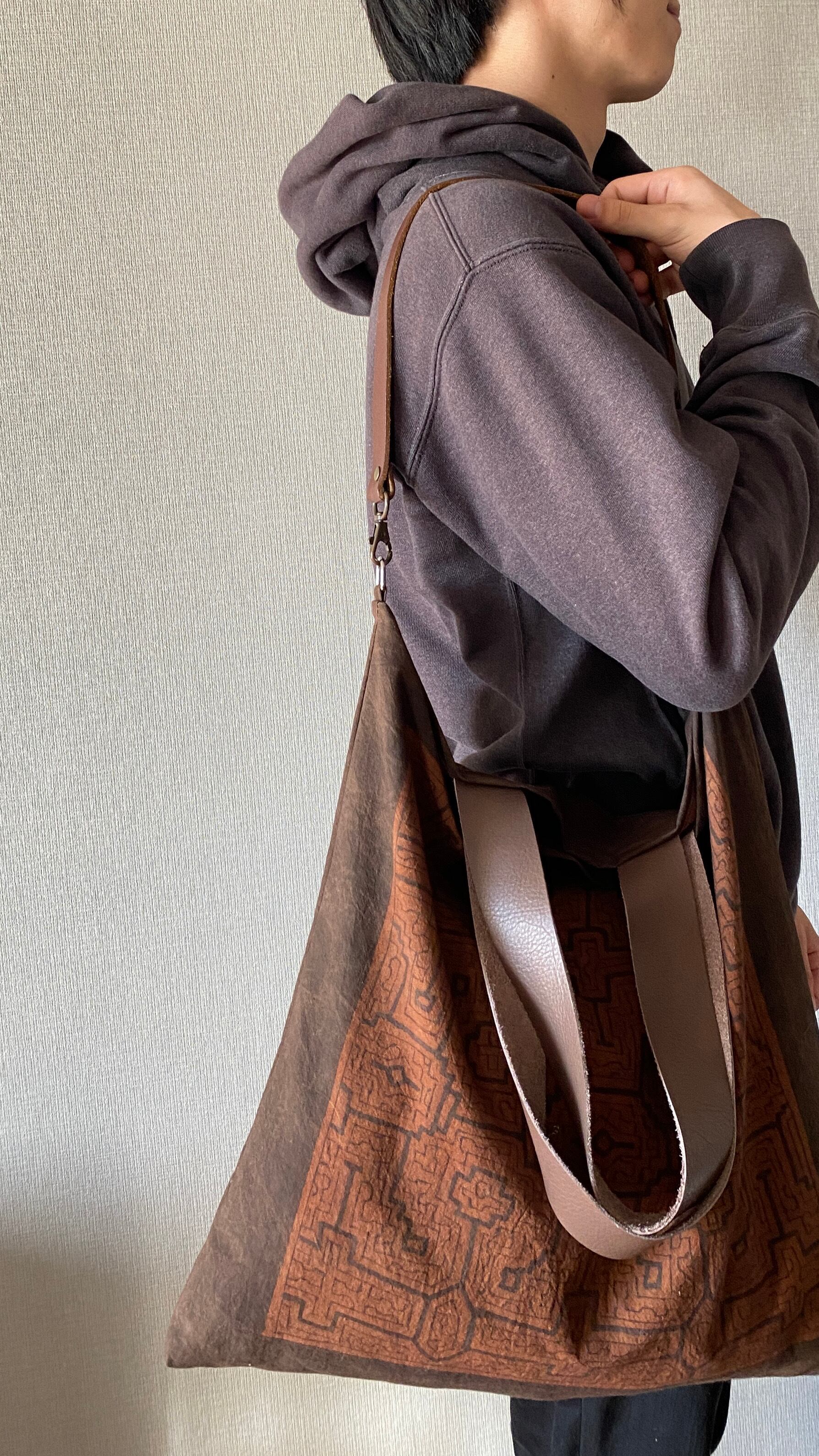 ショルダーは黒地コットンテープ細めで長さ調整できる斜めがけ用か、革の市販ショルダーかのどちらか選べます。
