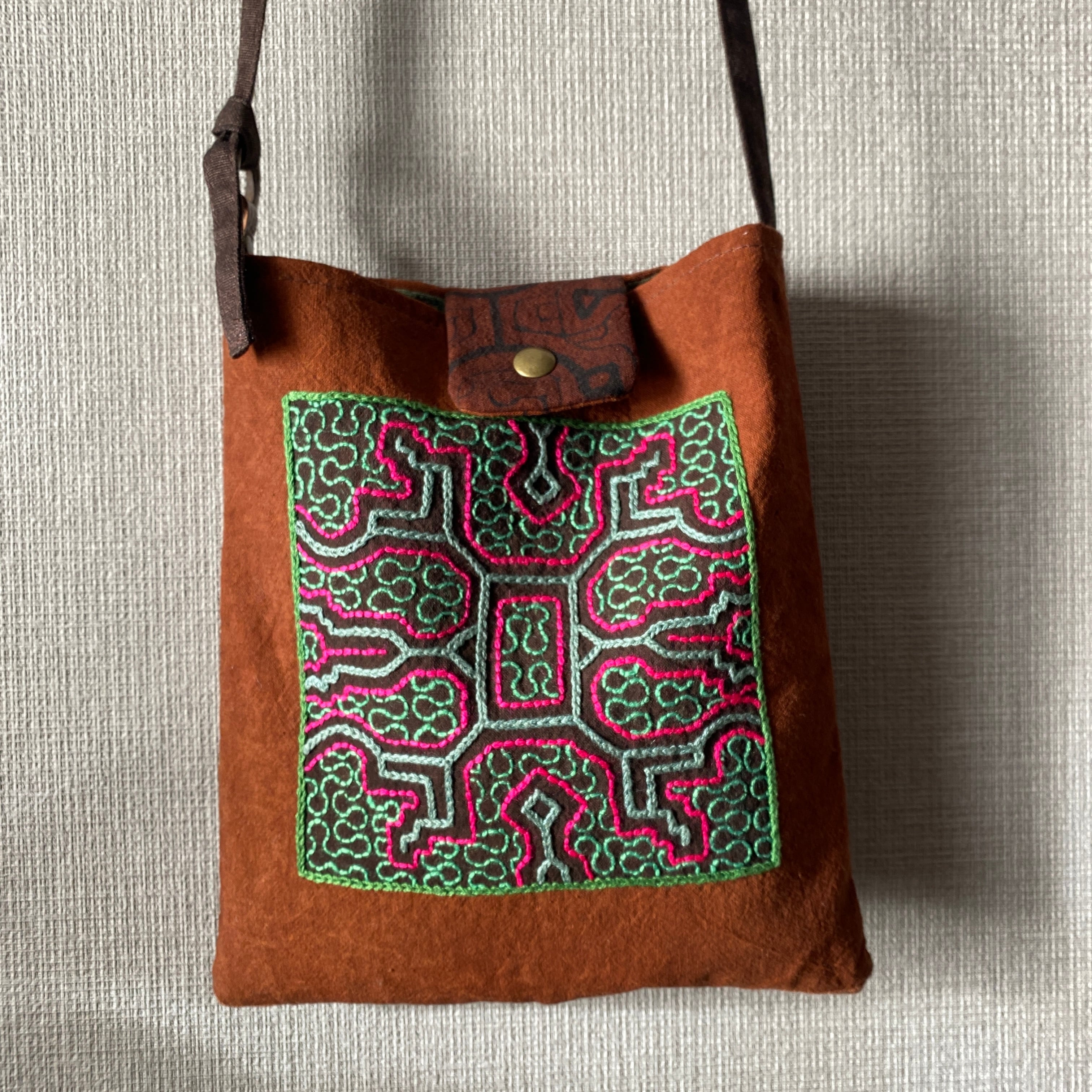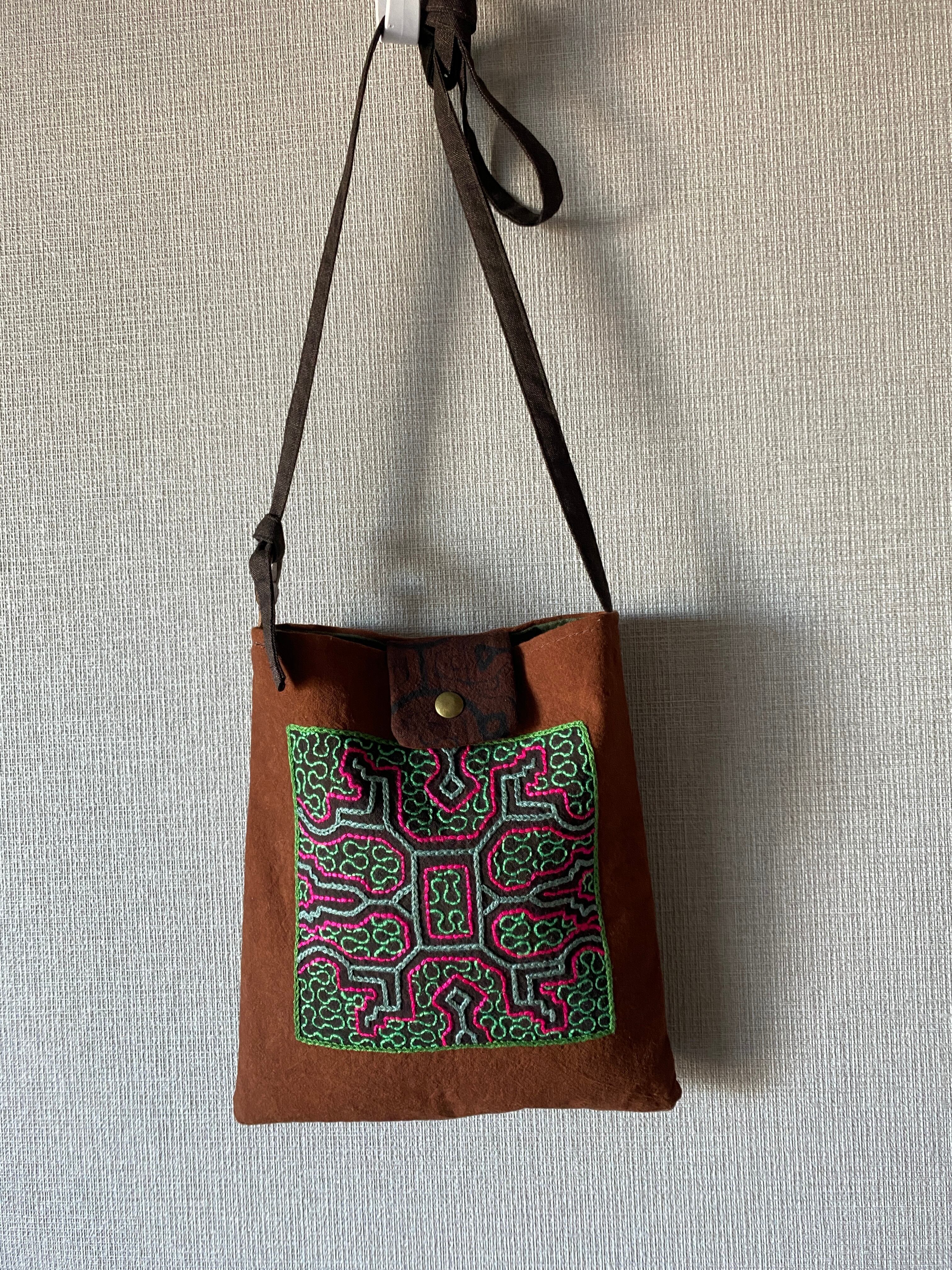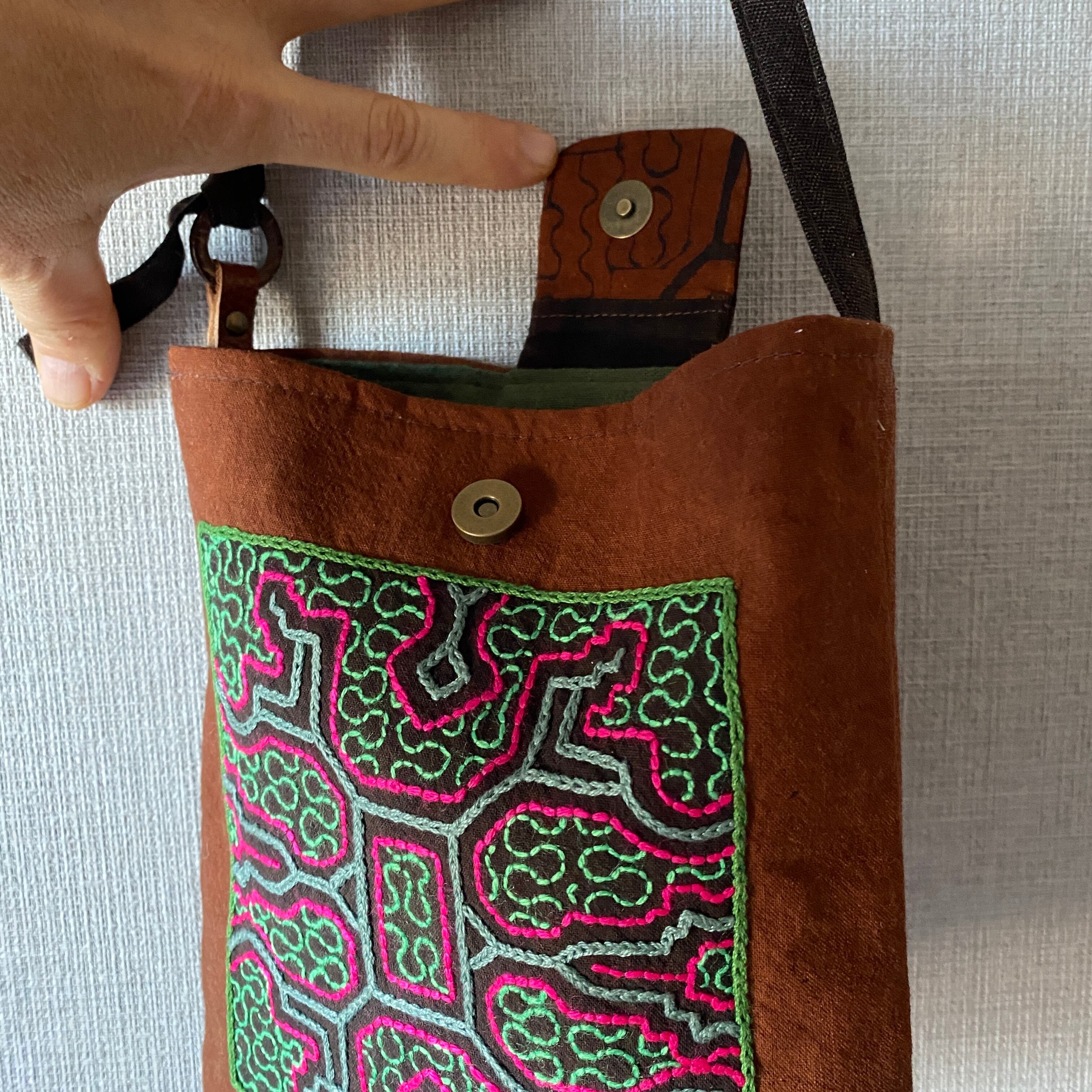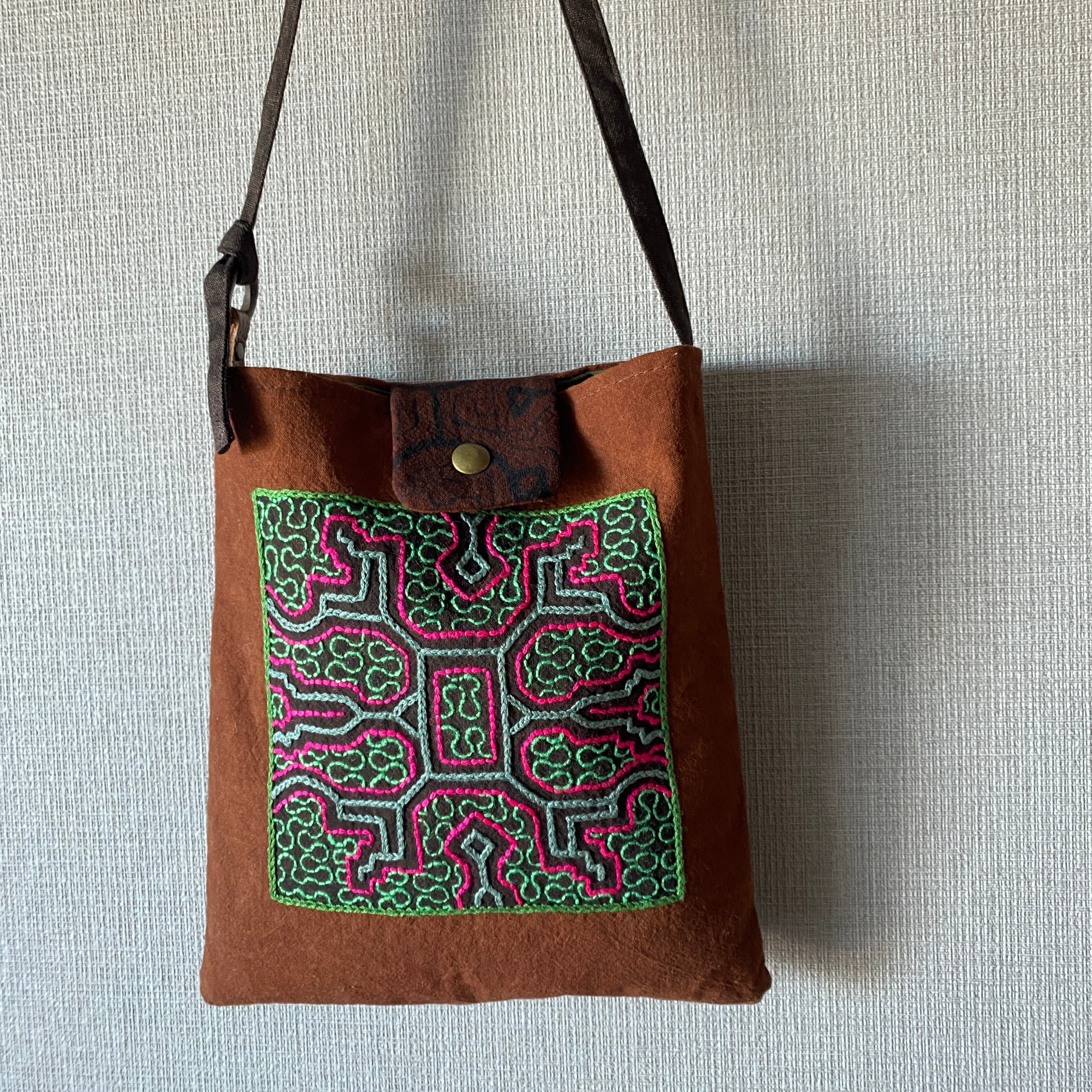 ゴージャス刺繍のポシェット 緑とピンク マグネットホック付き | アマゾン屋 シピボ族の泥染めとバッグと雑貨
