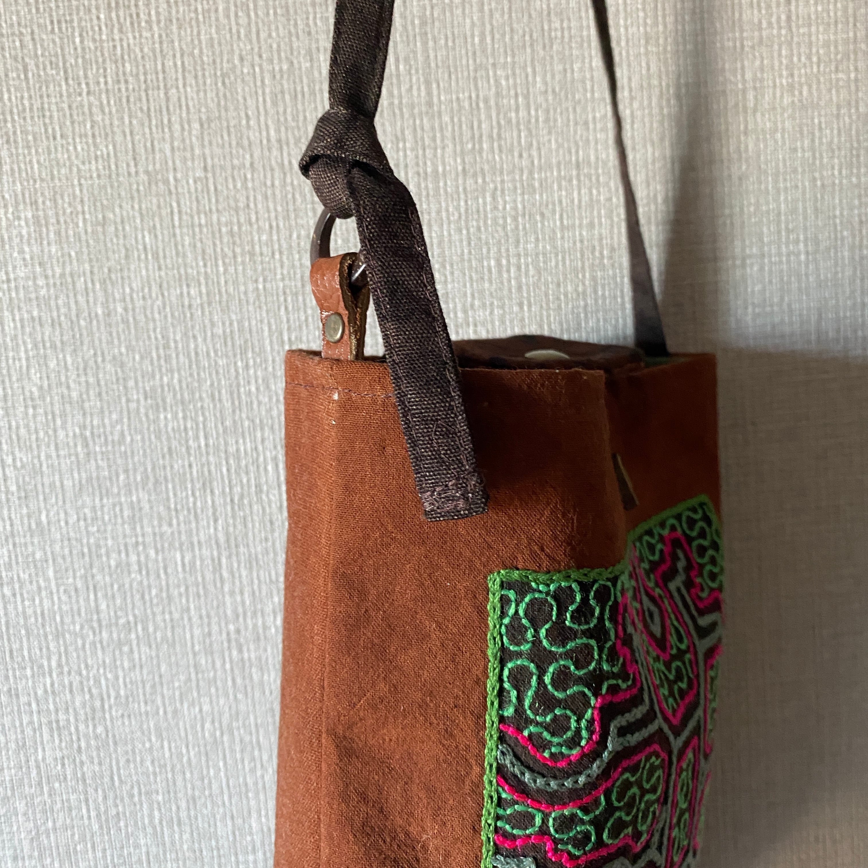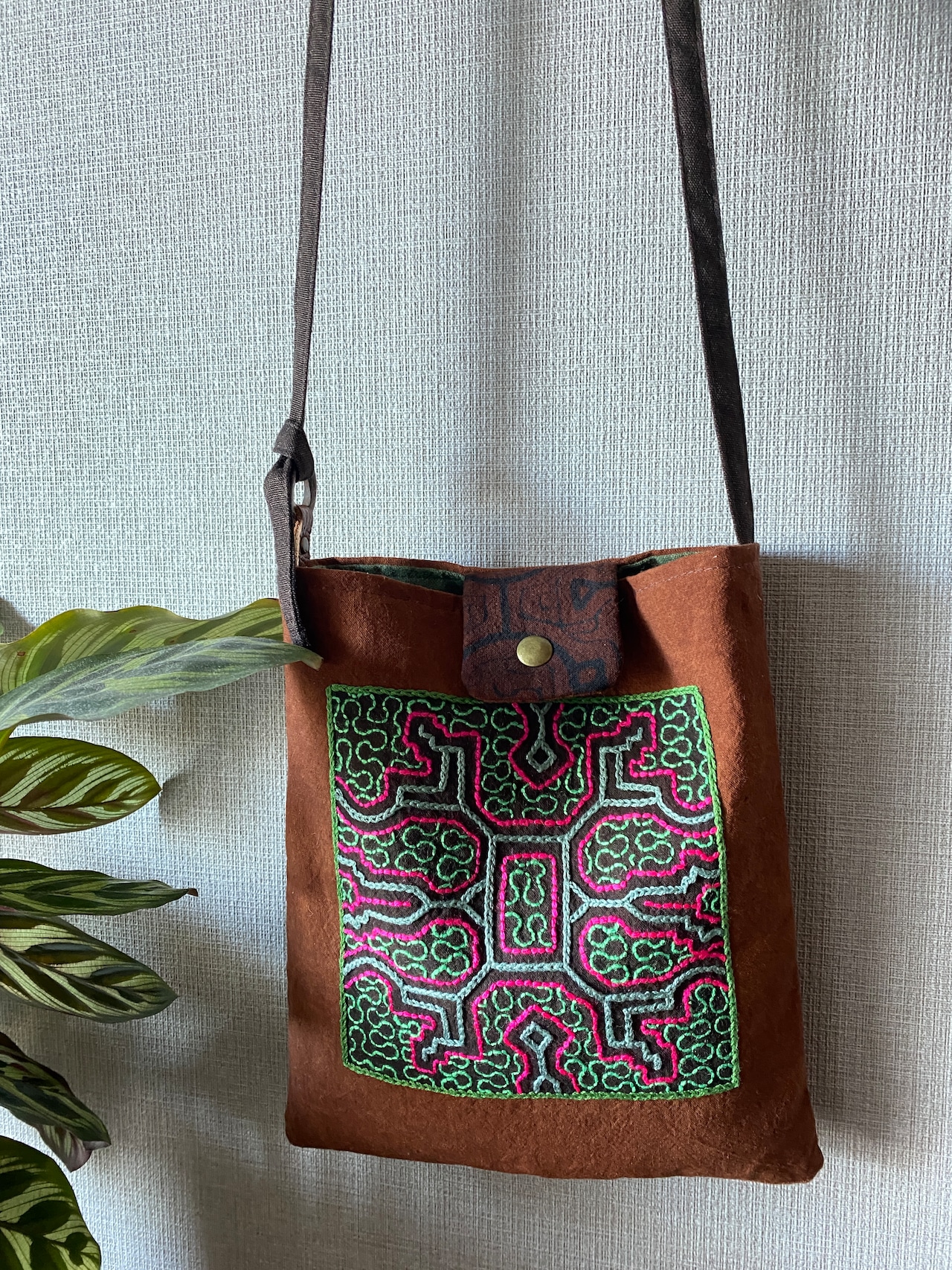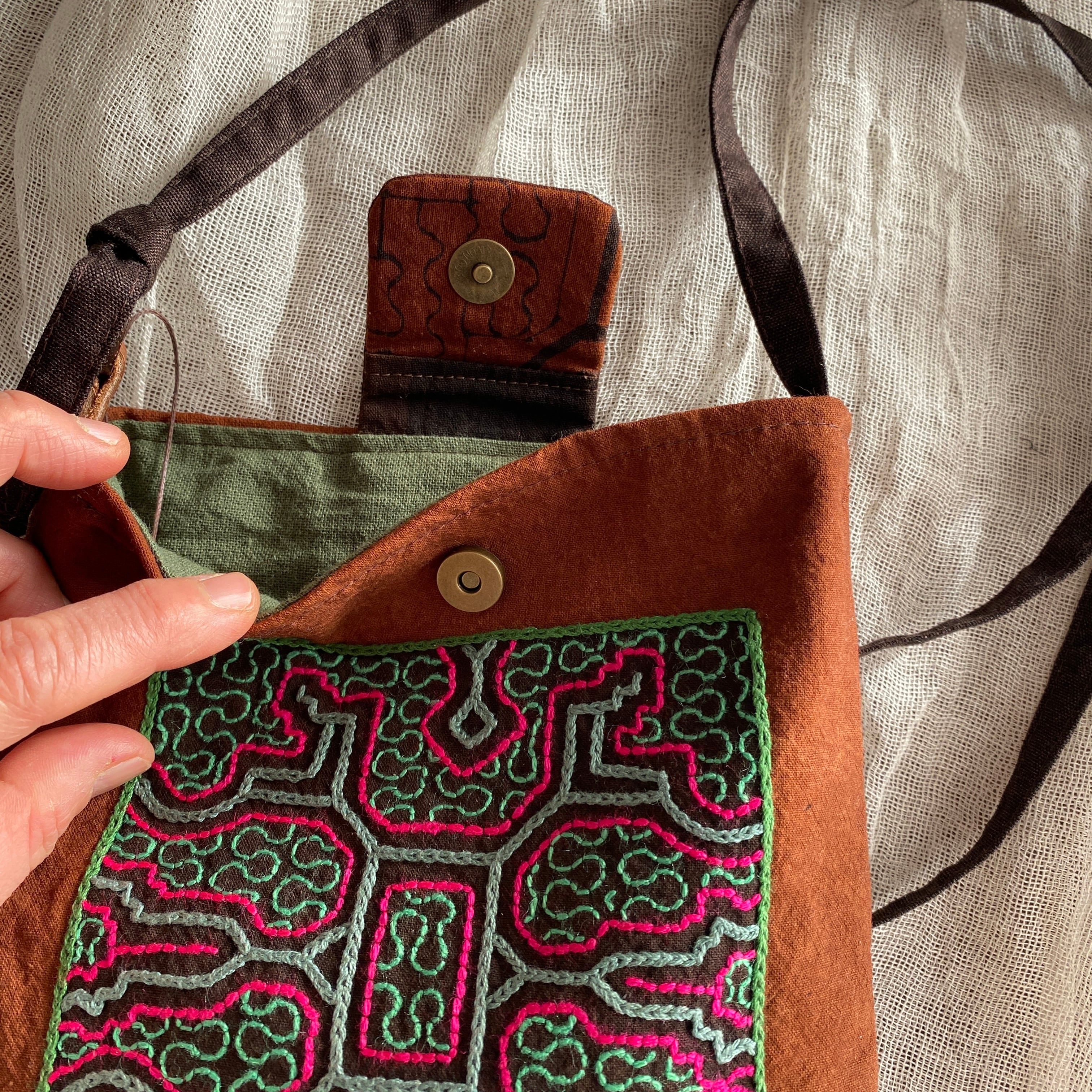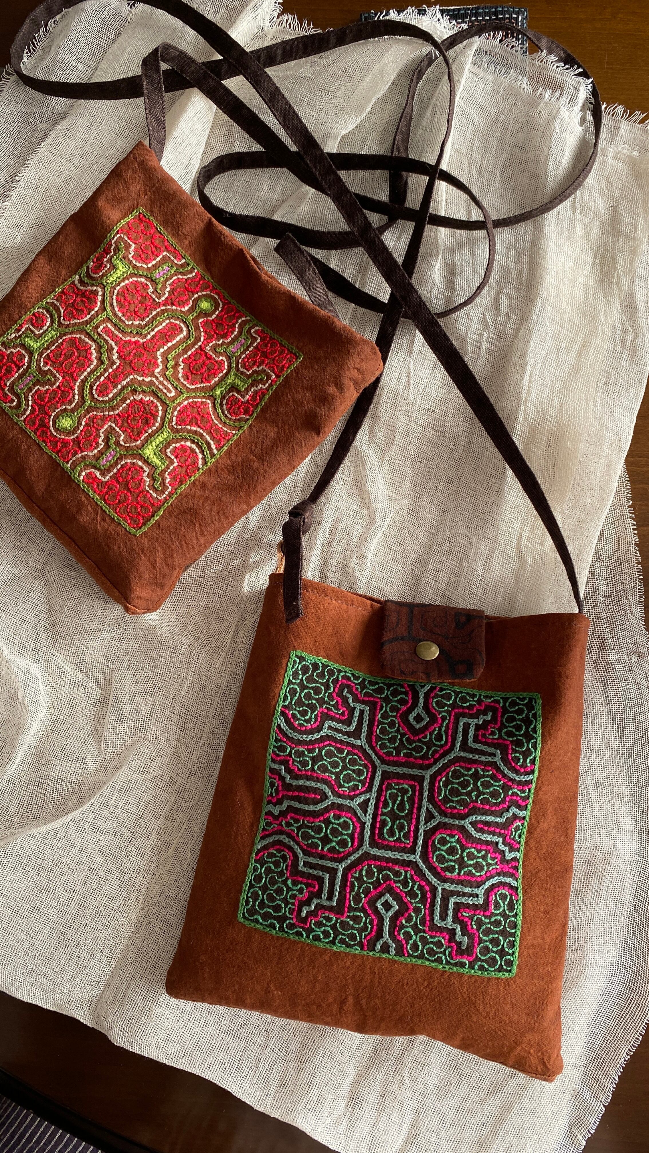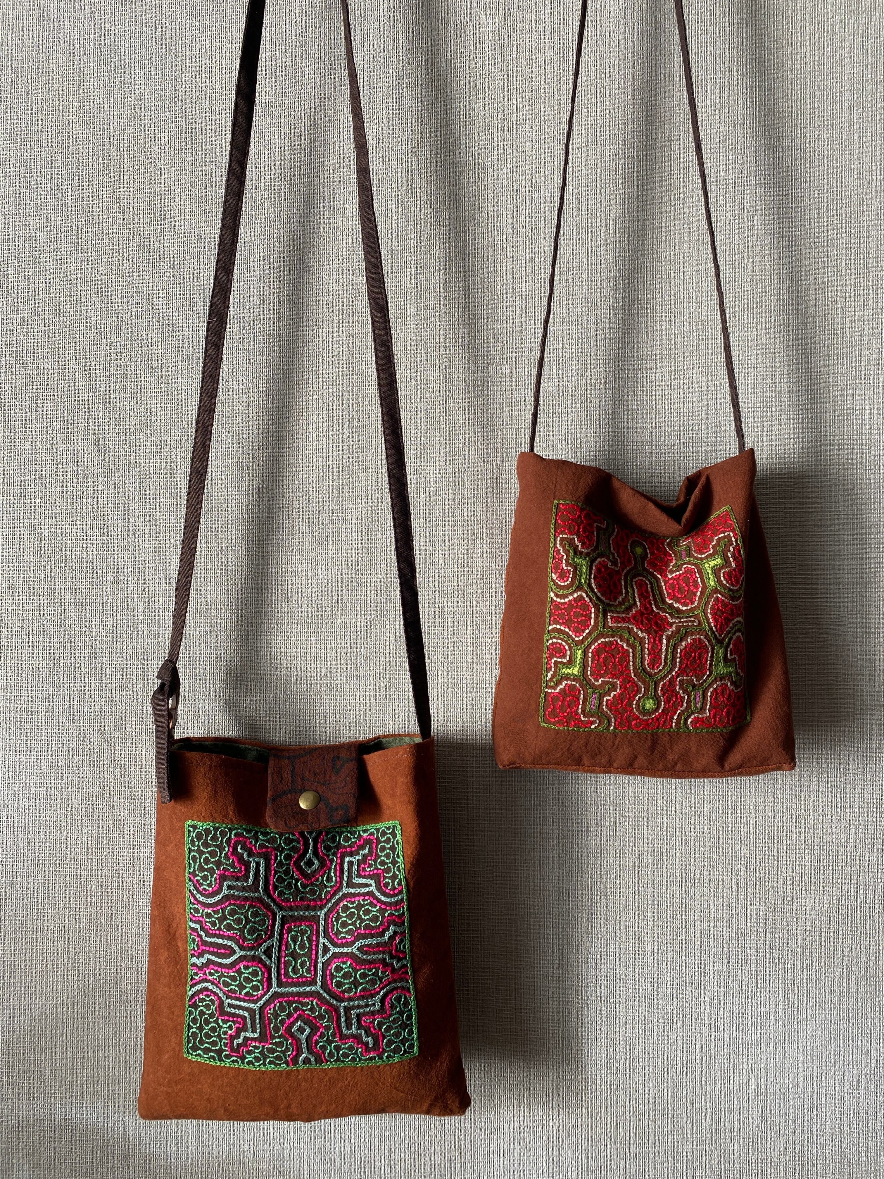 ゴージャス刺繍のポシェット 緑とピンク マグネットホック付き | アマゾン屋 シピボ族の泥染めとバッグと雑貨