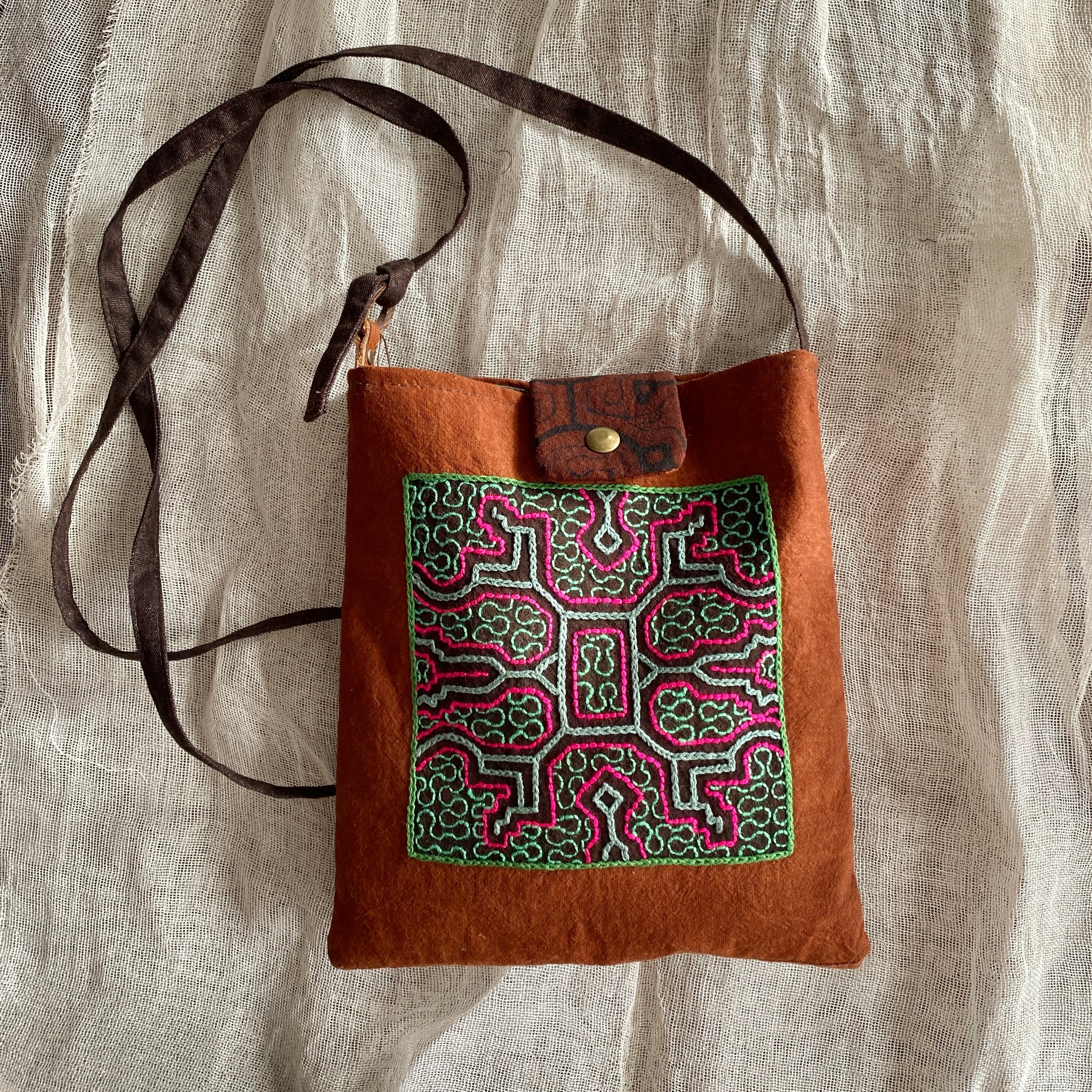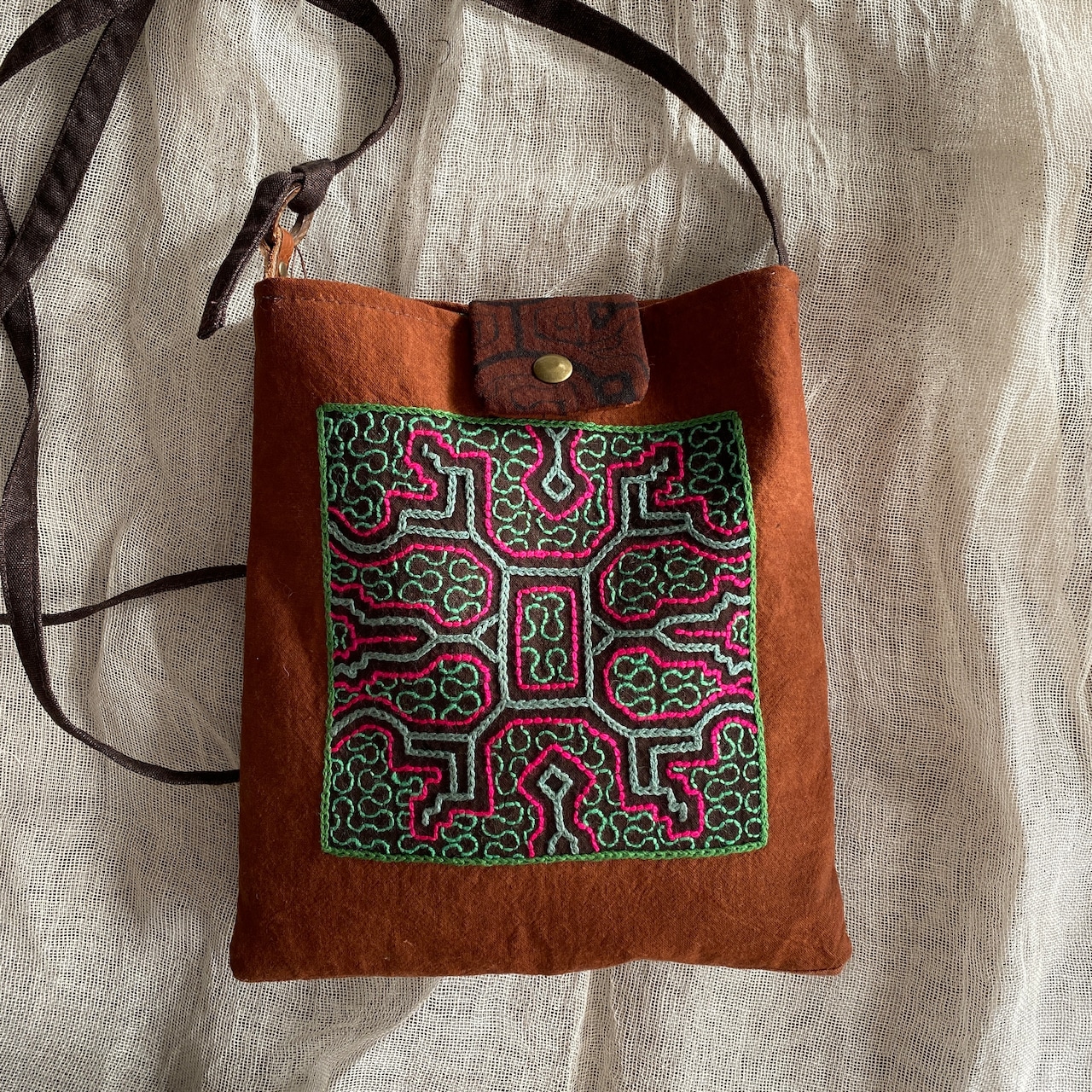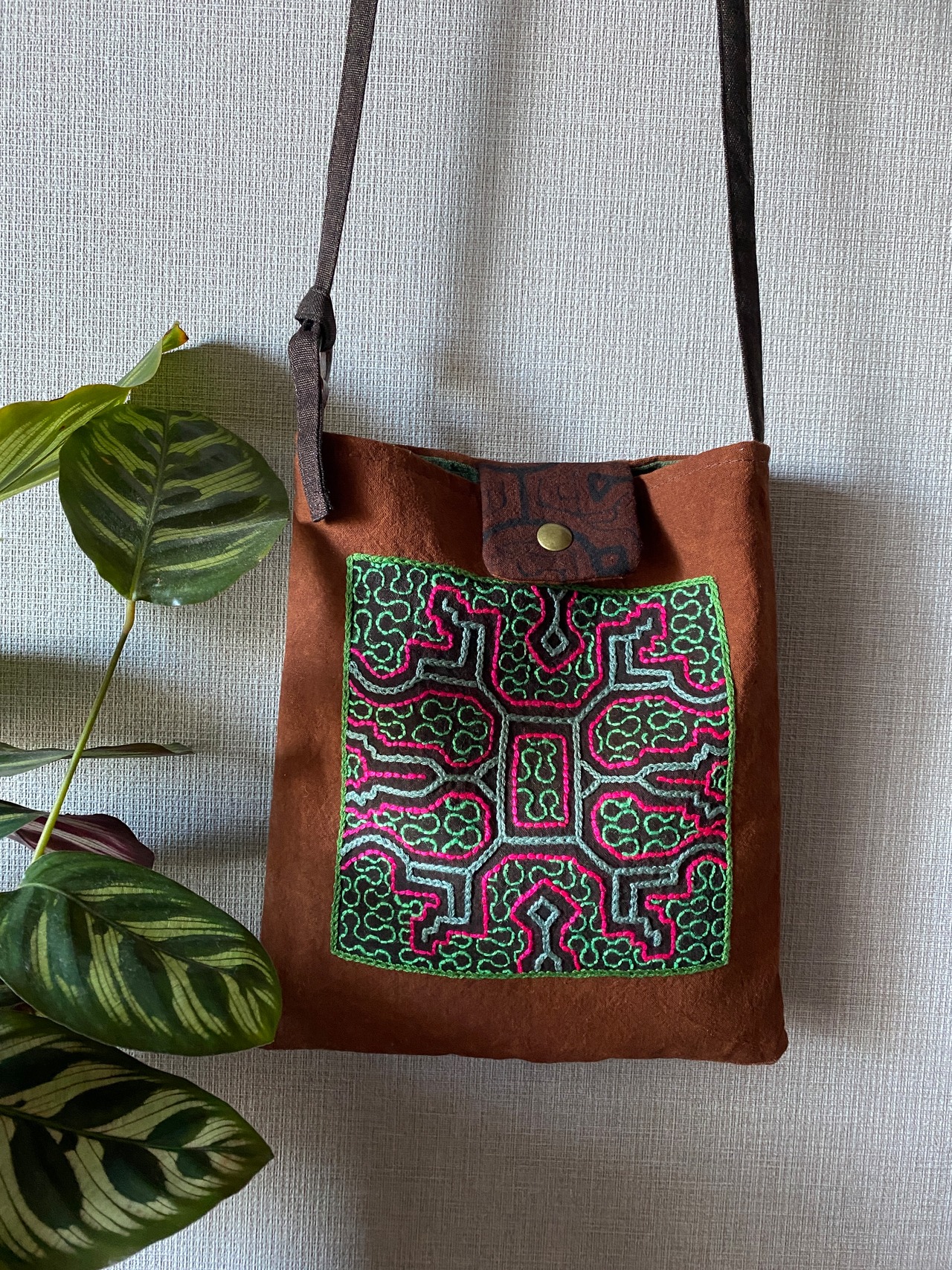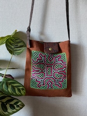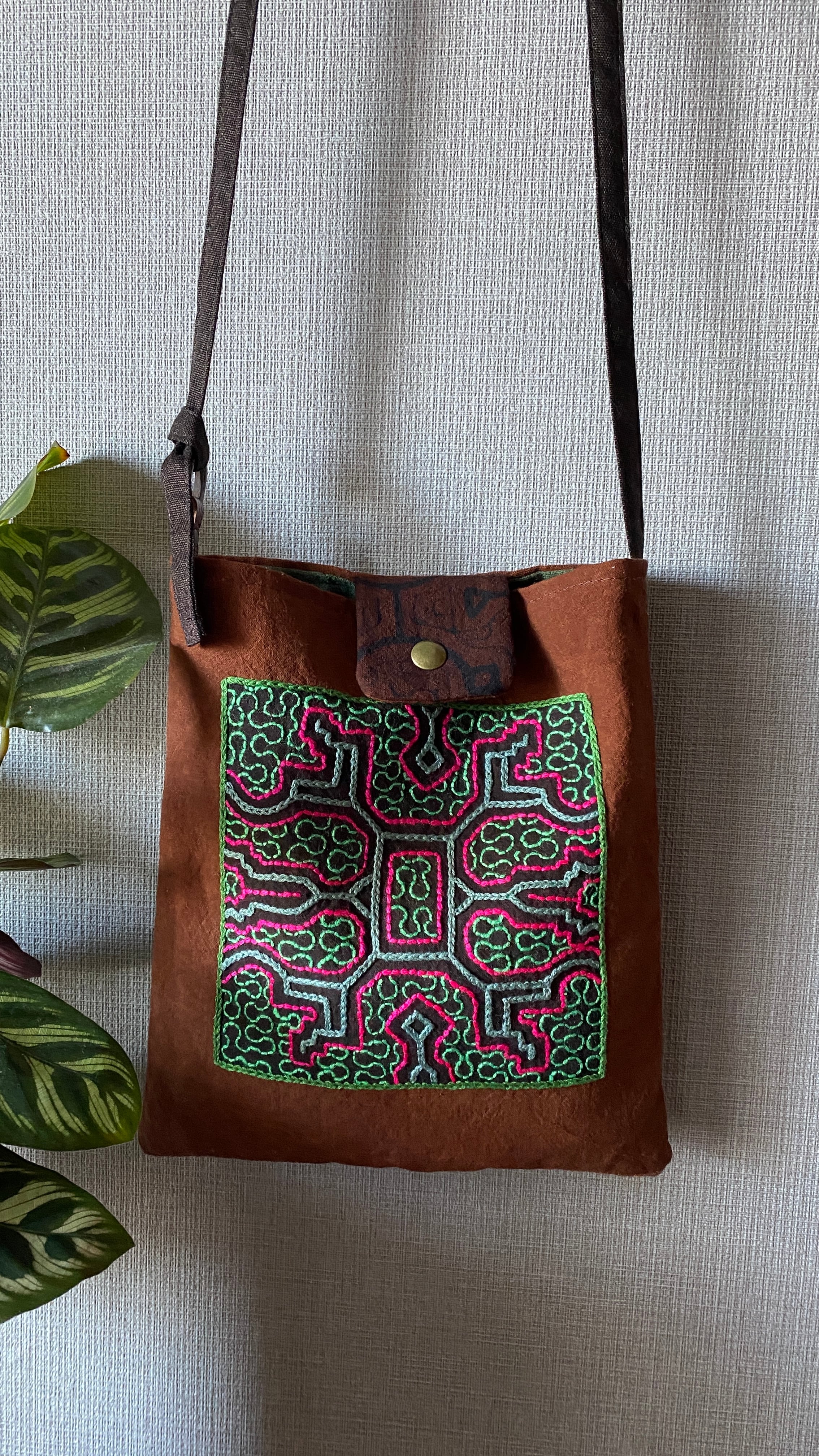 ゴージャス刺繍のポシェット 緑とピンク マグネットホック付き | アマゾン屋 シピボ族の泥染めとバッグと雑貨