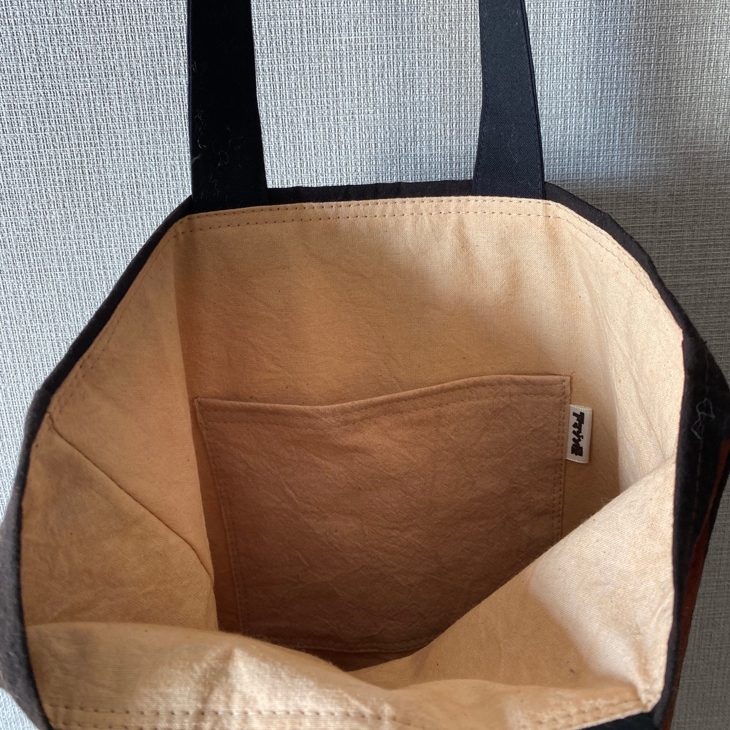 しっかりした素材感はありますが芯をいれていない布バッグ、しなやかで柔らかいタイプです。B4がすっぽりたっぷり入るので大きめの書類を持ち歩く方にもおすすめです。
