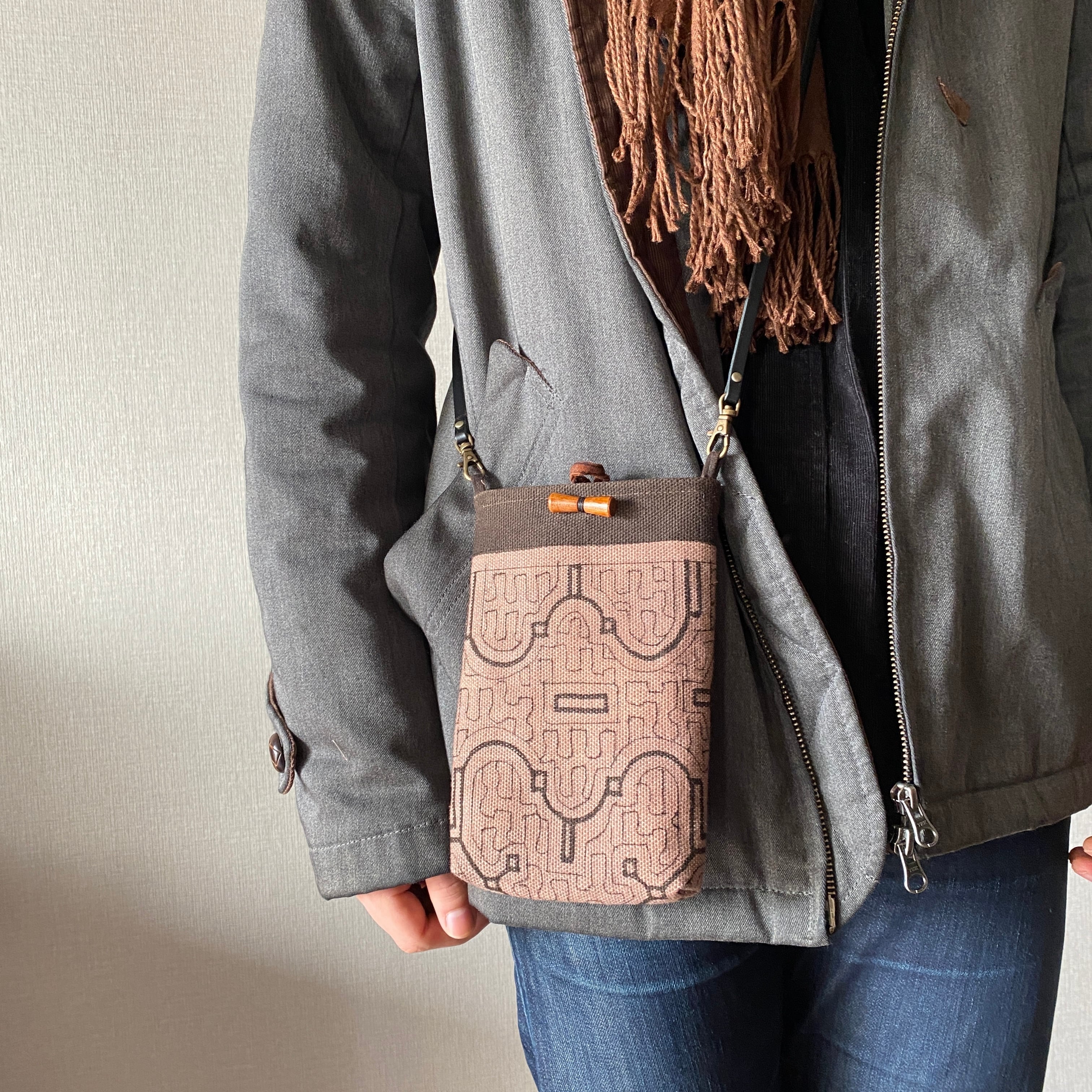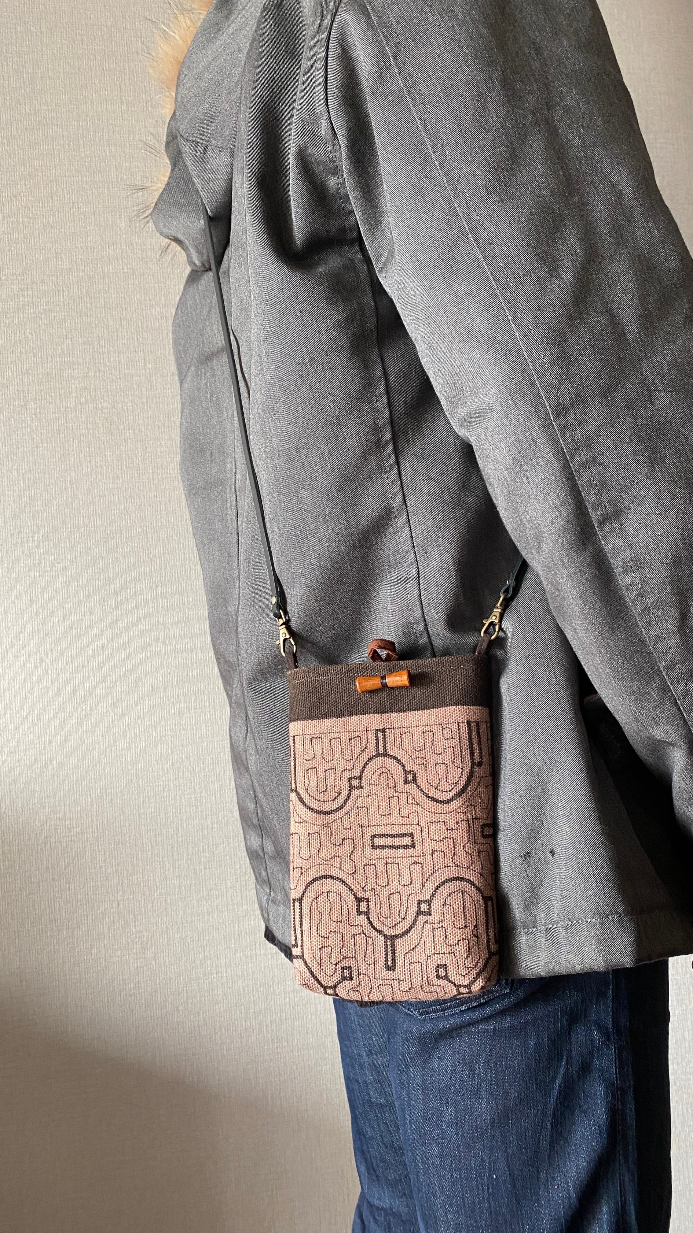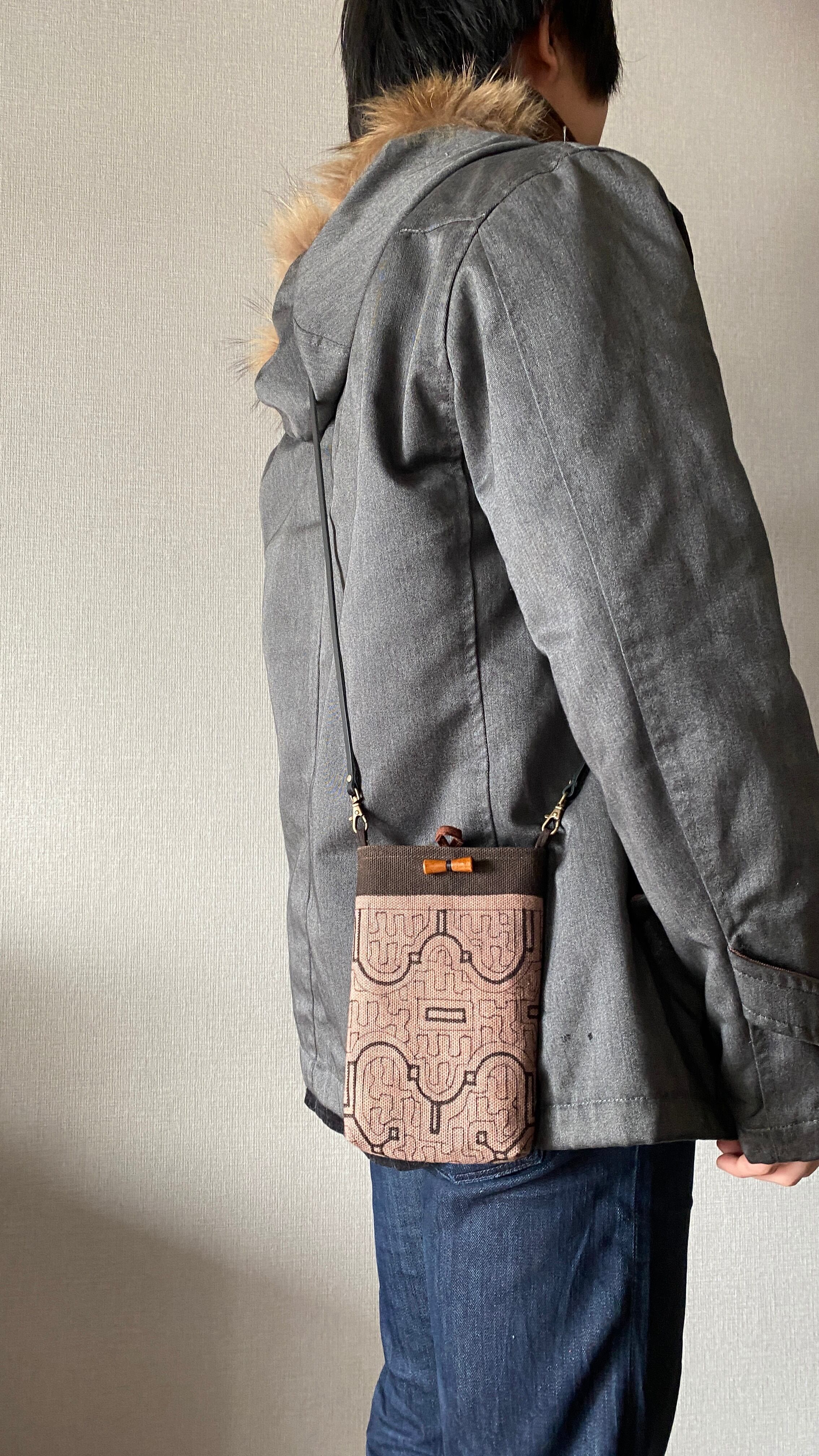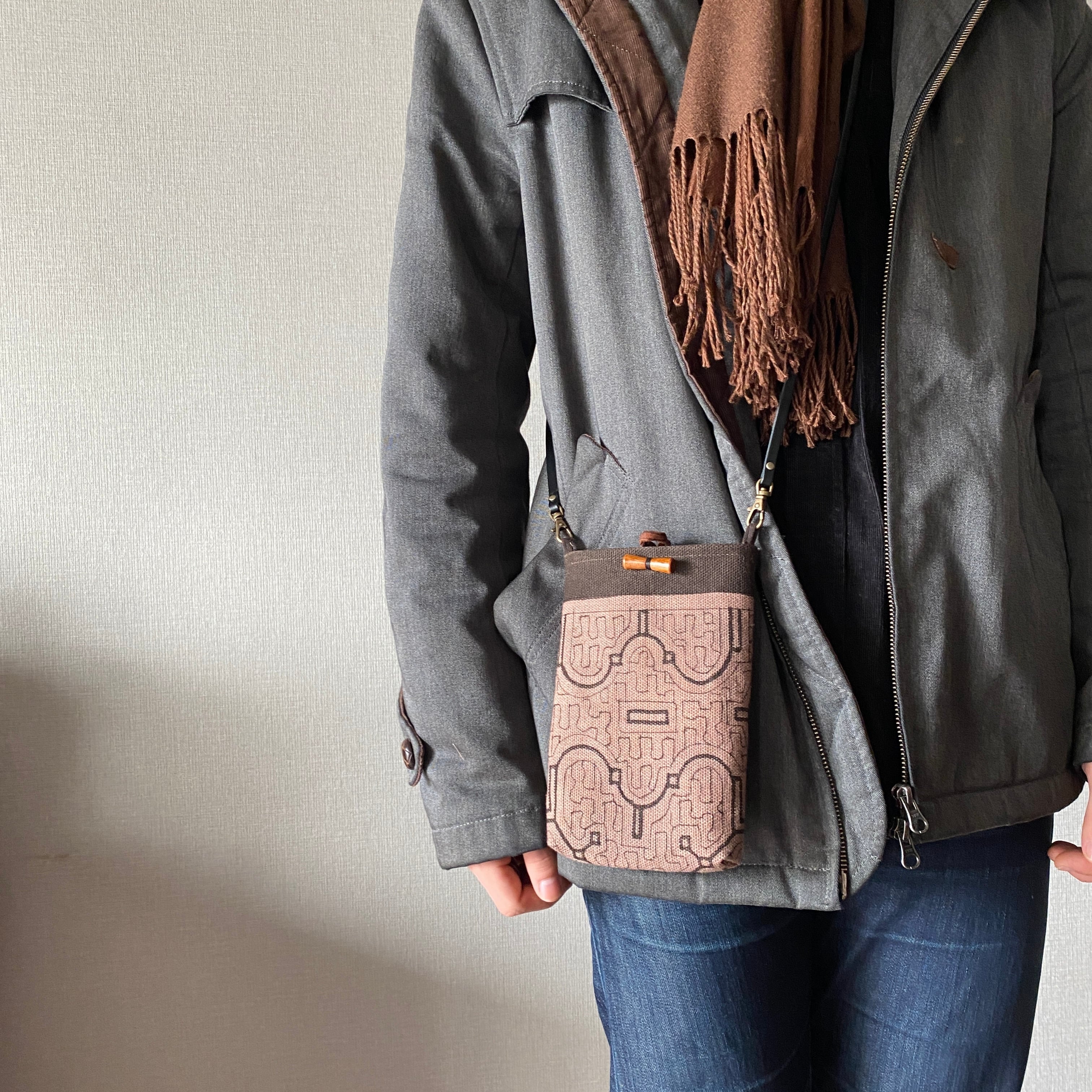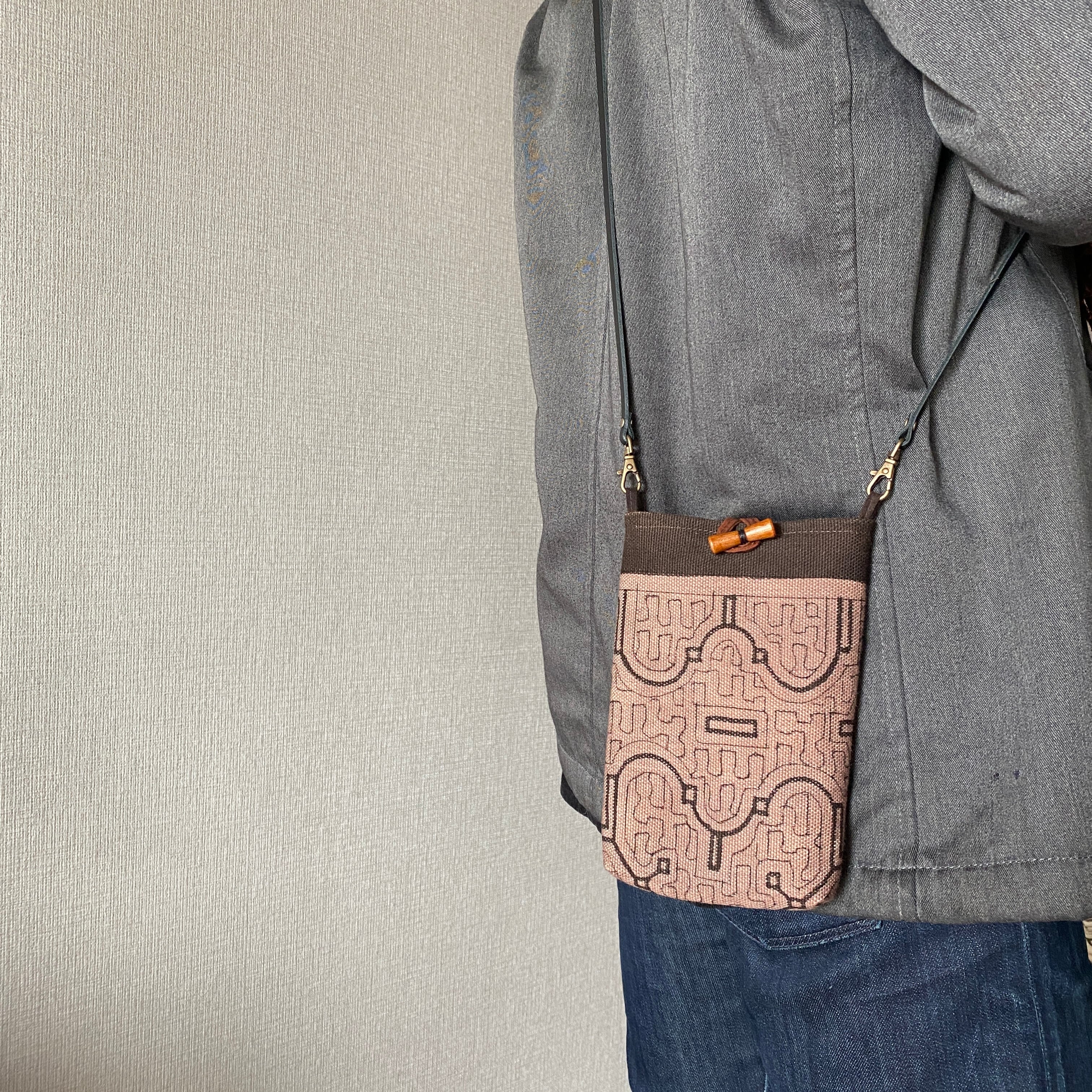 携帯用ポシェット 帆布薄紫 シピボ族の泥染め | アマゾン屋 シピボ族の泥染めとバッグと雑貨