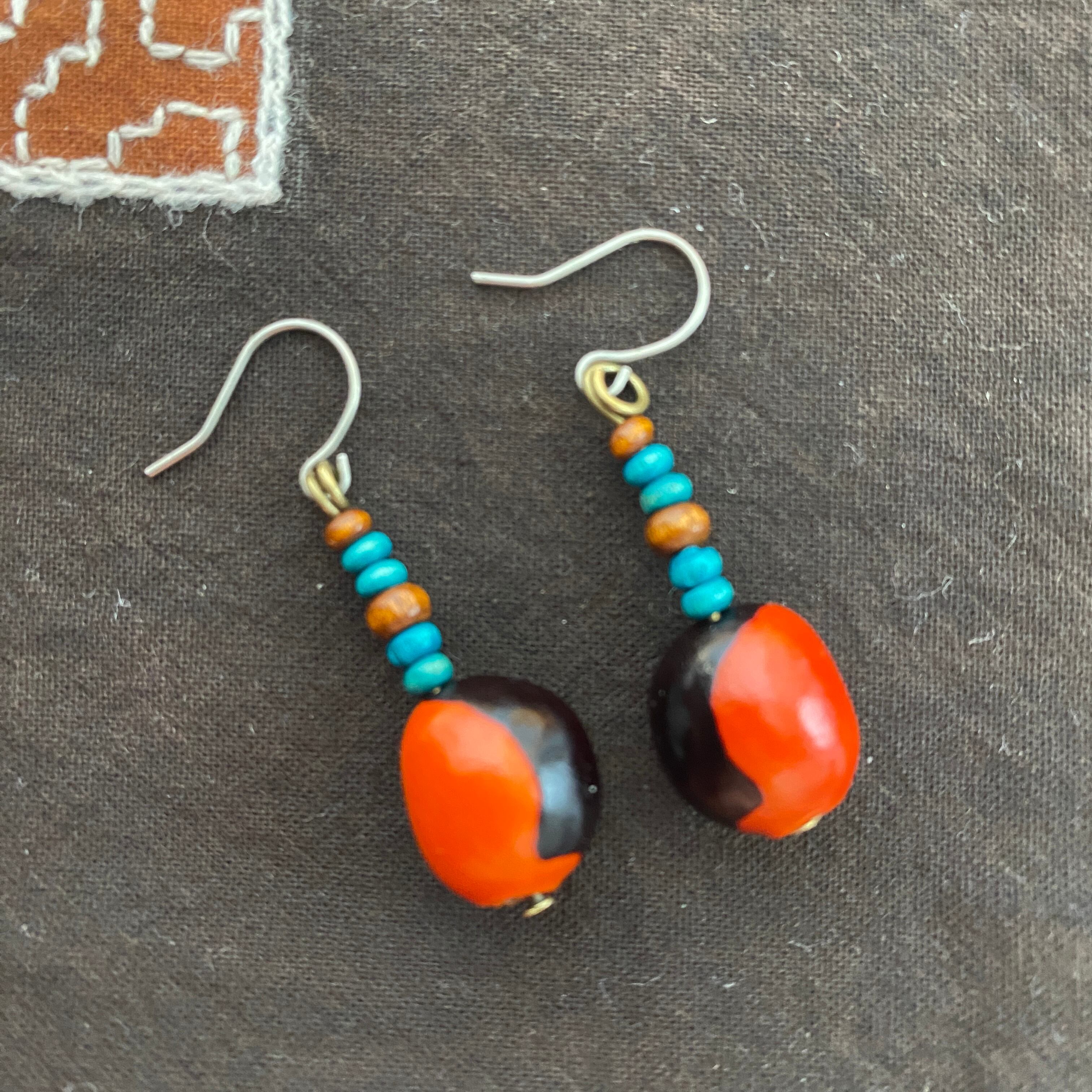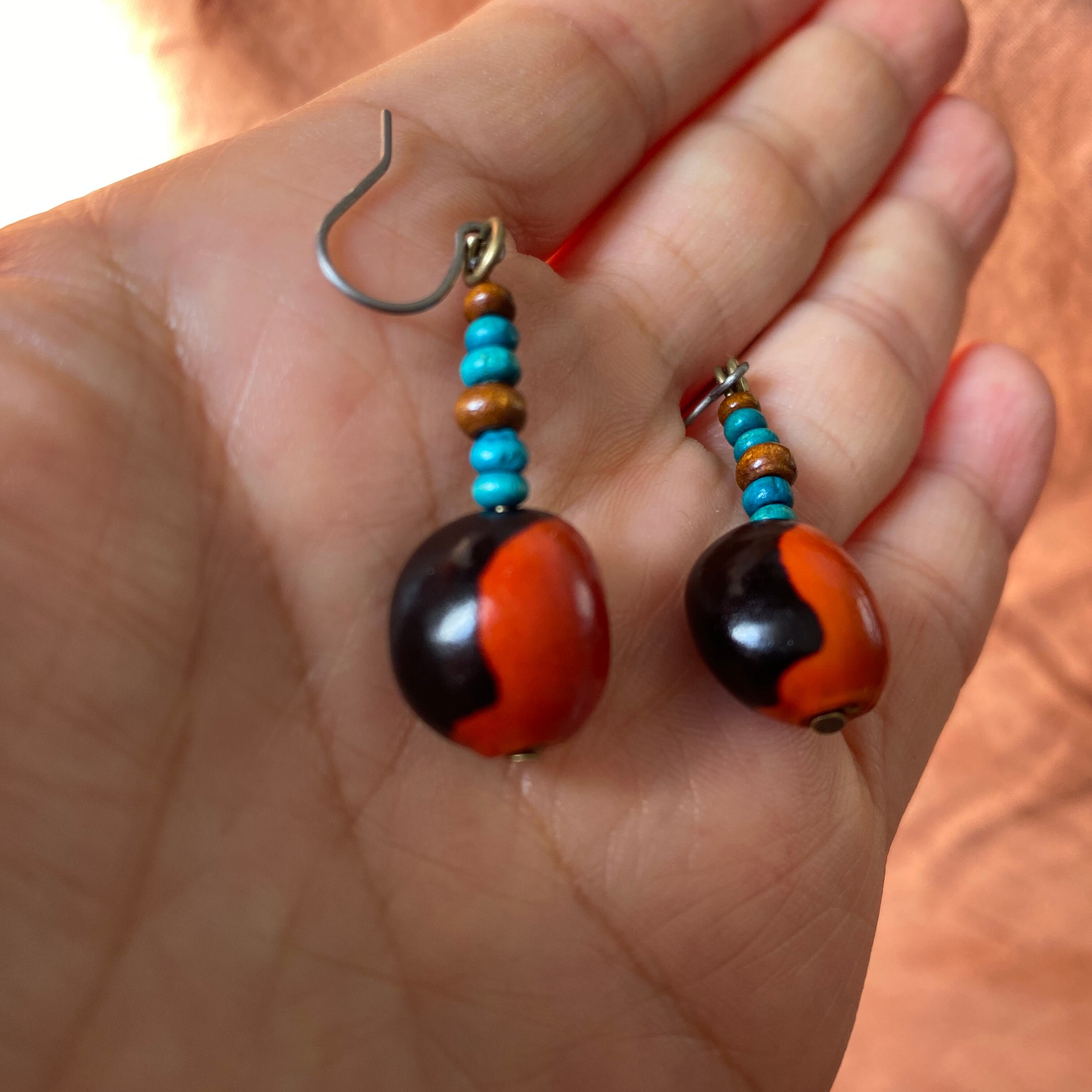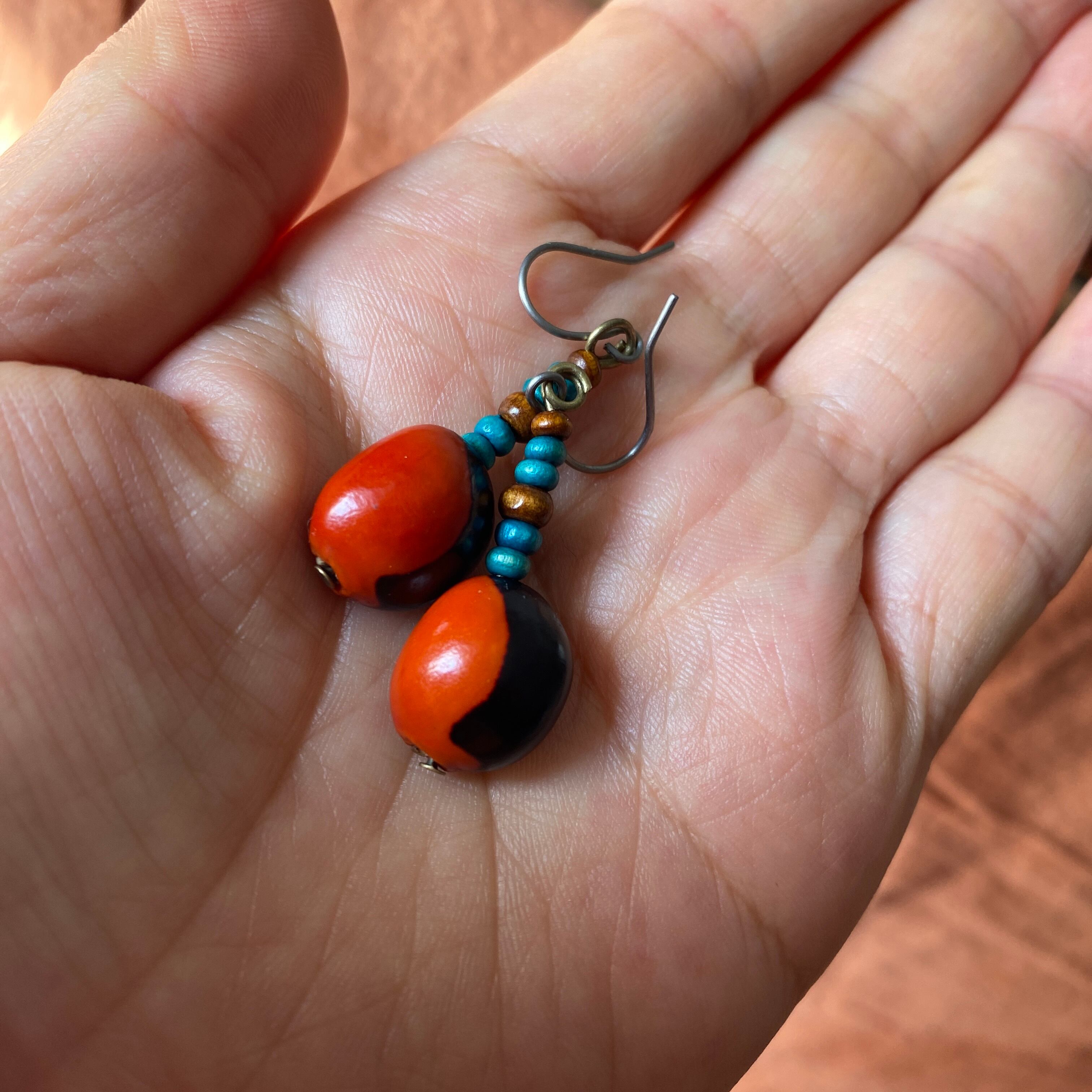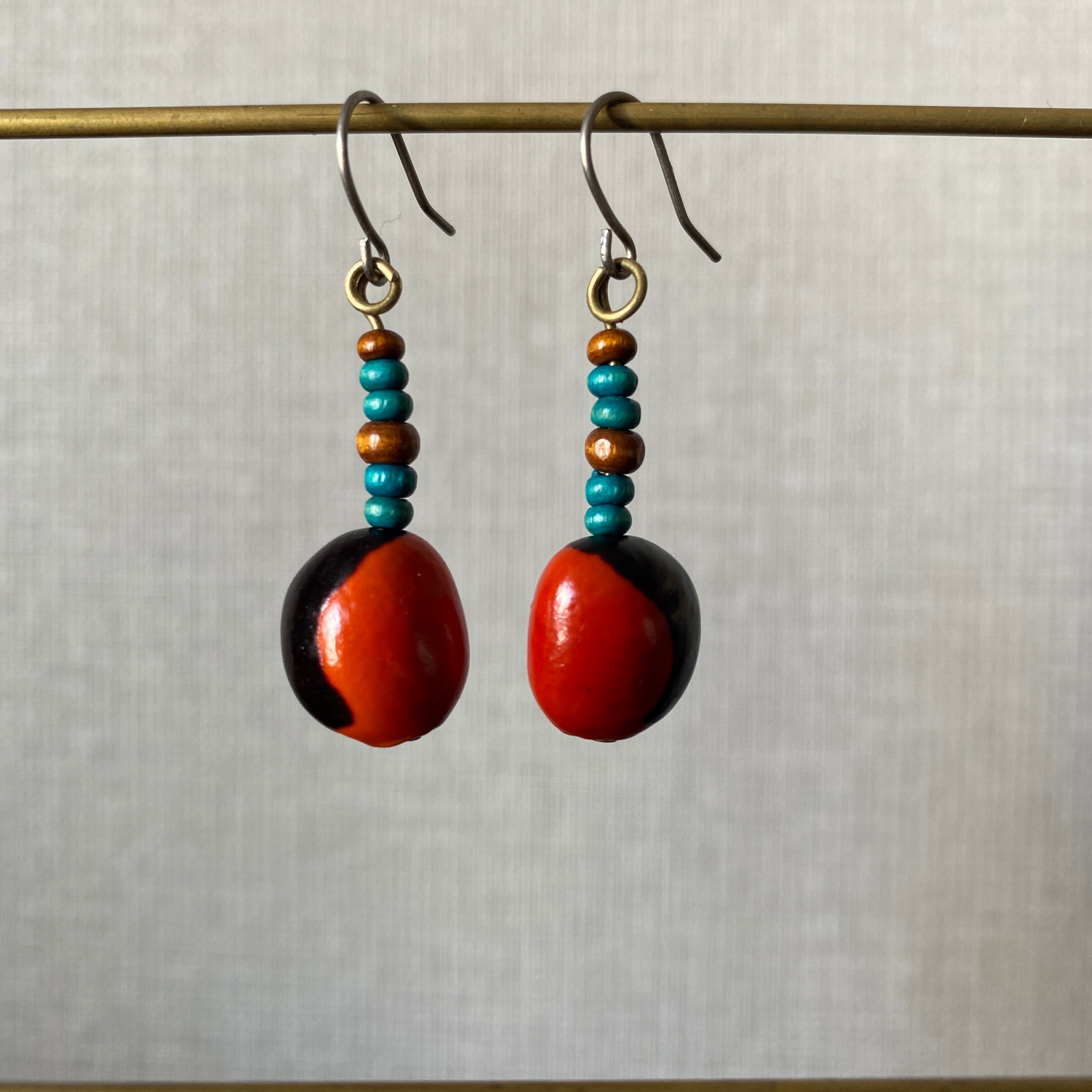 ピアス 朱斑水色と茶 木の実のアクセサリー