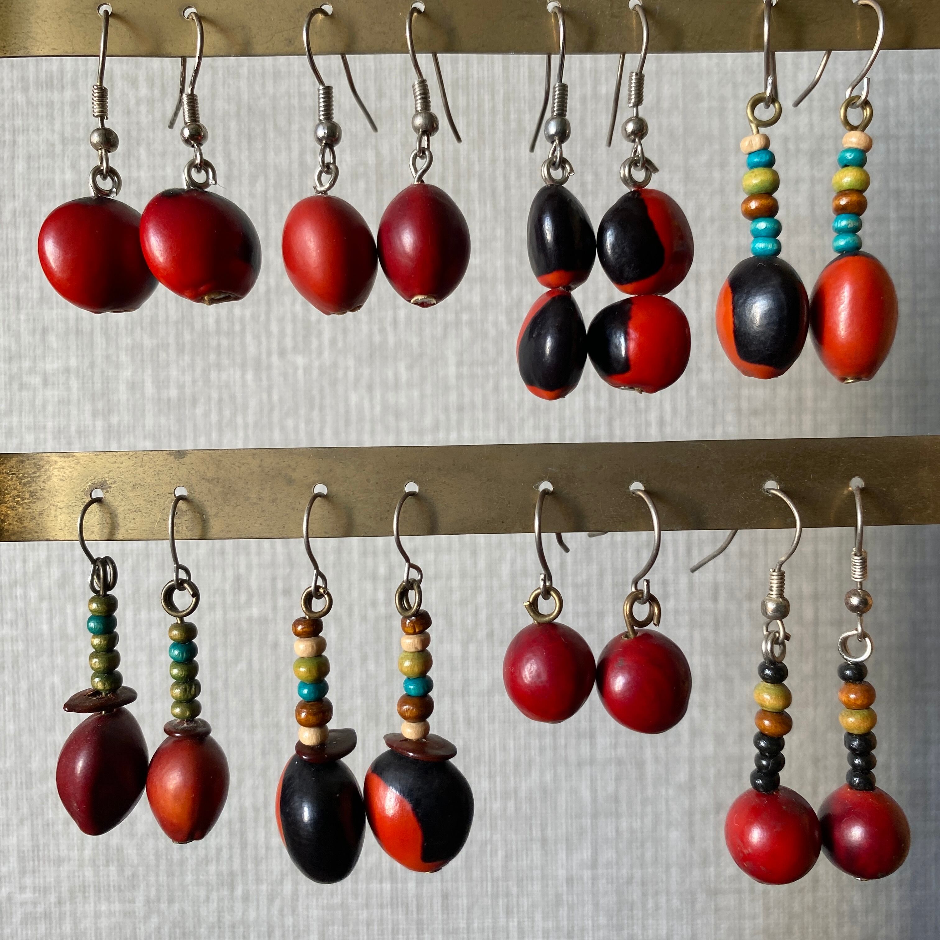 カラフルなビーズはウッドビーズでとても軽くて小さいビーズです。