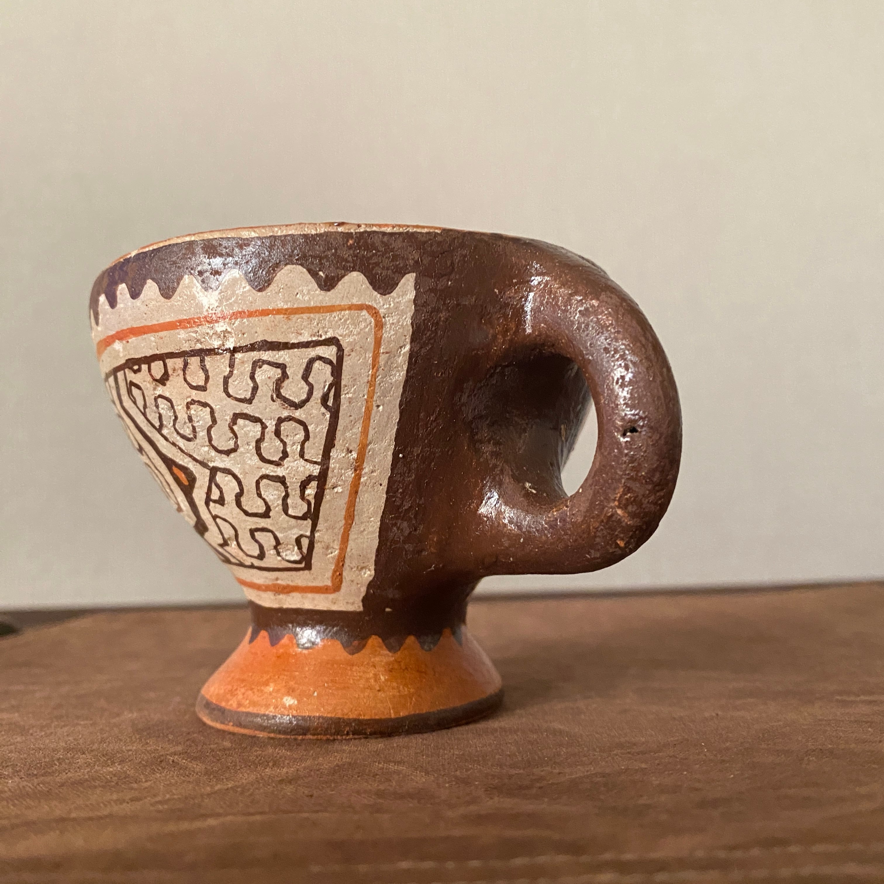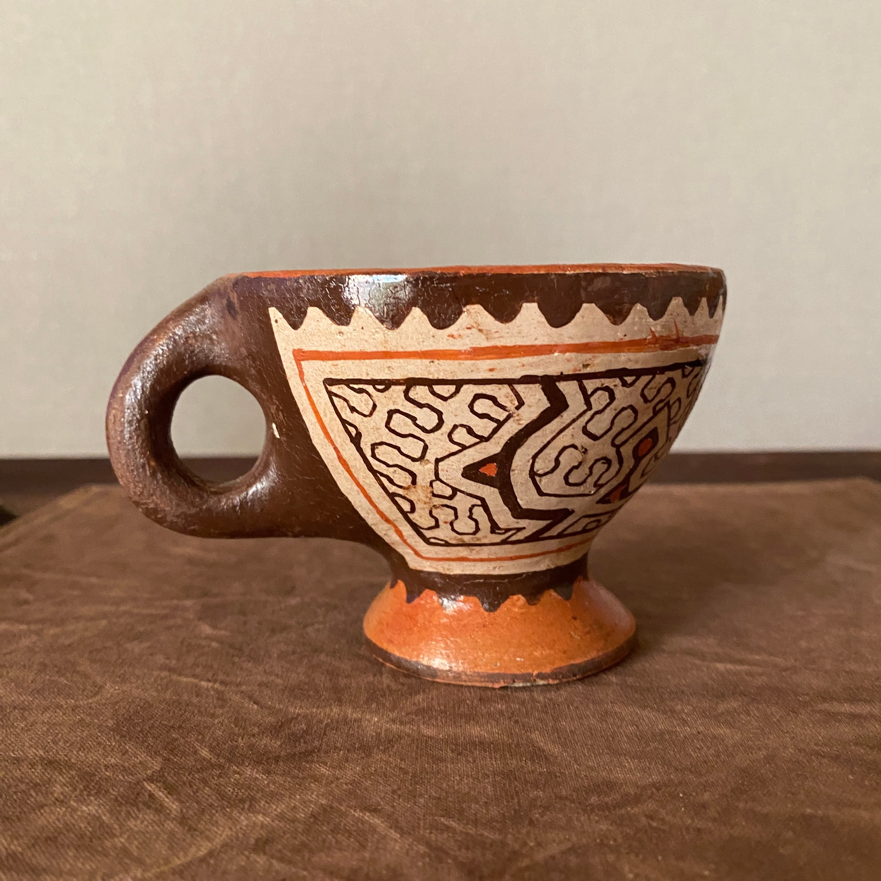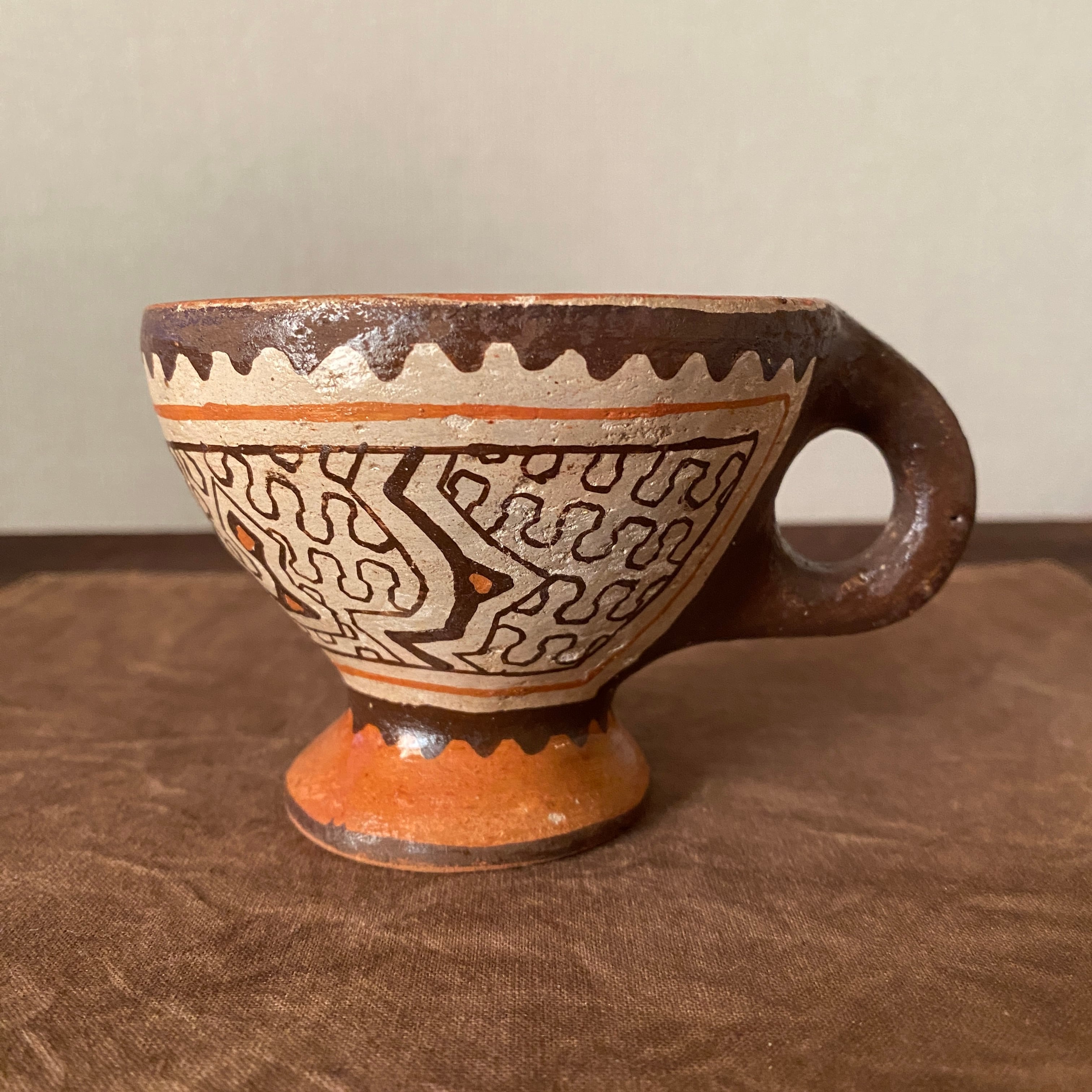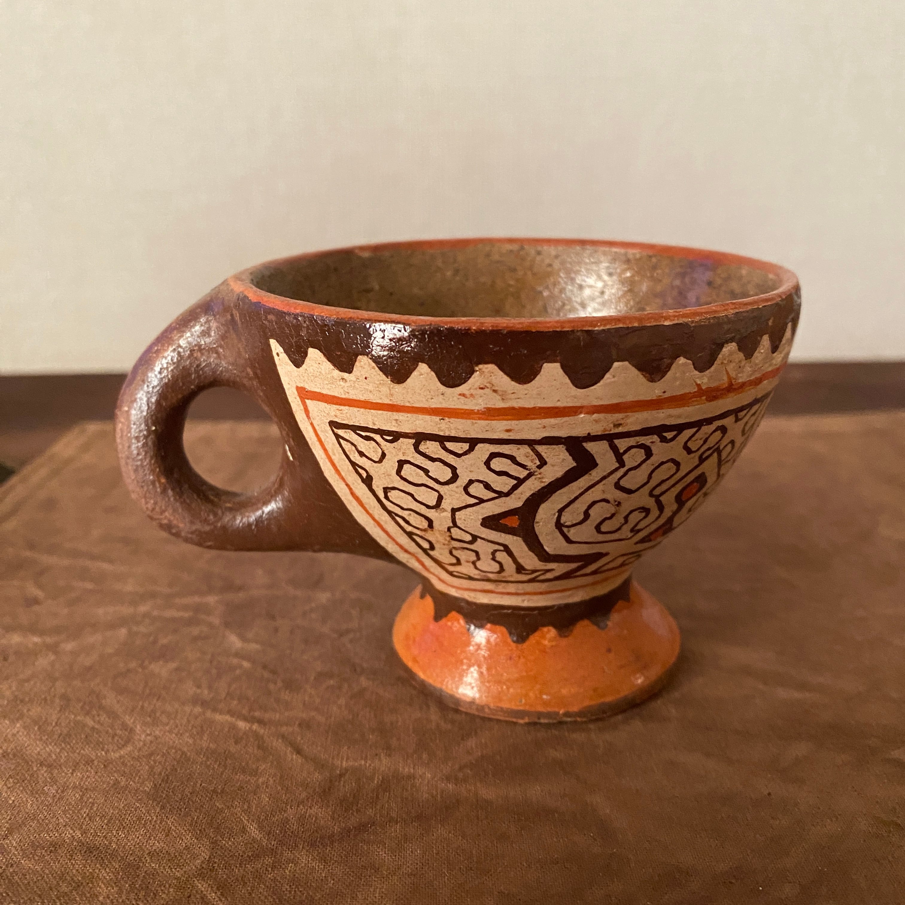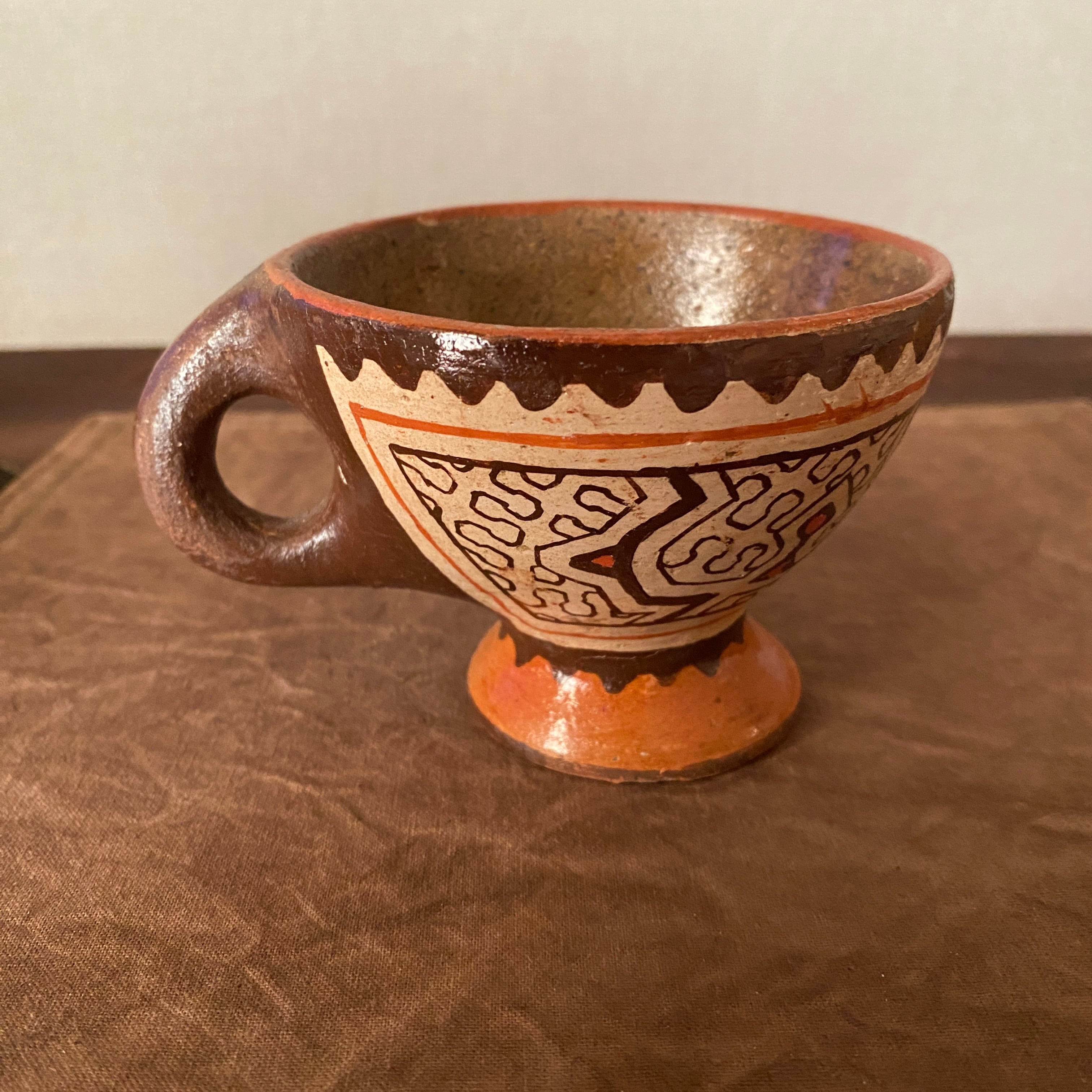 シピボ族の人々の暮らしの中に、このような形のコーヒーカップは存在していないと思いますが、色々な新しいものを見つけて楽しんで作っているように感じます。