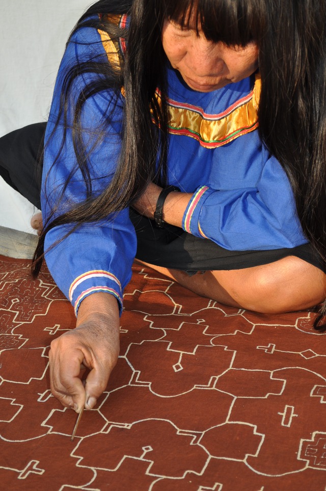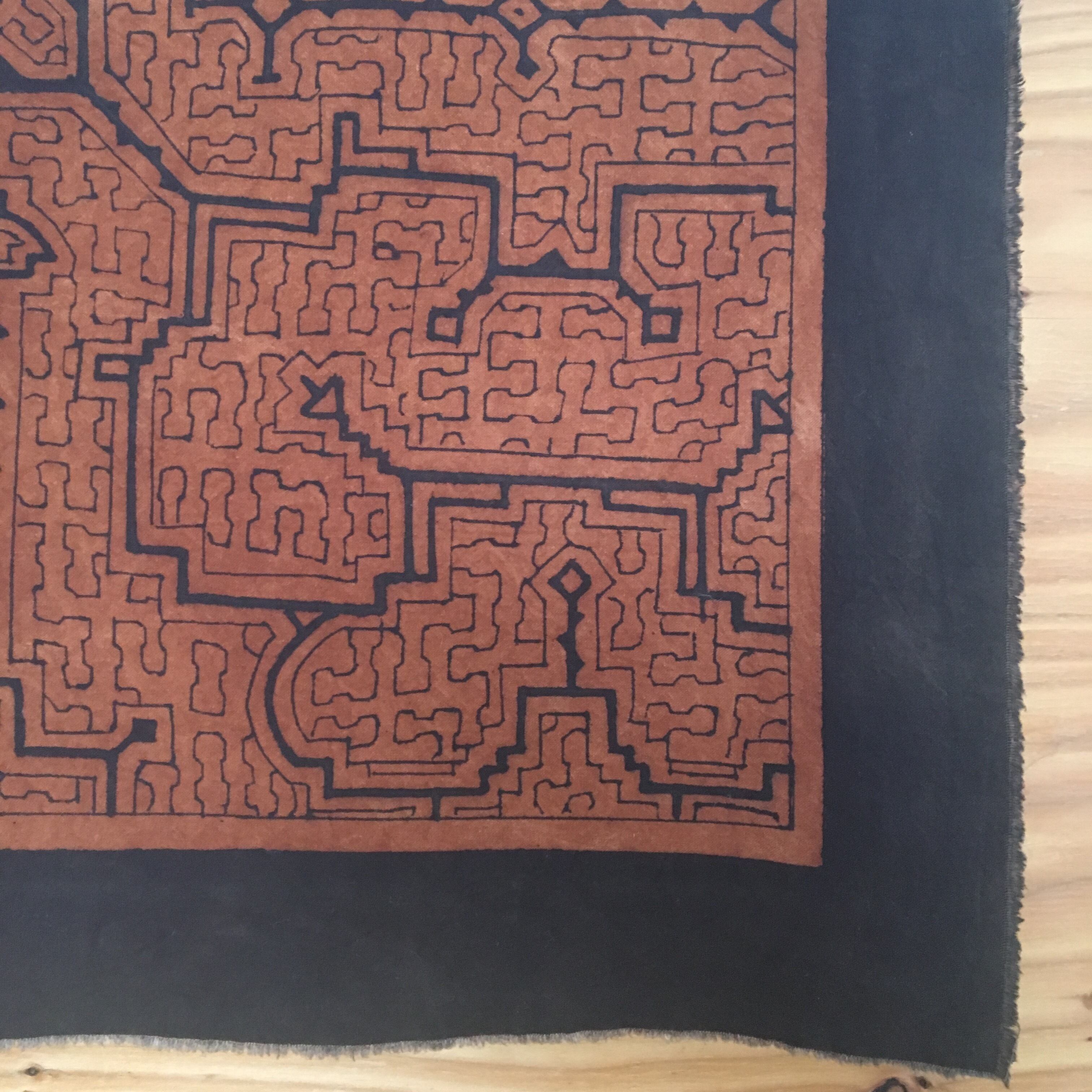 アマゾンの泥染めは南米ペルー・アマゾンの先住民族シピボ族の伝統的な染めもので、すべてフリーハンドで模様が描かれています。
