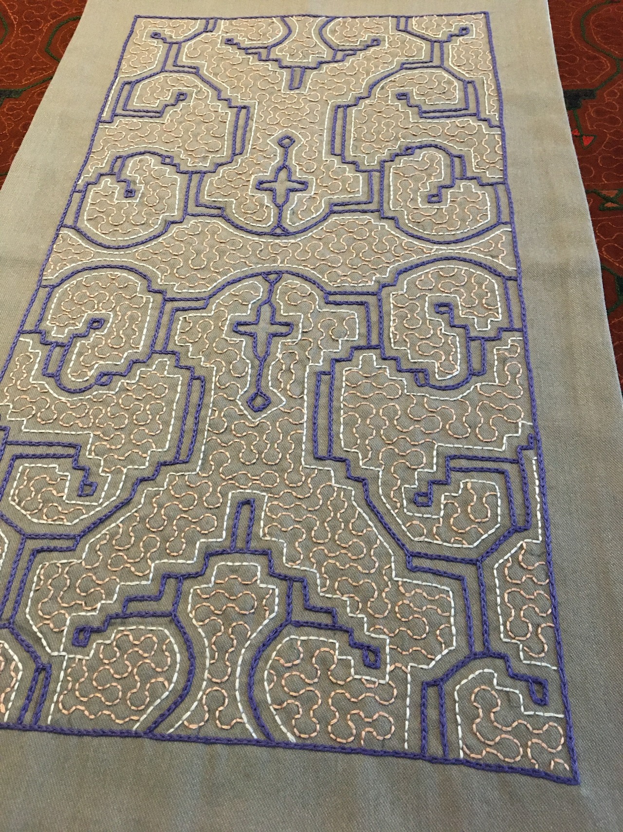 アマゾンシピボ族の刺繍 中型マット紫 01 裏麻キナリ