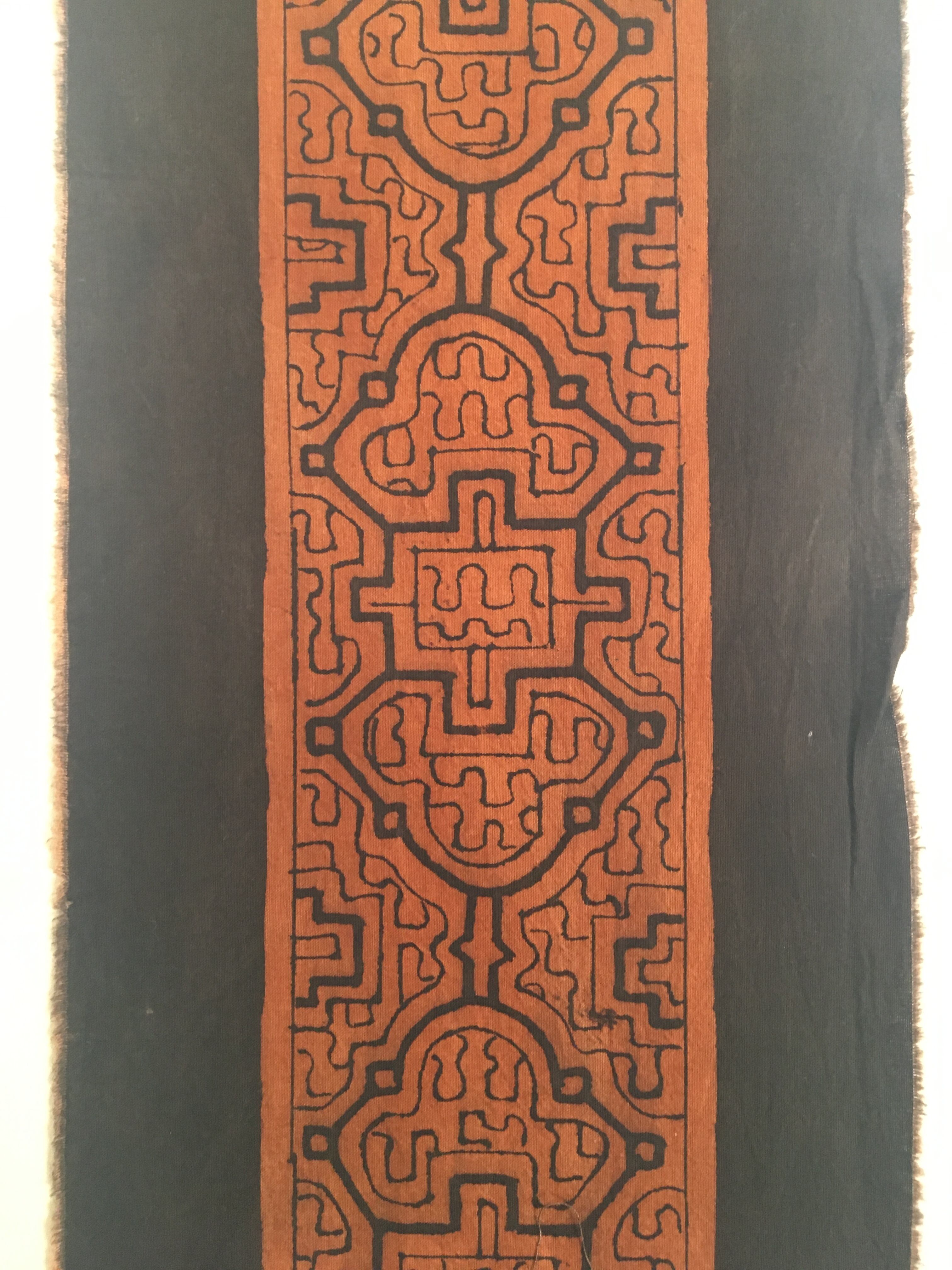 アマゾンの泥染めは、先住民族シピボ族の伝統工芸で、フリーハンドの幾何学模様を染める、希少価値の高い手工芸です。この布を使ってオーナー(AYACHI S)がバッグや布雑貨を手作りしています。 貴重な伝統工芸を少しでも長く作り続けて欲しいという想いから続けている活動です。