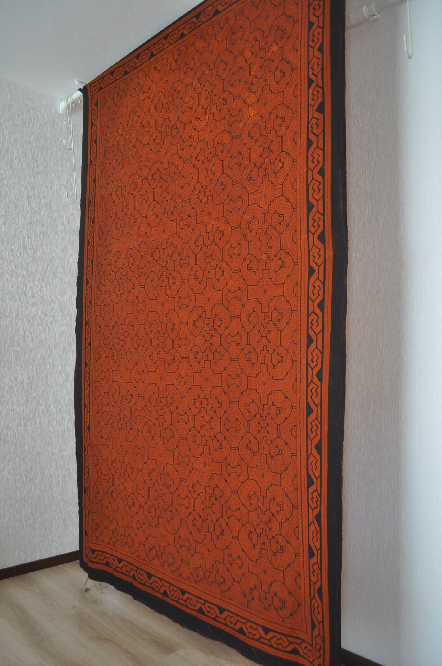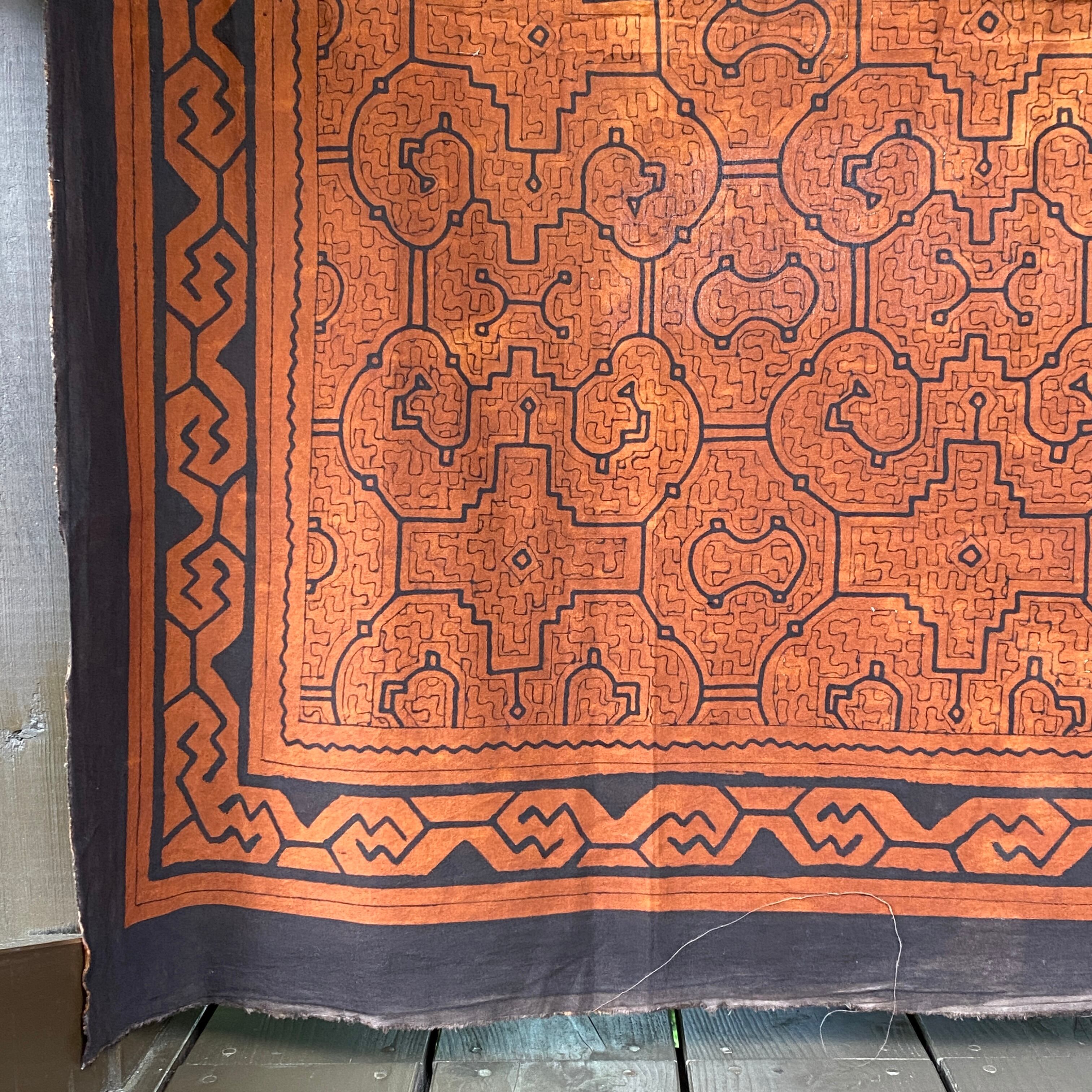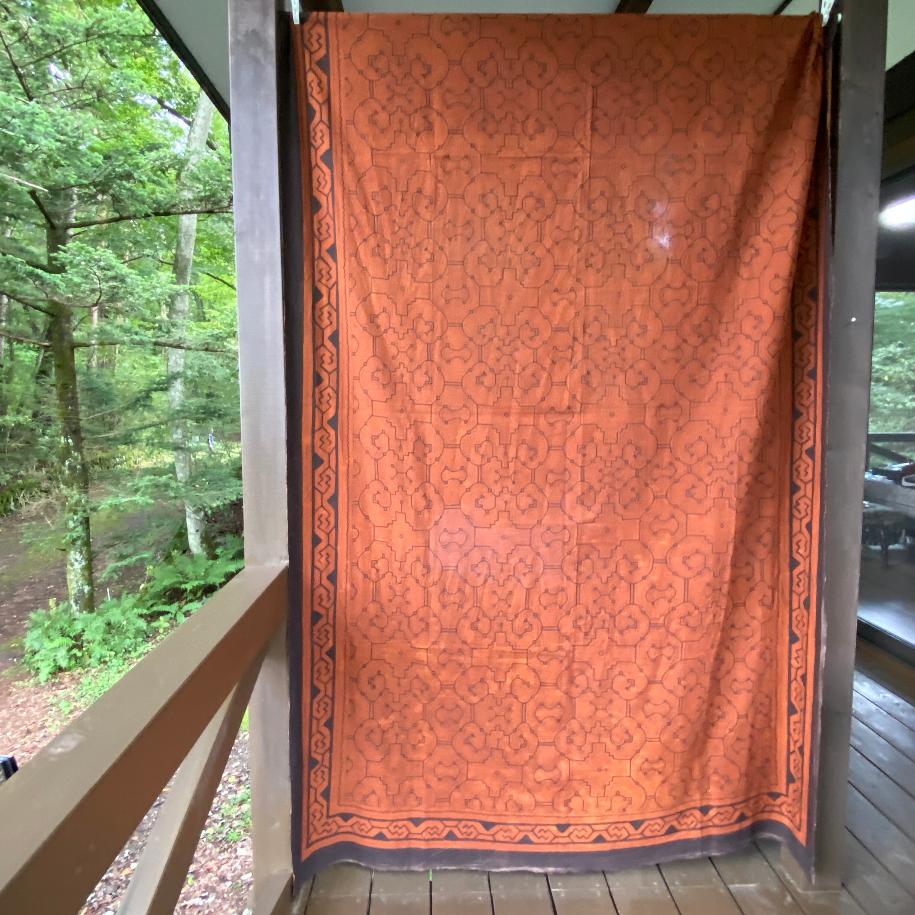 23ベッドカバー超特大 235x145cm 柔らか布赤茶系 アマゾン シピボ族の泥染め 薄地柔らか AAA
