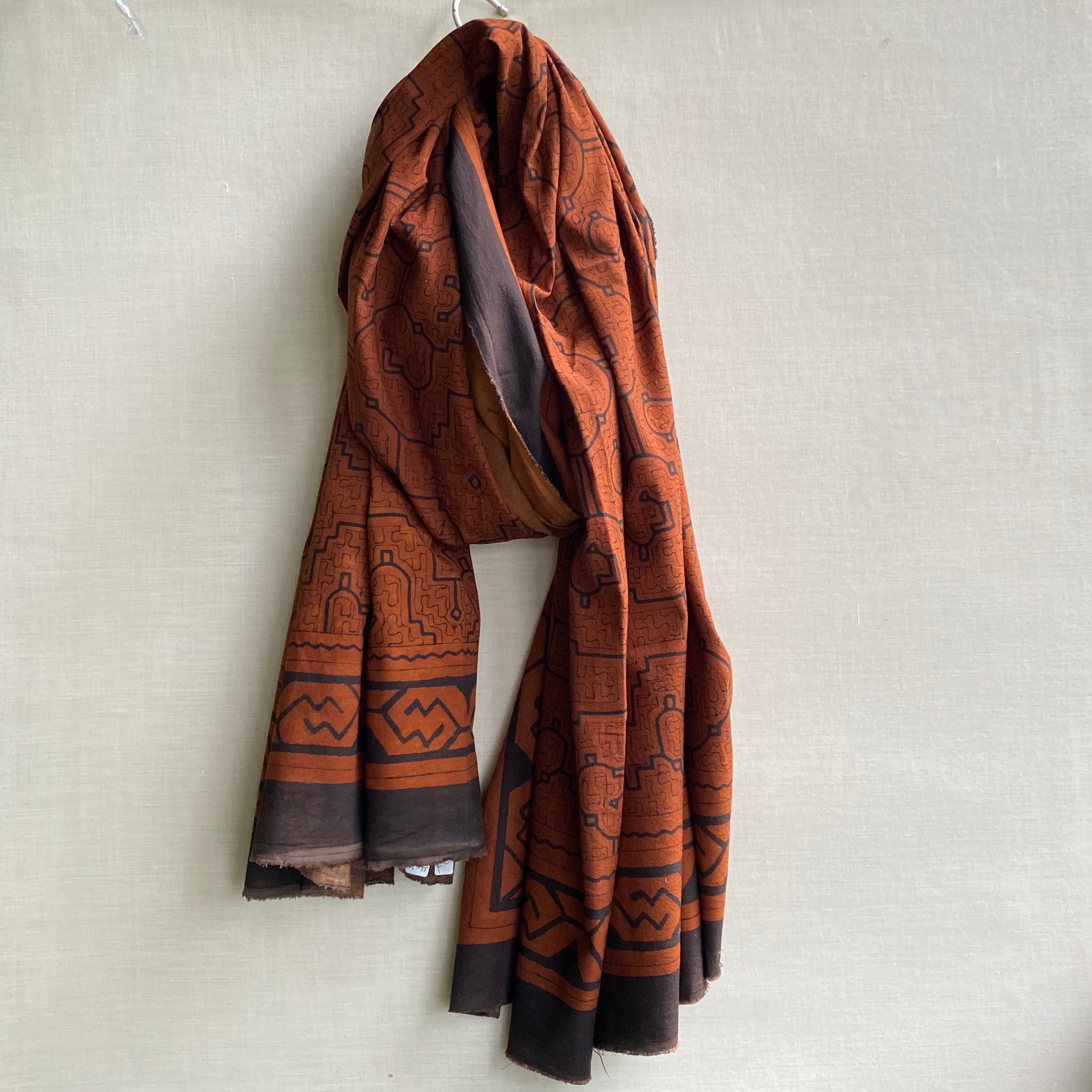 「ペルーアマゾン シピボ族の泥染め」は南米ペルー・アマゾンの先住民族シピボ族の伝統的な染めもので、すべてフリーハンドで模様が描かれています。
