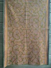 ●シピボ族の刺繍タペストリー テーブルクロス オレンジと緑 アマゾンの泥染め大判刺繍