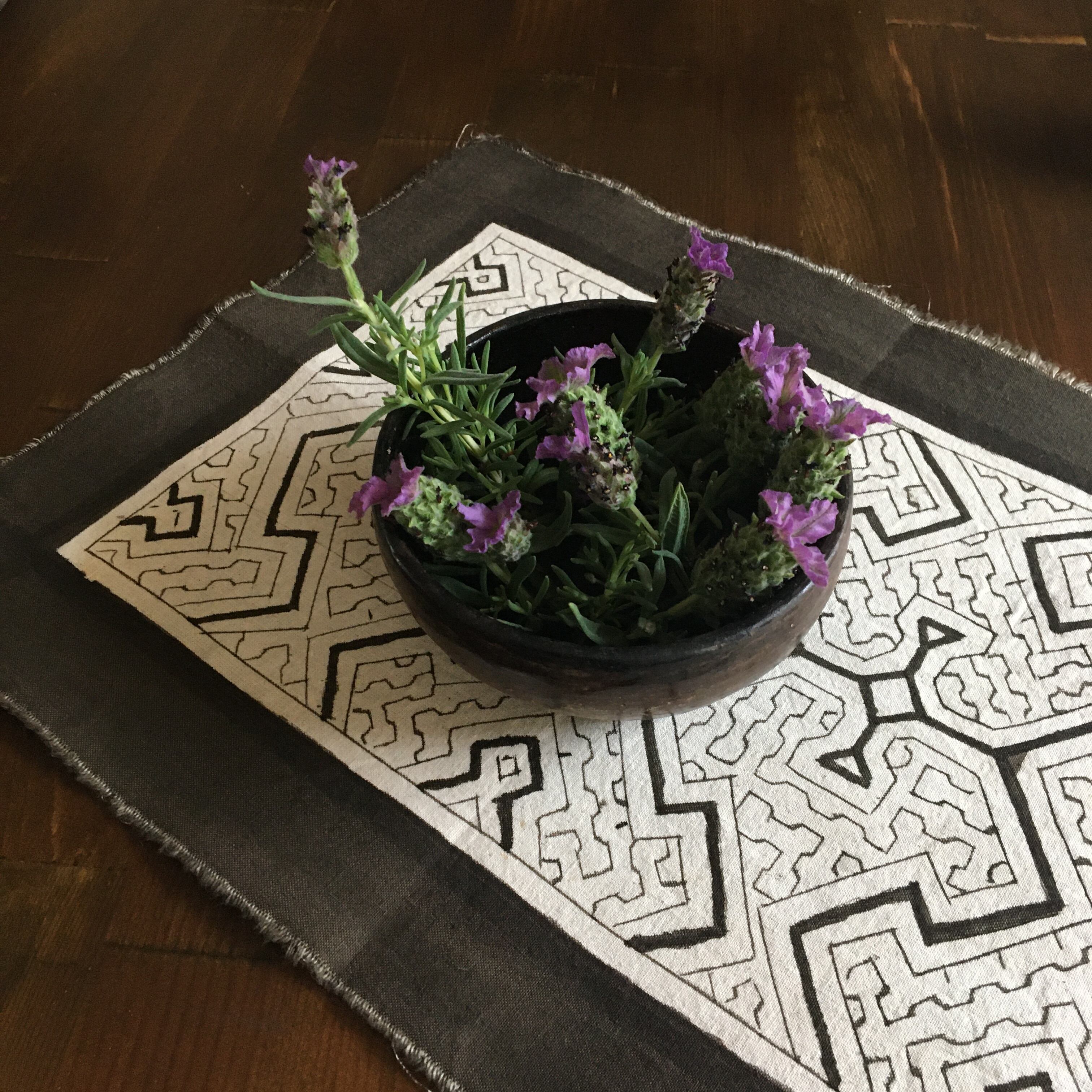 プレイスマット7 白 35x23cm シピボ族の泥染め
