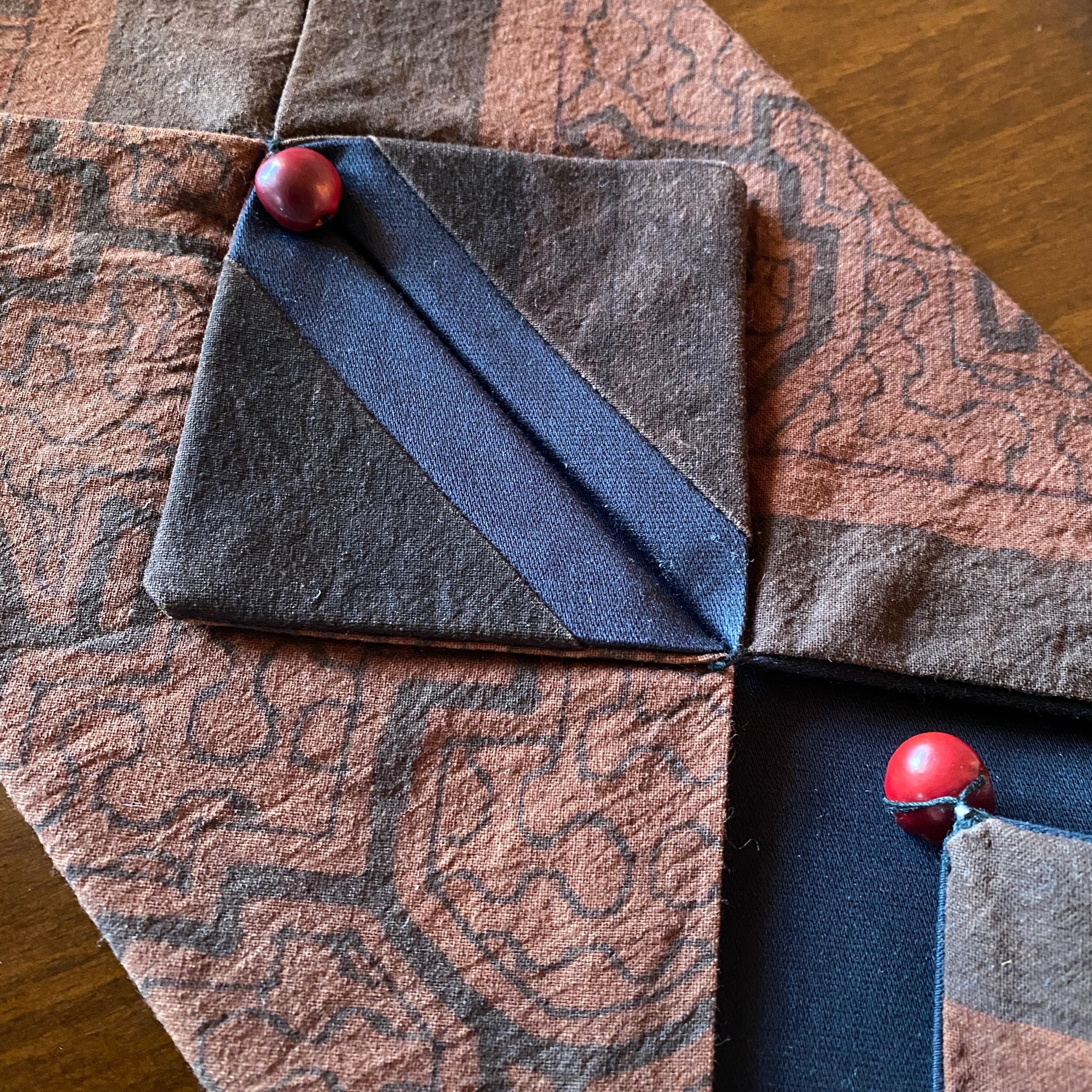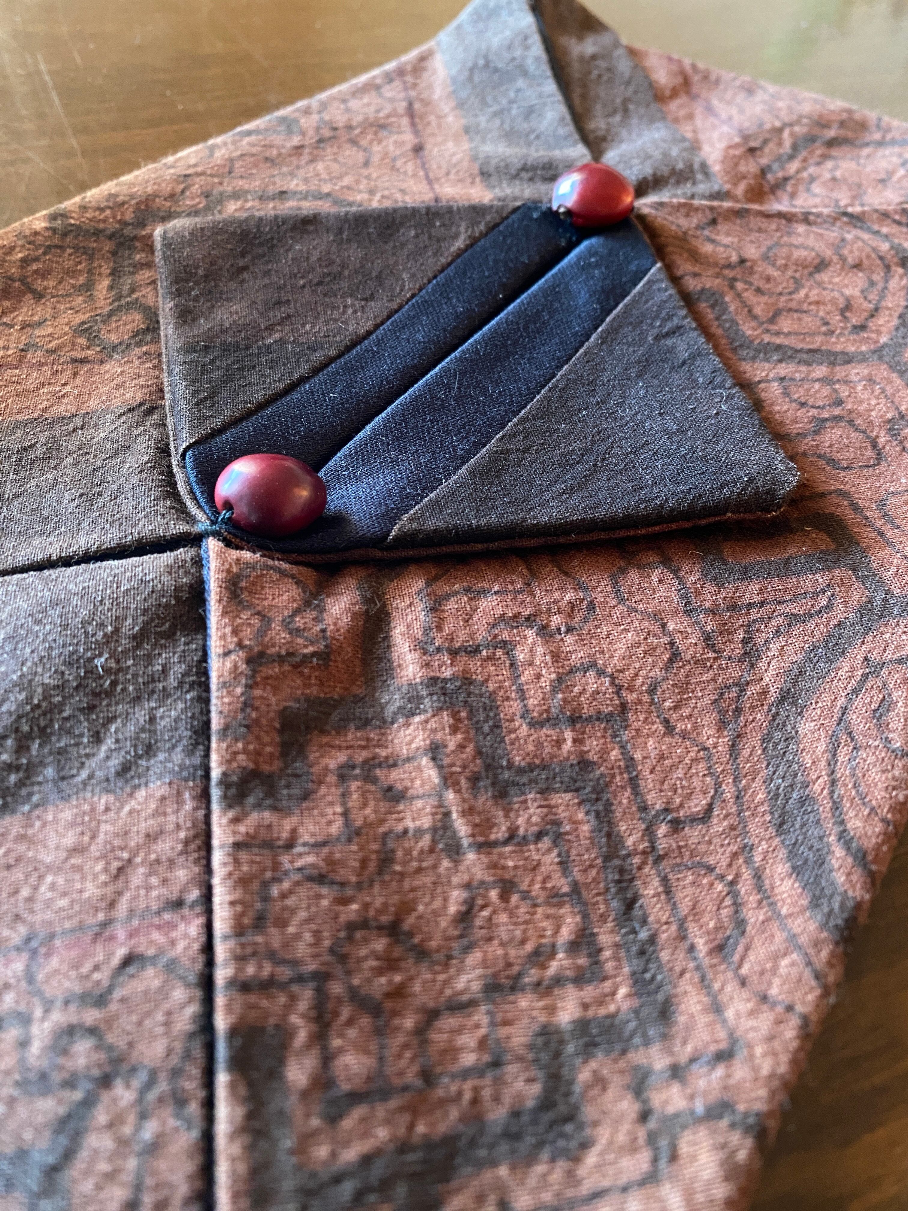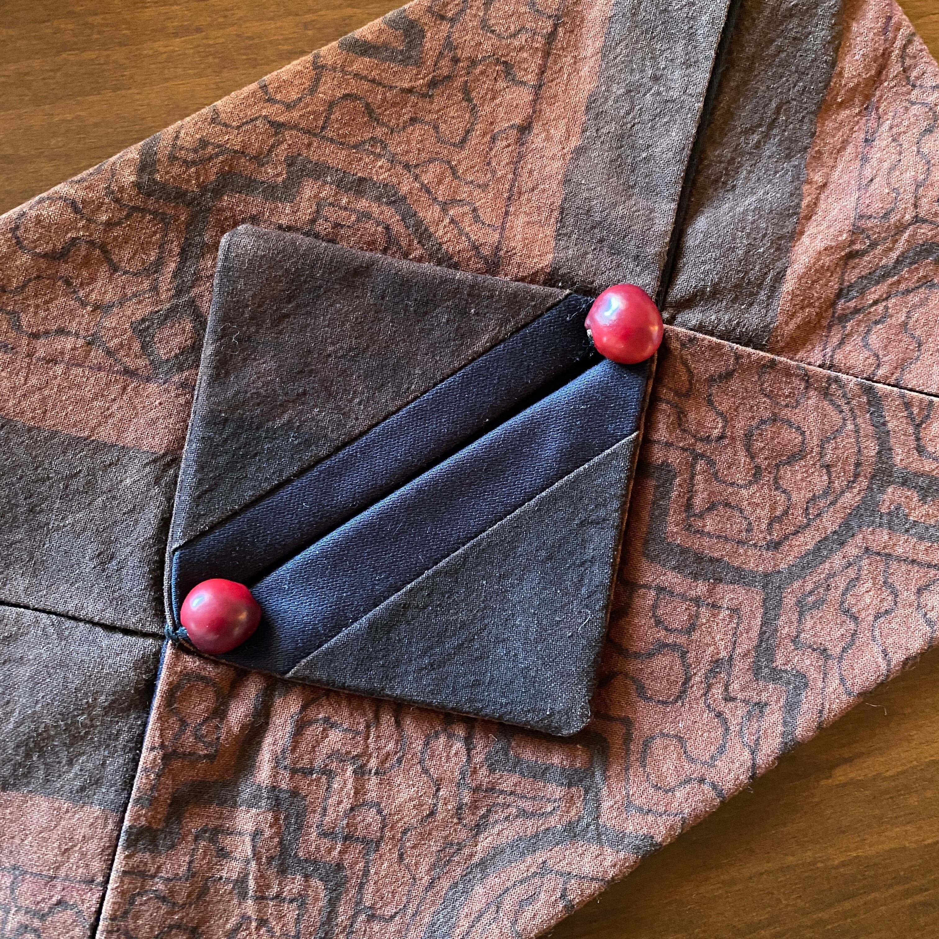 底の部分を含め全面的にシピボ模様の布を贅沢に使い、裏地もしっかりした黒地です。